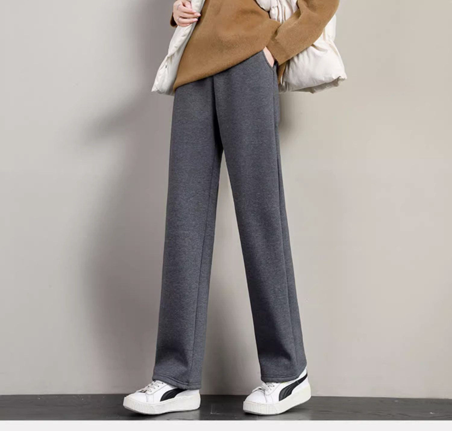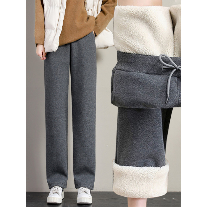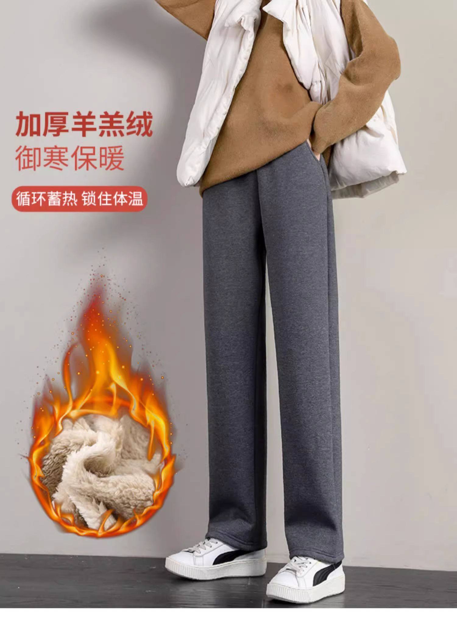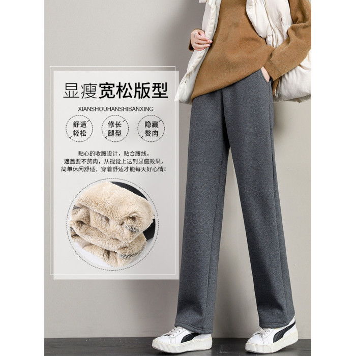 加絨褲子女2025秋冬季加厚羊羔絨棉褲衛褲寬鬆直筒運動褲濶腿褲女