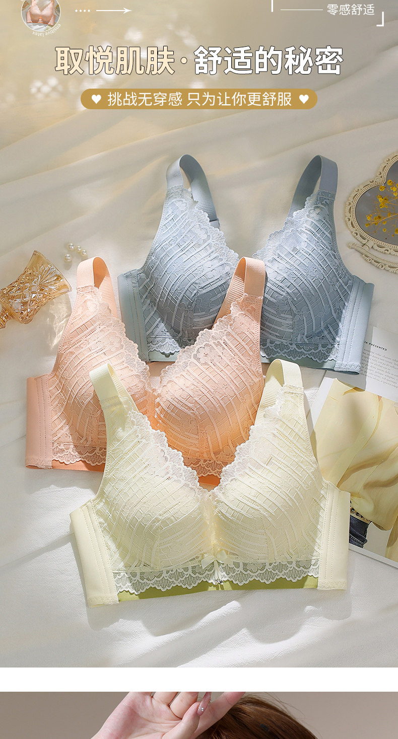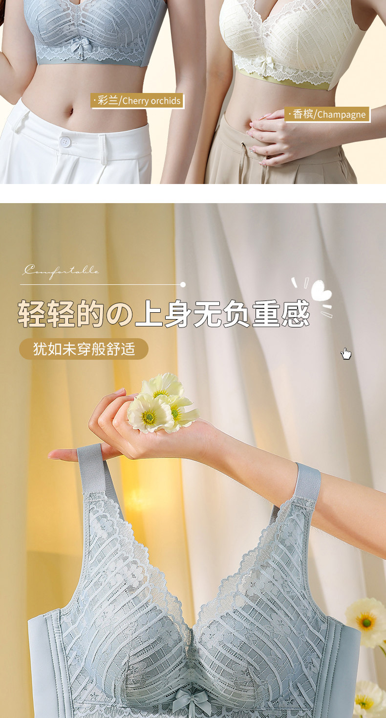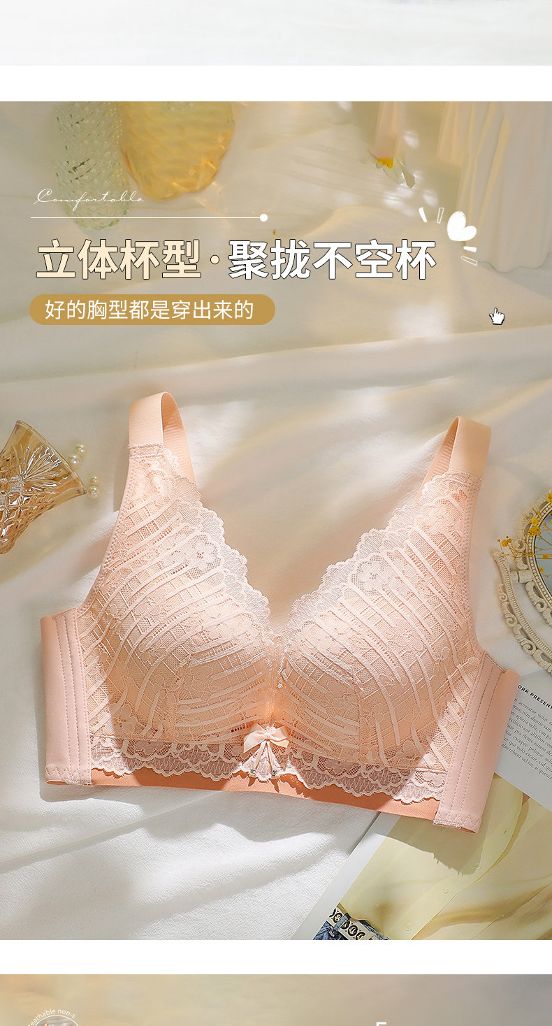 依柏蝶小胸聚攏內衣女上托防下垂無鋼圈收副乳調整型蕾絲顯大文胸