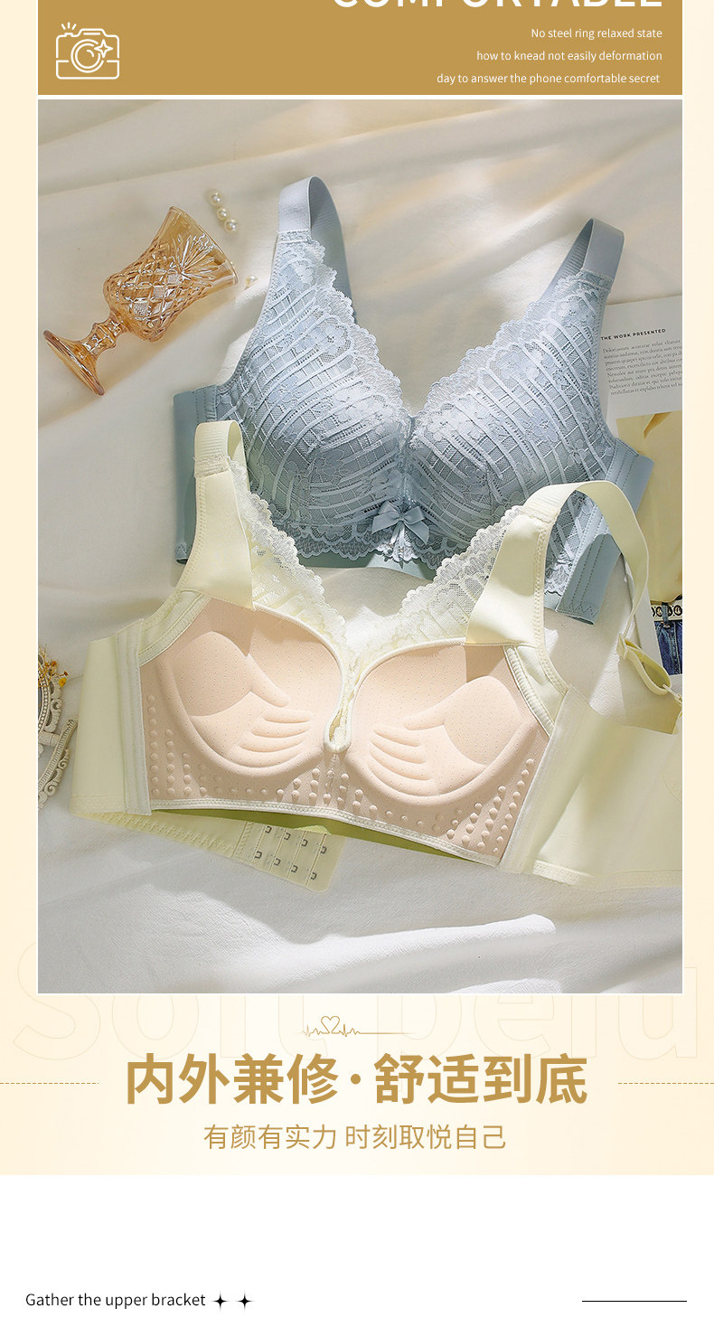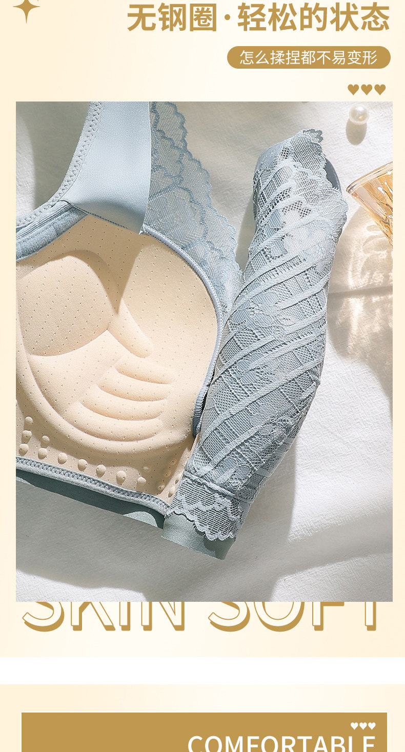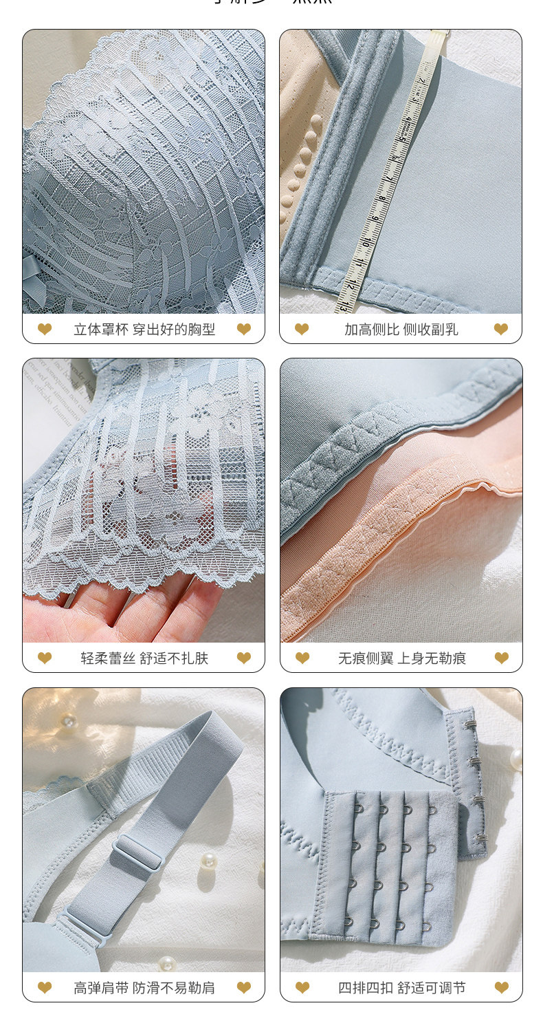 依柏蝶小胸聚攏內衣女上托防下垂無鋼圈收副乳調整型蕾絲顯大文胸