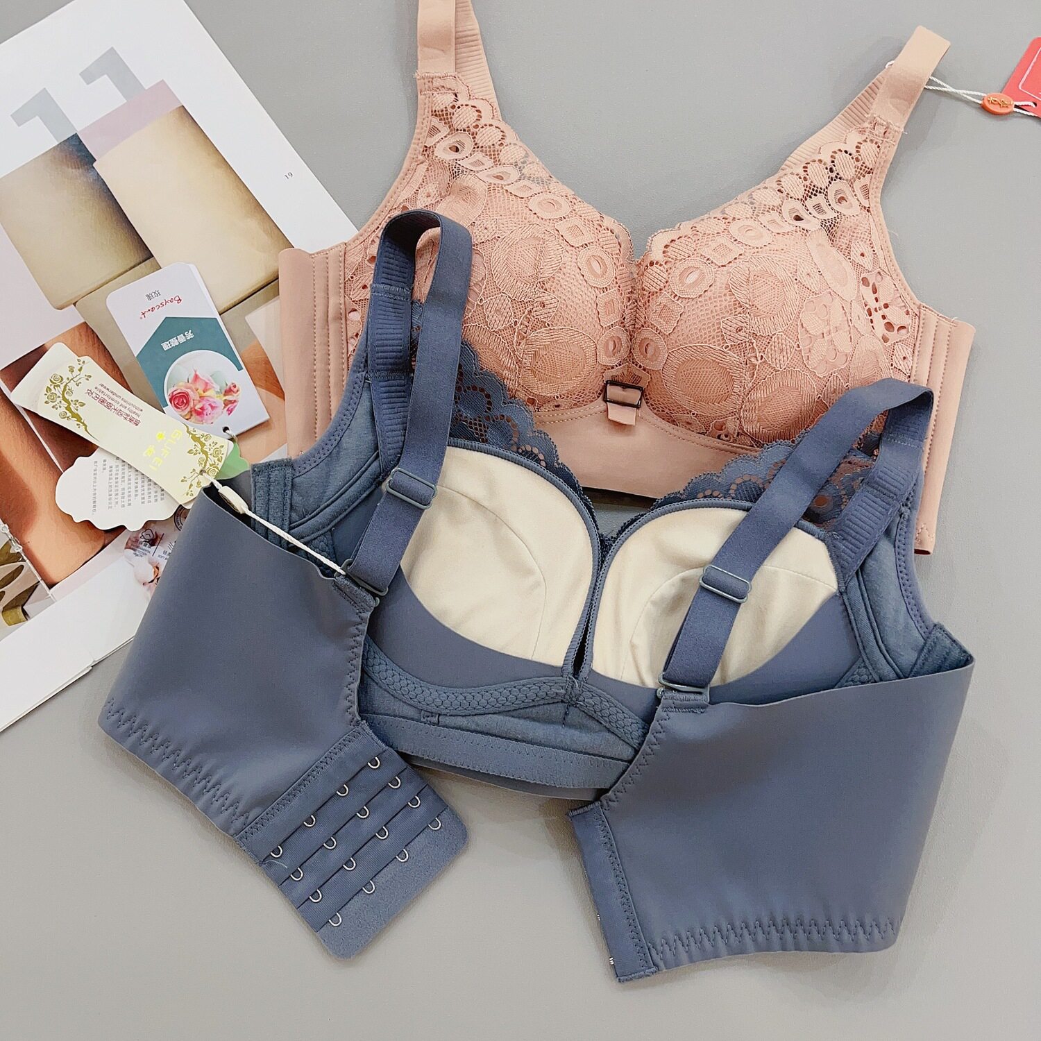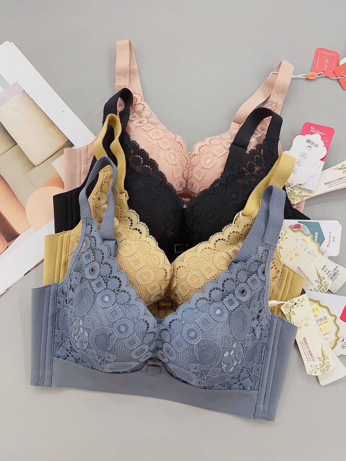 古妃28403小胸聚攏中厚杯無鋼圈調整型收副乳蕾絲文胸罩內衣女
