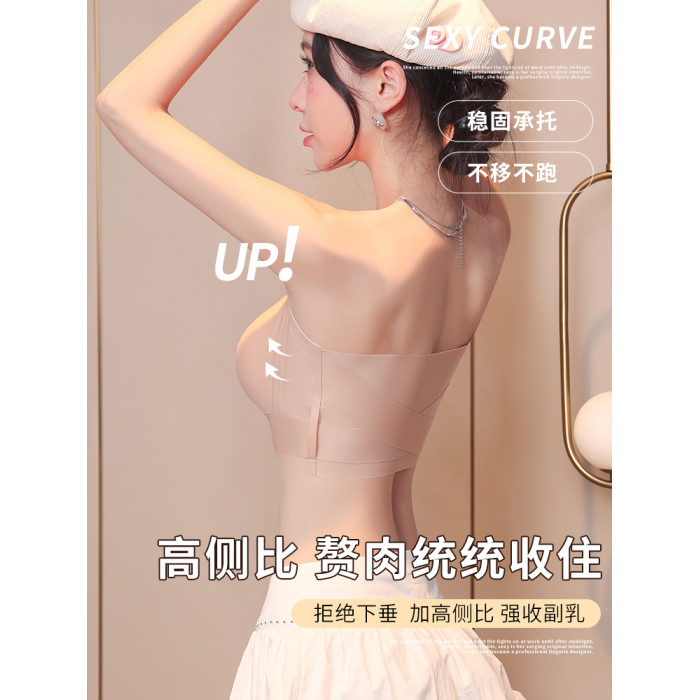 隱形無肩帶內衣女防滑聚攏小胸顯大前釦矯正塑形膚色抹胸美背裹胸