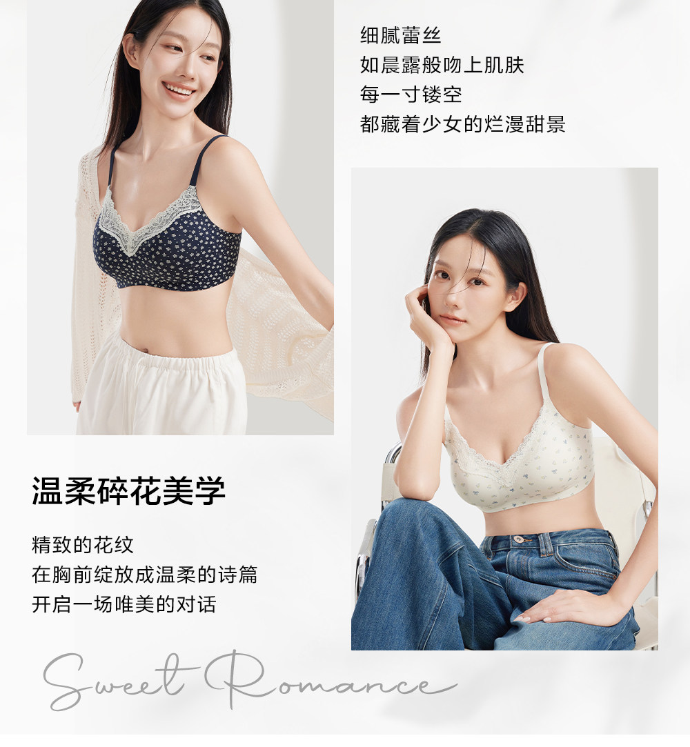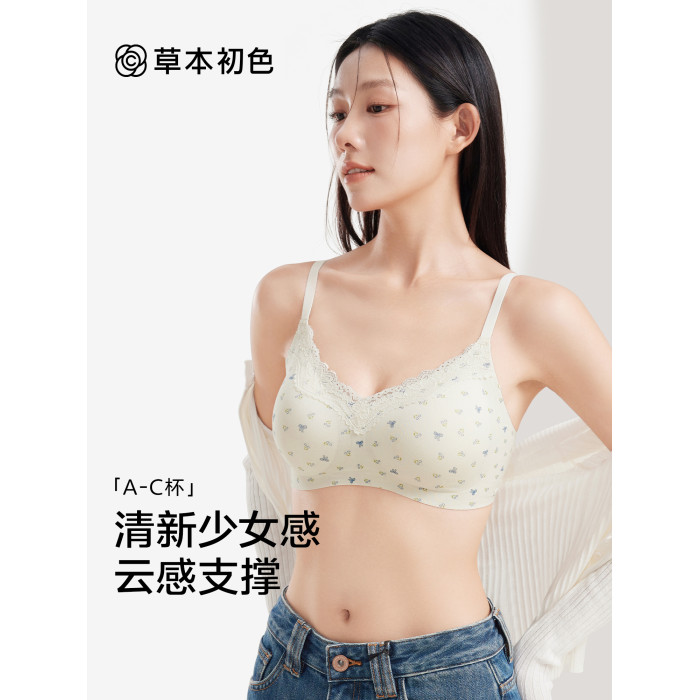草本初色內衣女無痕美背2025新款蕾絲收副乳軟支撐無鋼圈文胸罩女