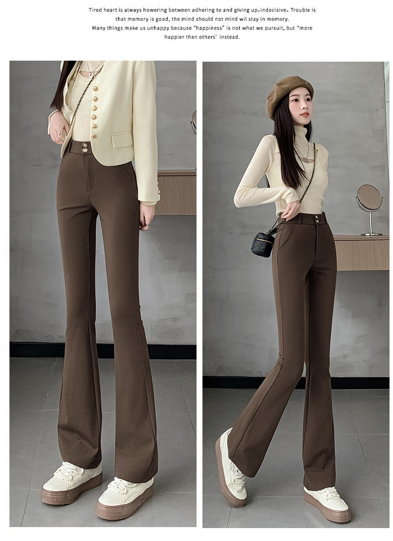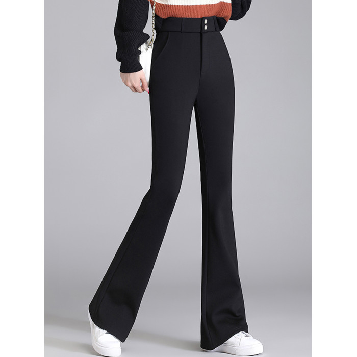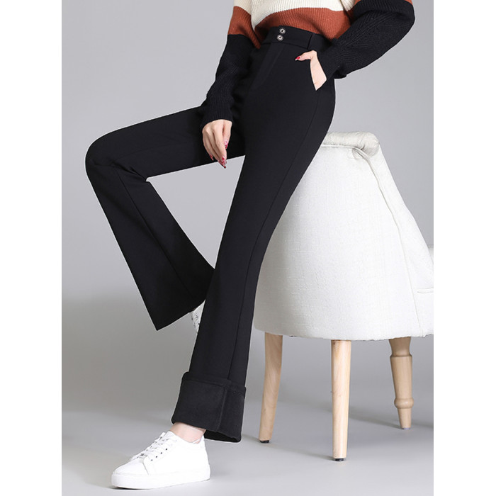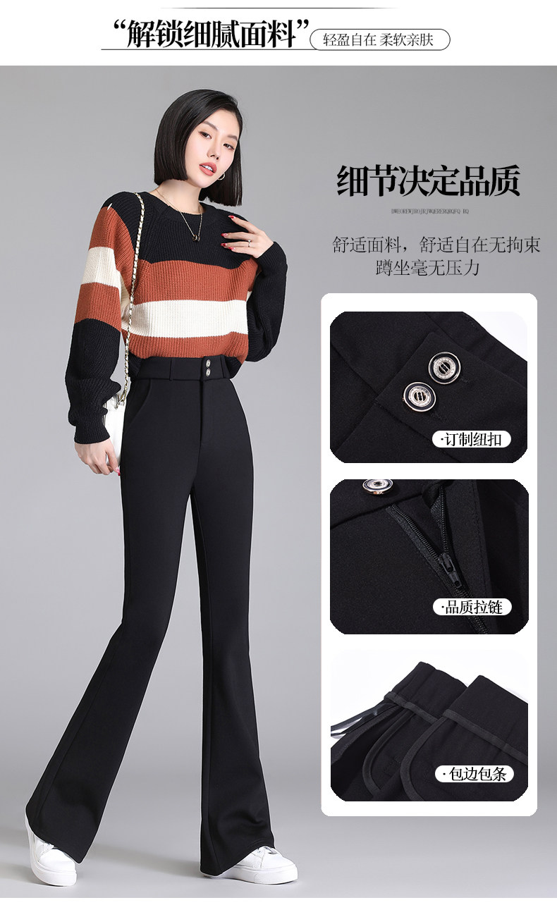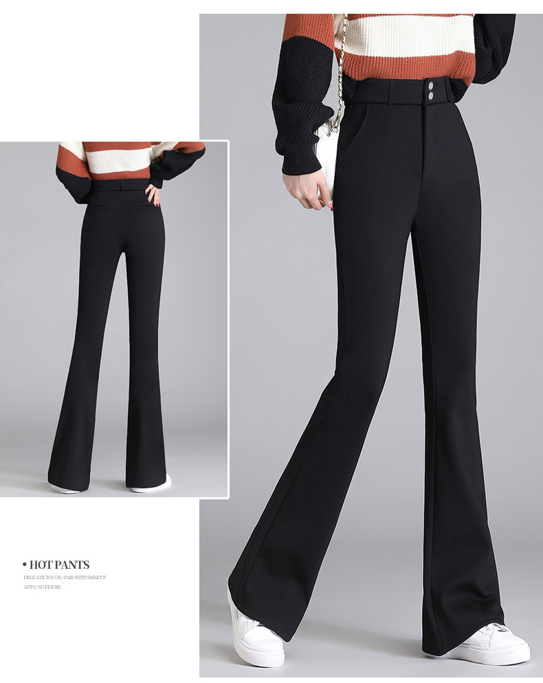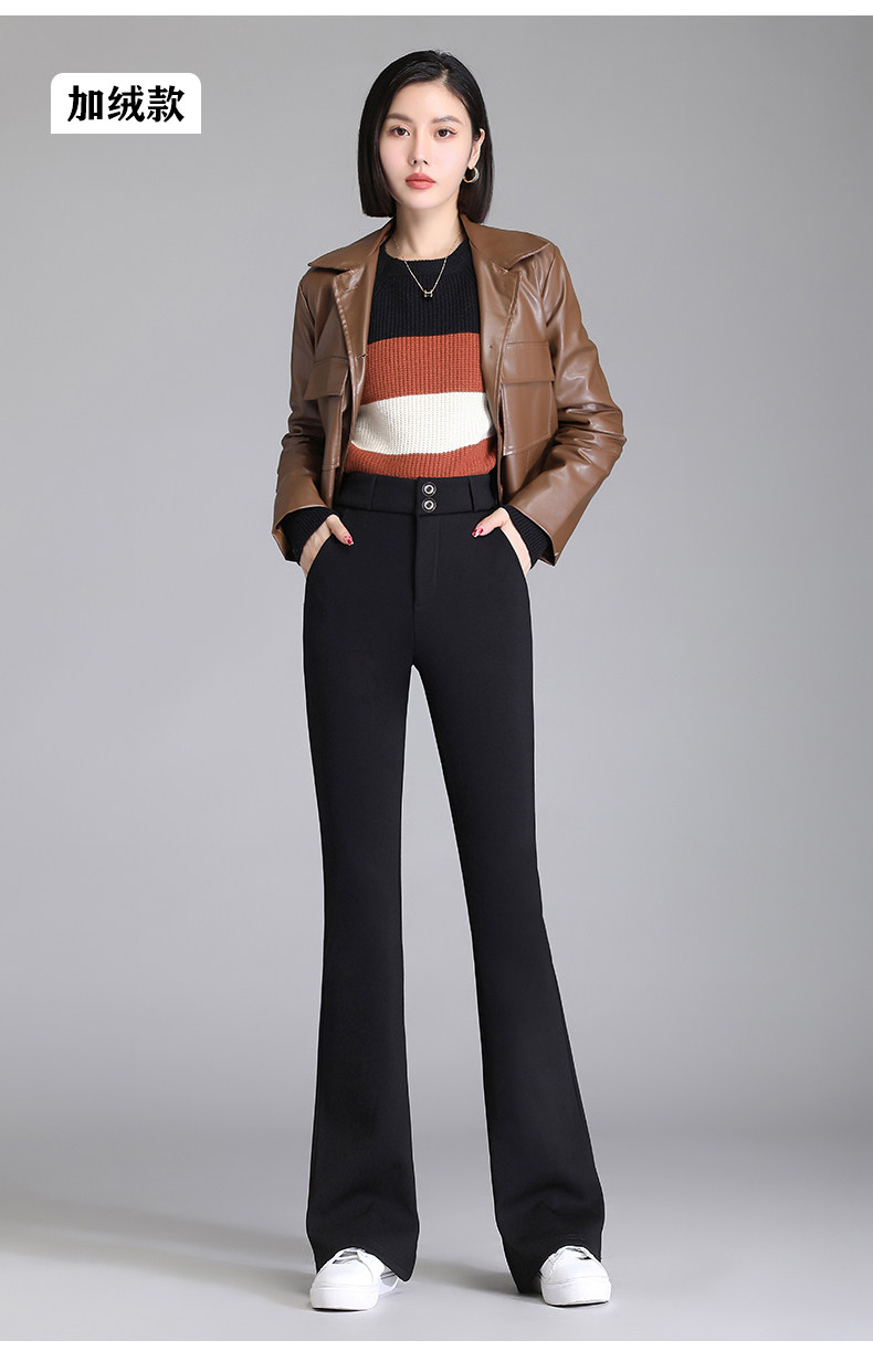 加肥加大碼胖mm高個子微喇叭褲女秋冬季200斤加絨加厚高腰西裝褲