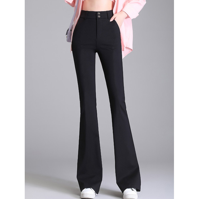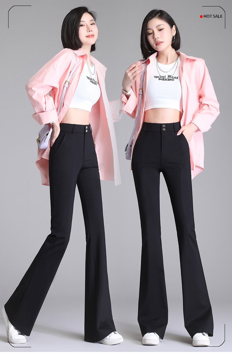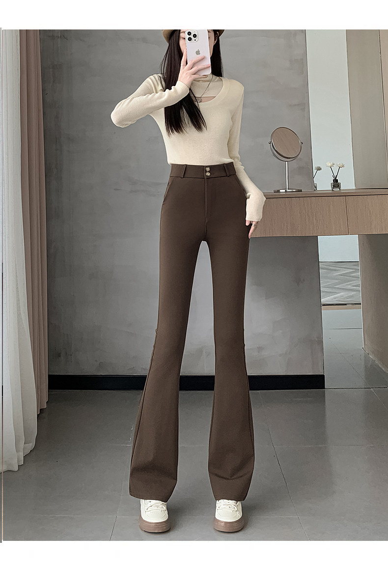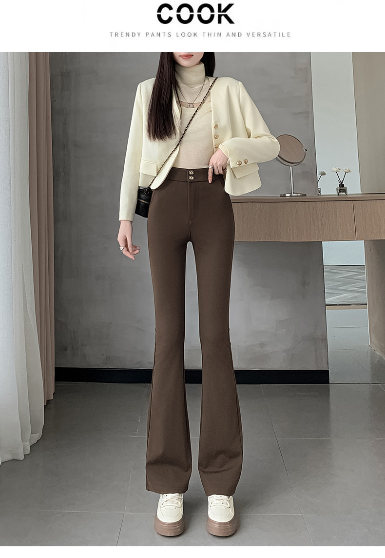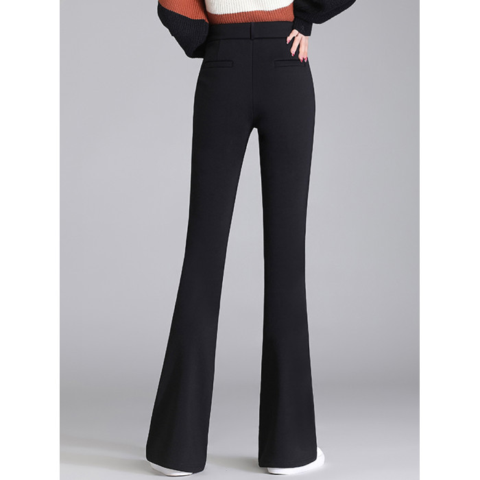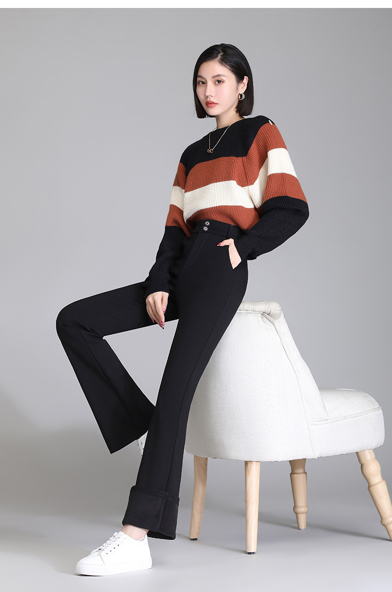 加肥加大碼胖mm高個子微喇叭褲女秋冬季200斤加絨加厚高腰西裝褲