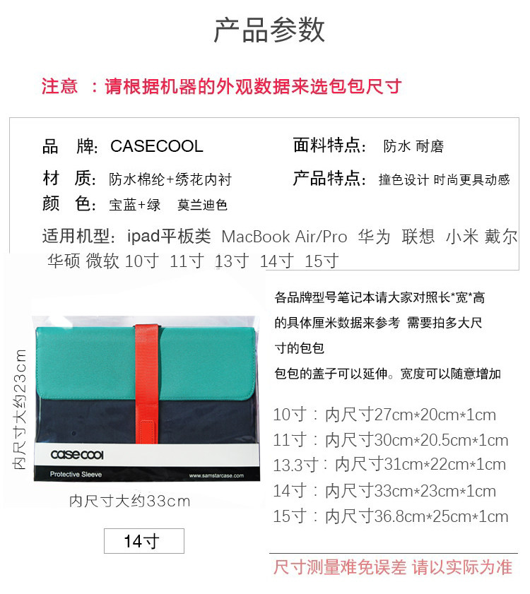CASECOOL拼色筆記型電腦包內膽包適用macbookair13.6英寸 pro13.3寸15寸華爲matebook14寸15寸華爲16寸華碩