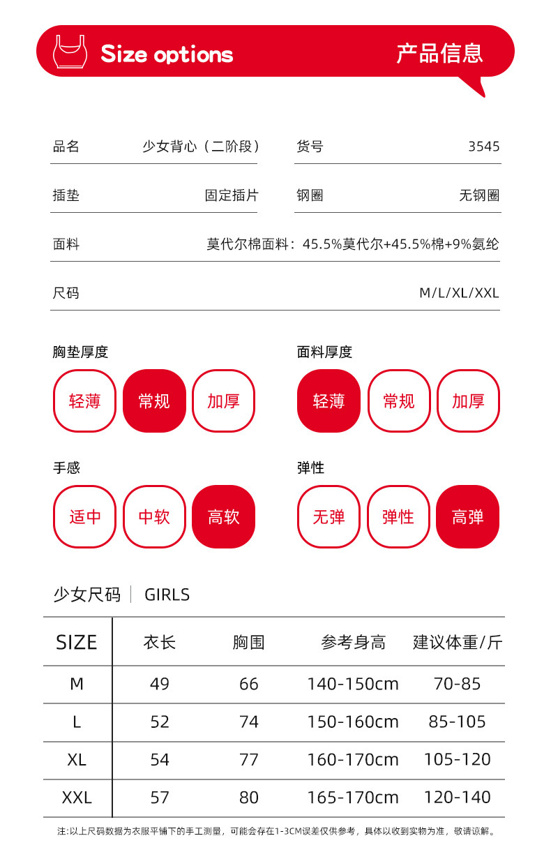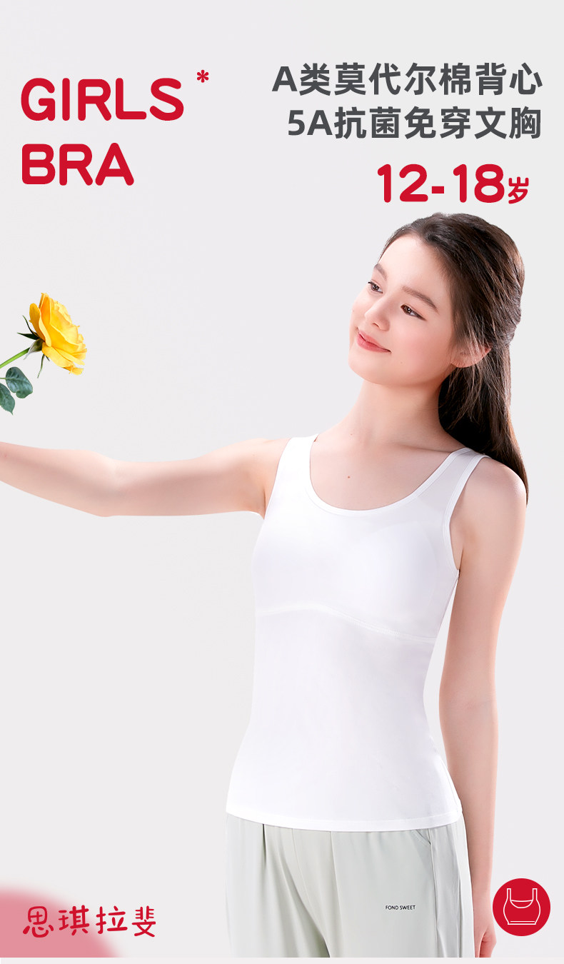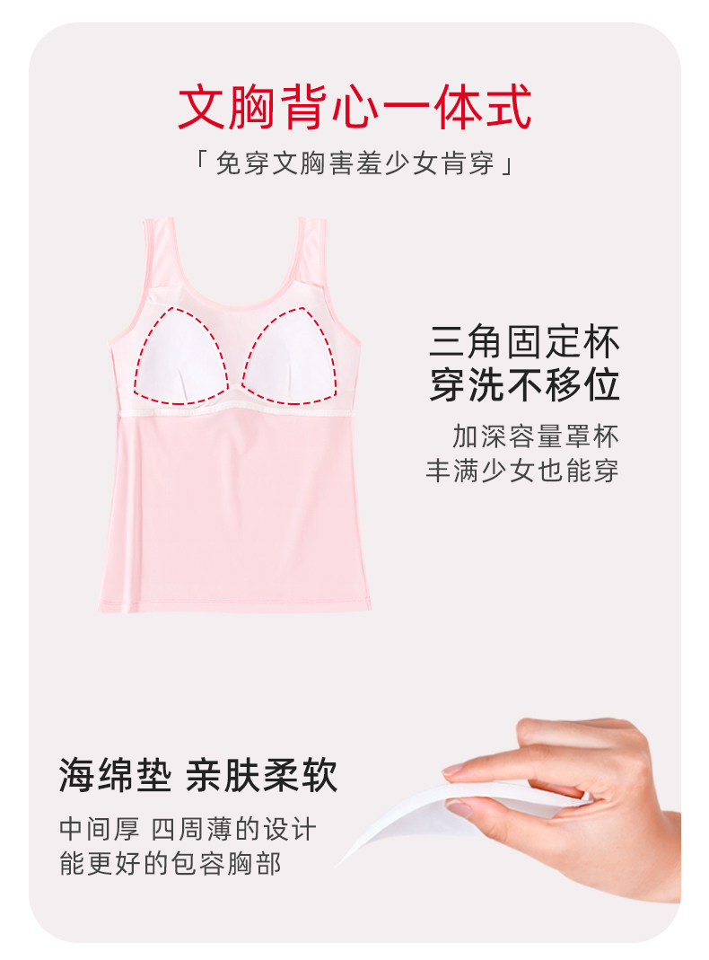 少女內衣文胸初高中生發育期三階段女大童護肚免穿文胸一體式背心