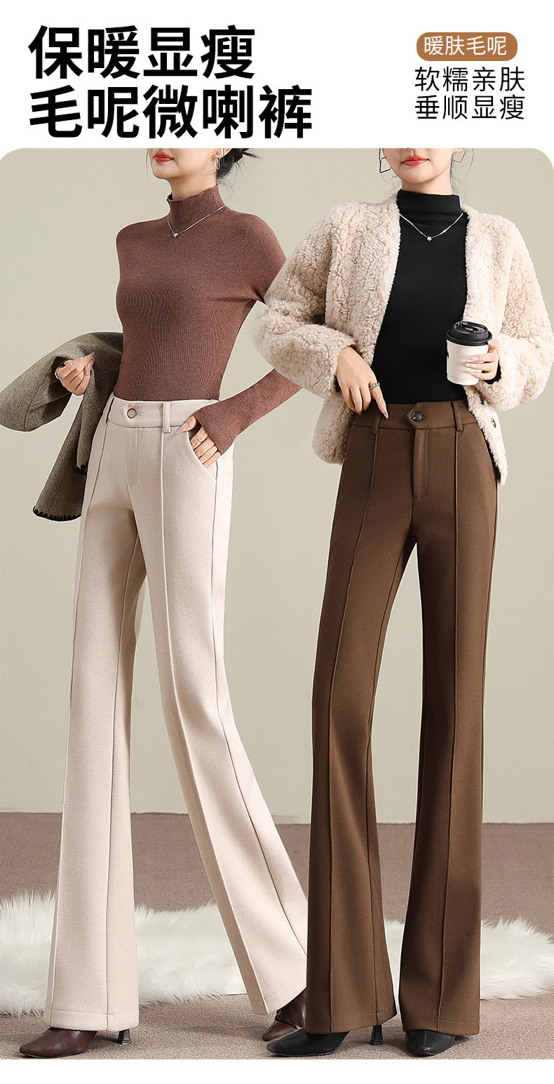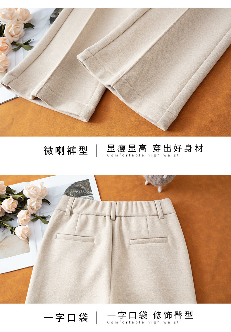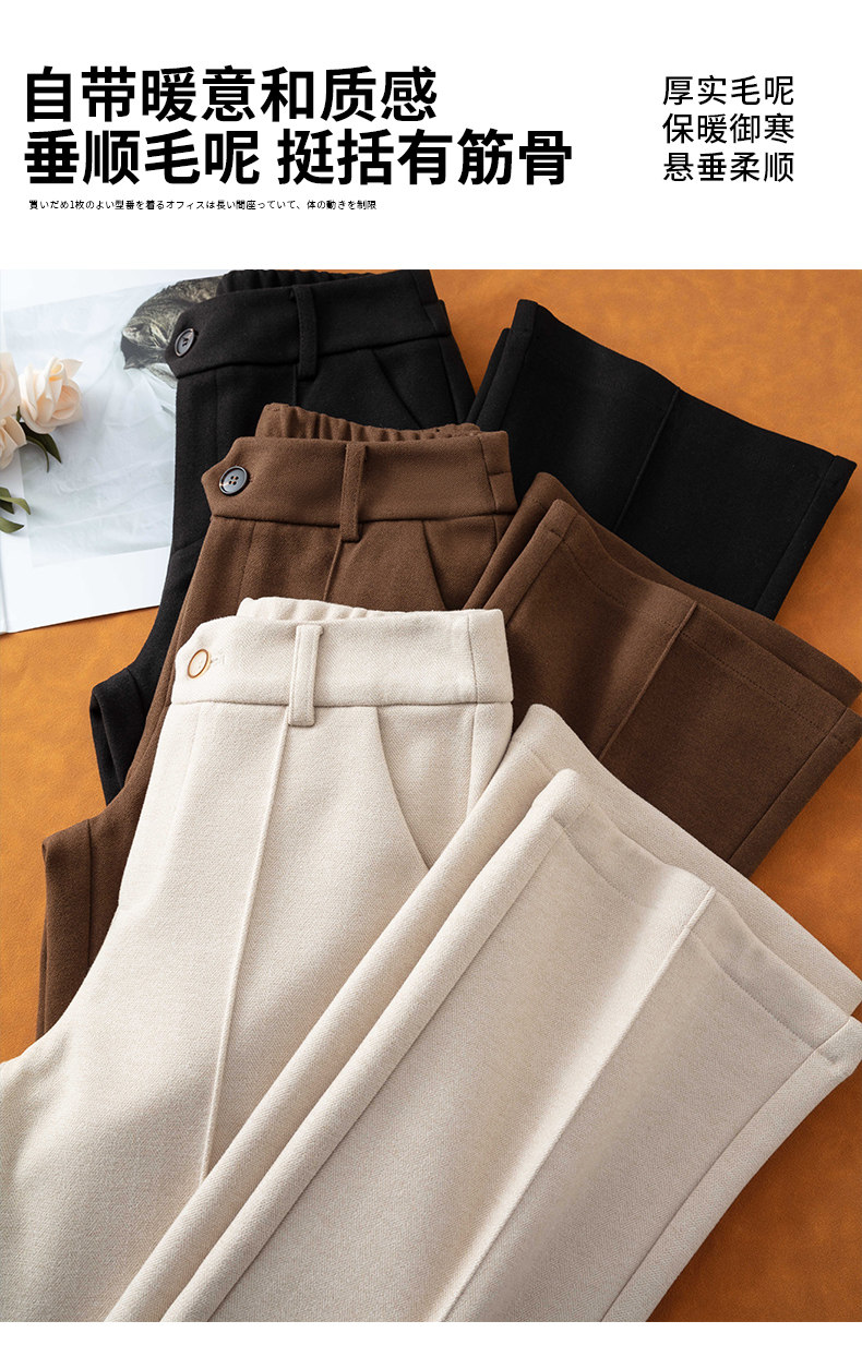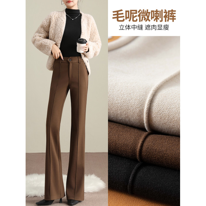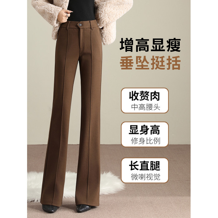 垂感喇叭褲女2025新款秋冬高腰顯瘦休閒微喇西裝褲加絨毛呢褲子女
