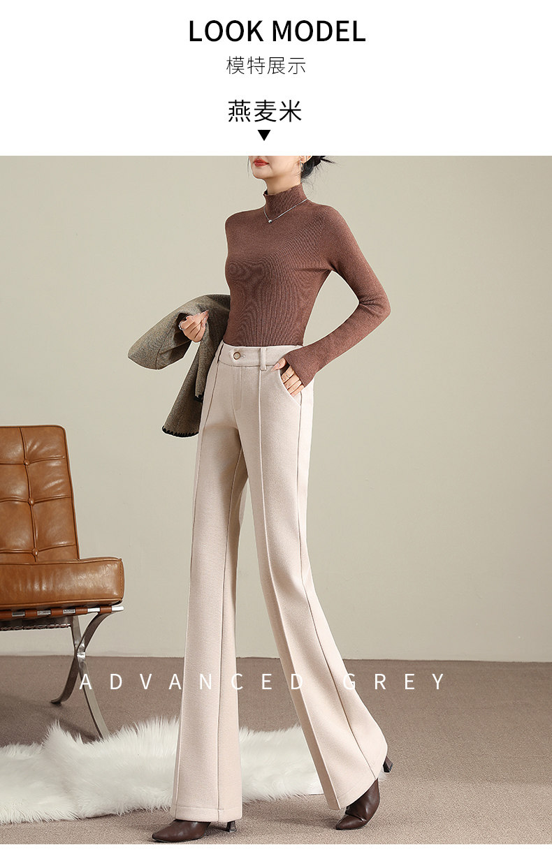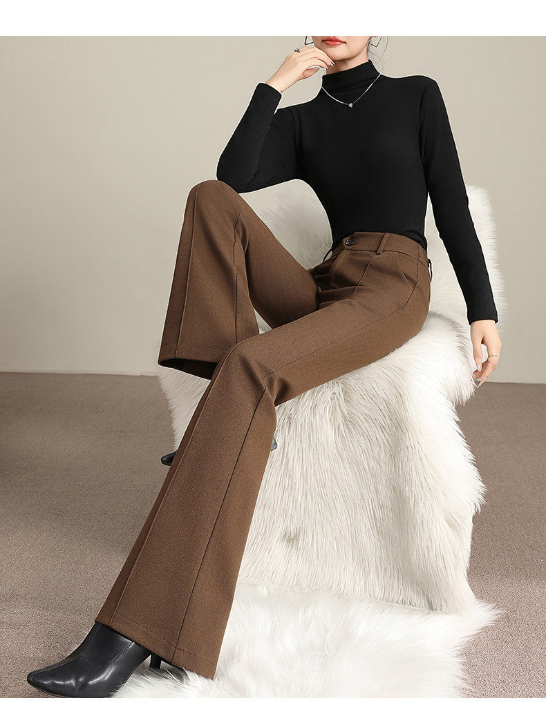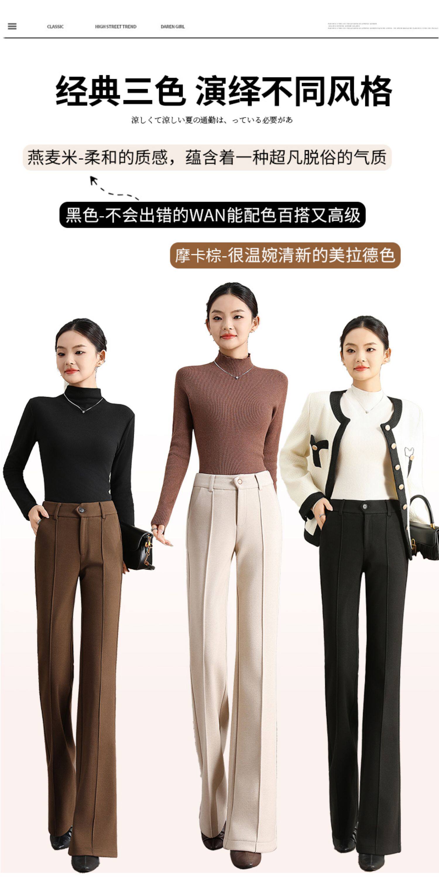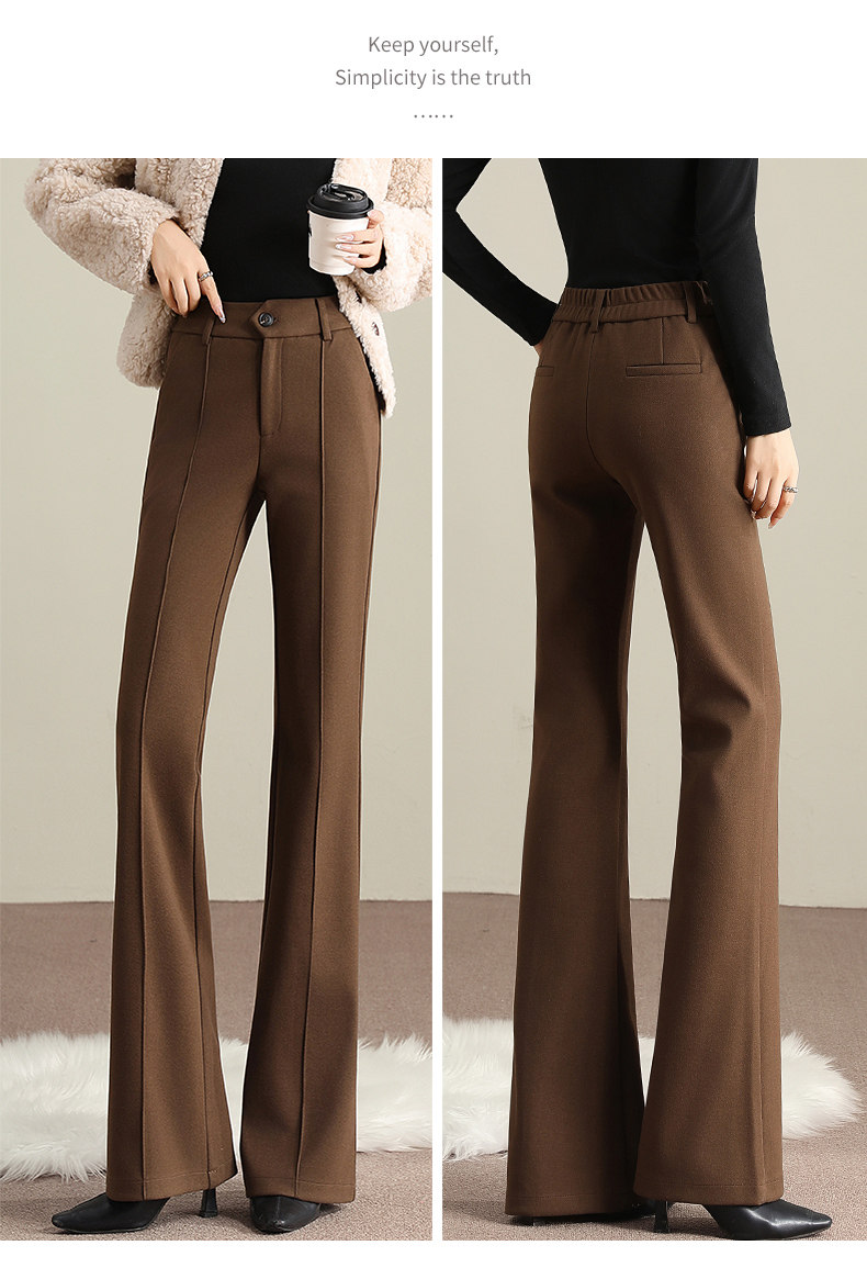 垂感喇叭褲女2025新款秋冬高腰顯瘦休閒微喇西裝褲加絨毛呢褲子女