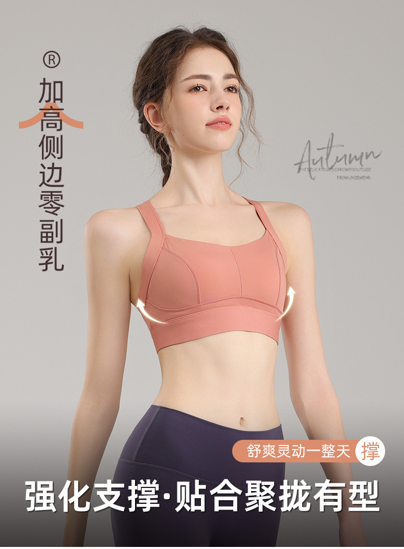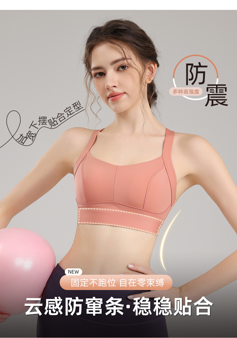 運動內衣女防震防下垂高強度固定杯健身跑步瑜珈服美背心式文胸夏