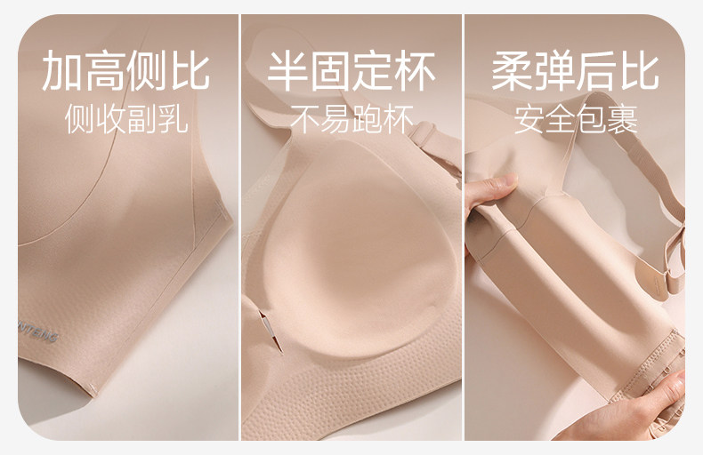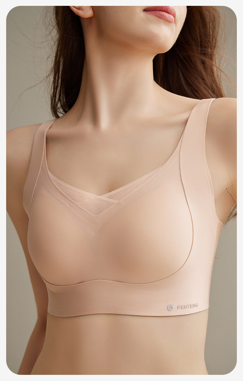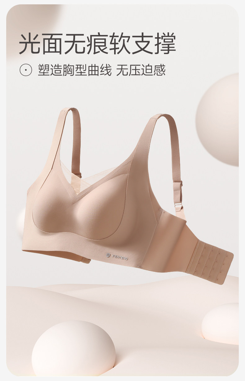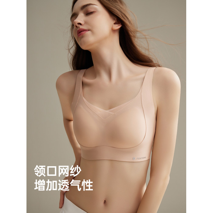 芬騰內衣女無痕無鋼圈文胸大胸顯小抗菌聚攏上托防下垂收副乳胸罩