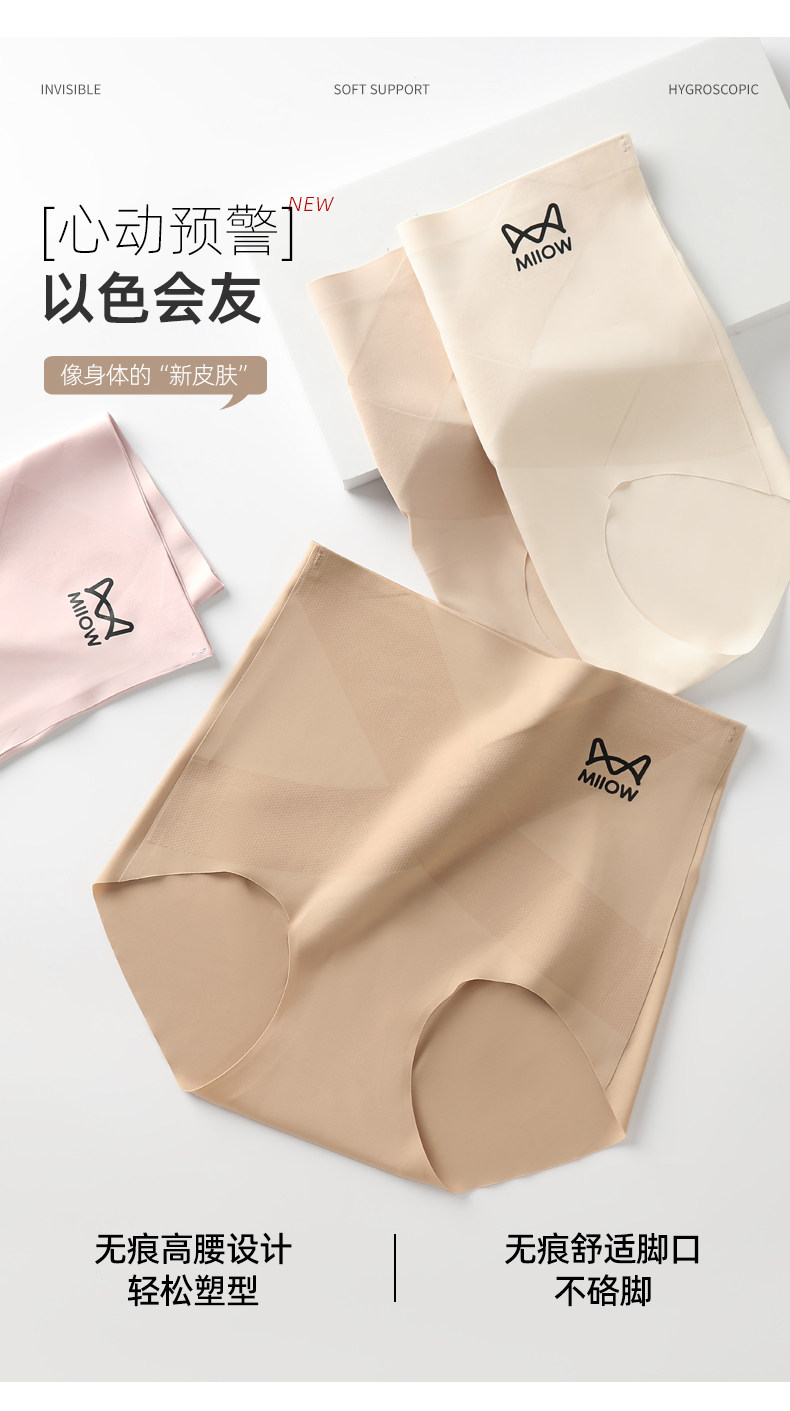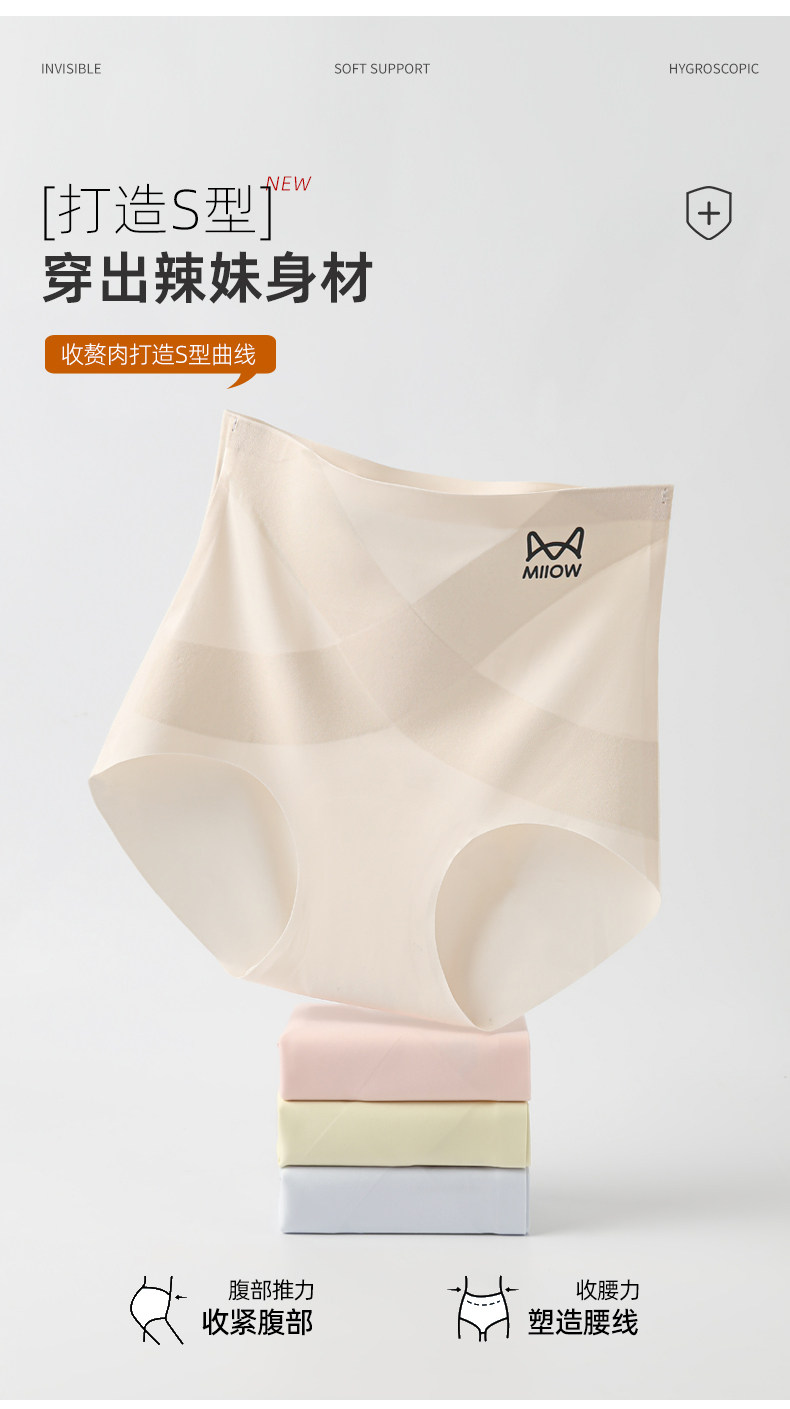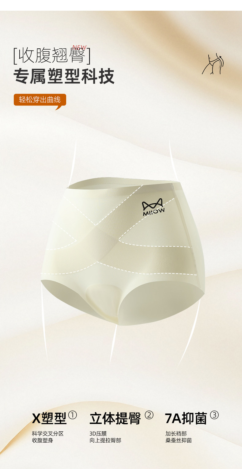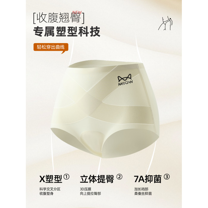 貓人內褲女高腰X型收腹提臀短褲桑蠶絲7A抑菌襠女士無痕三角褲頭