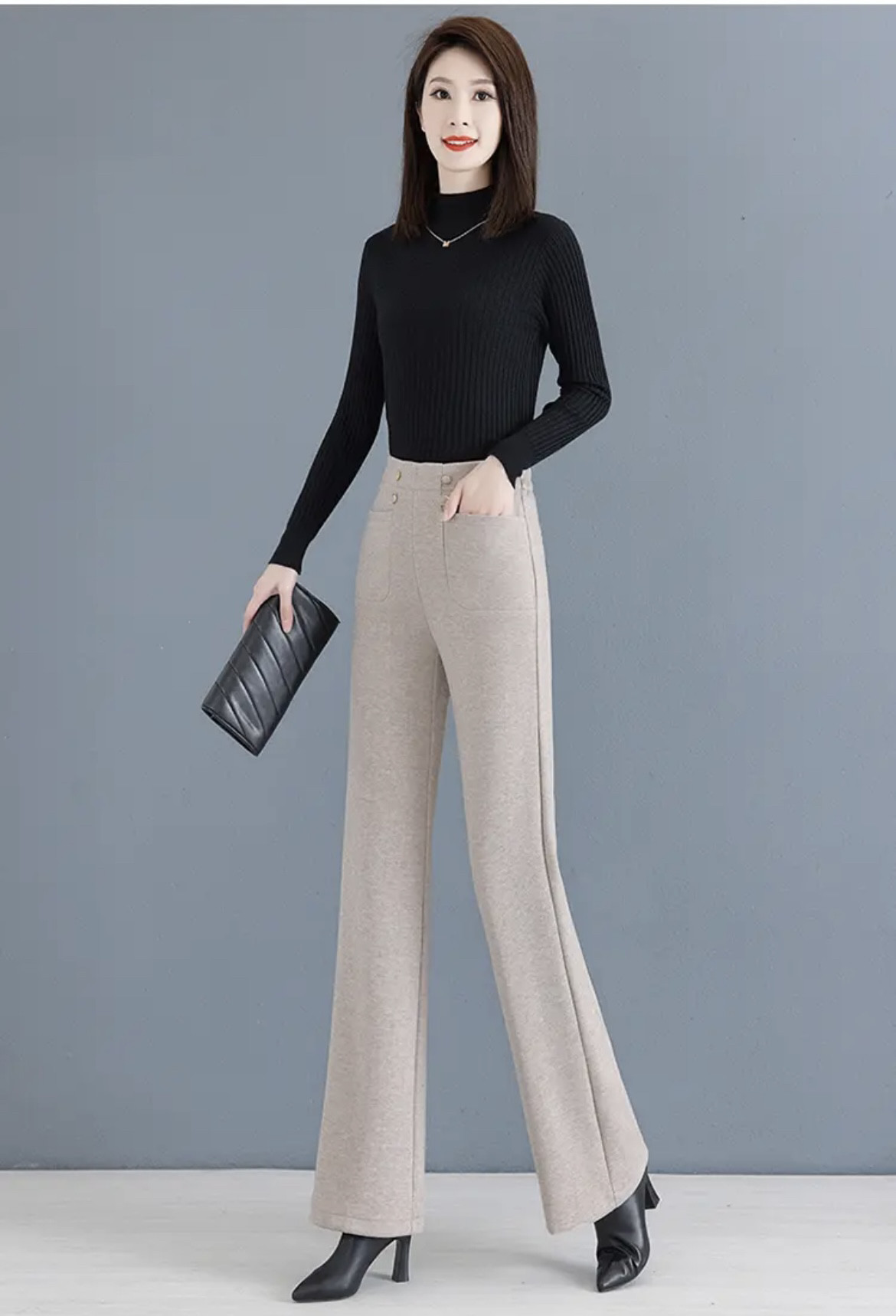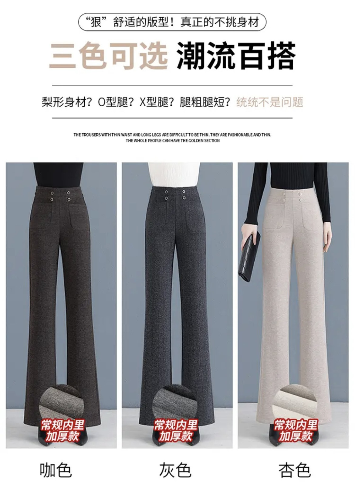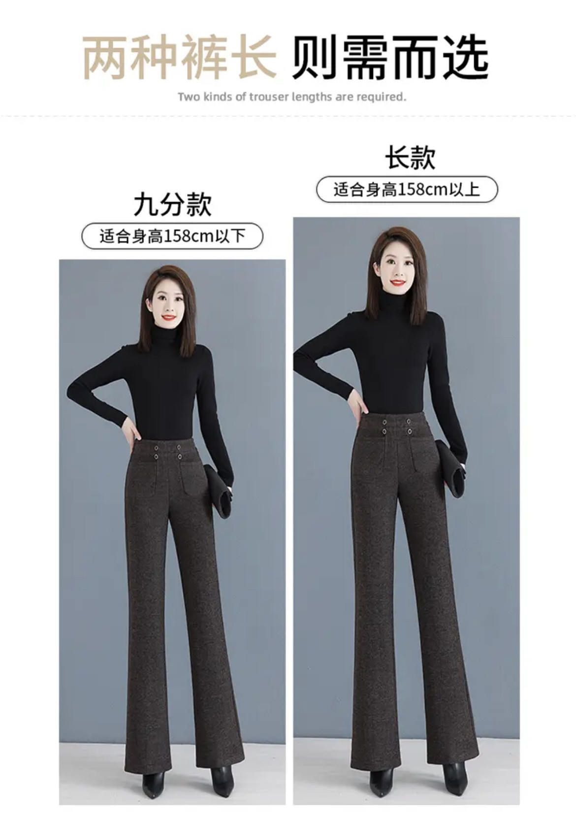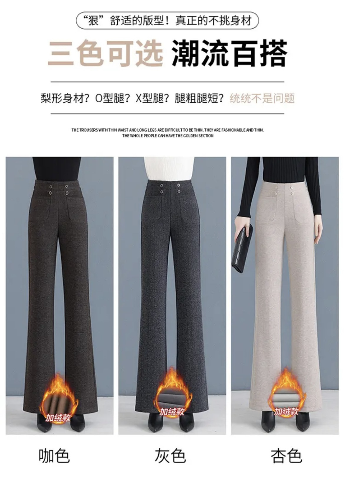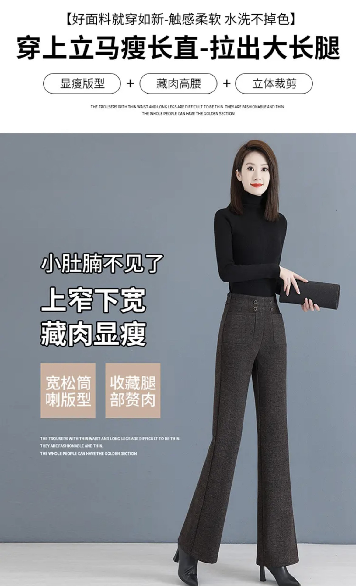 高級感毛呢褲女微喇叭褲高腰垂感寬鬆媽媽時尚微喇加絨加厚西裝褲