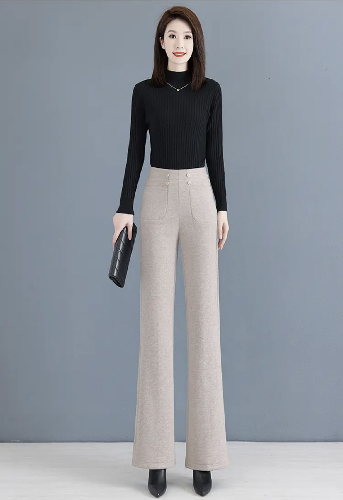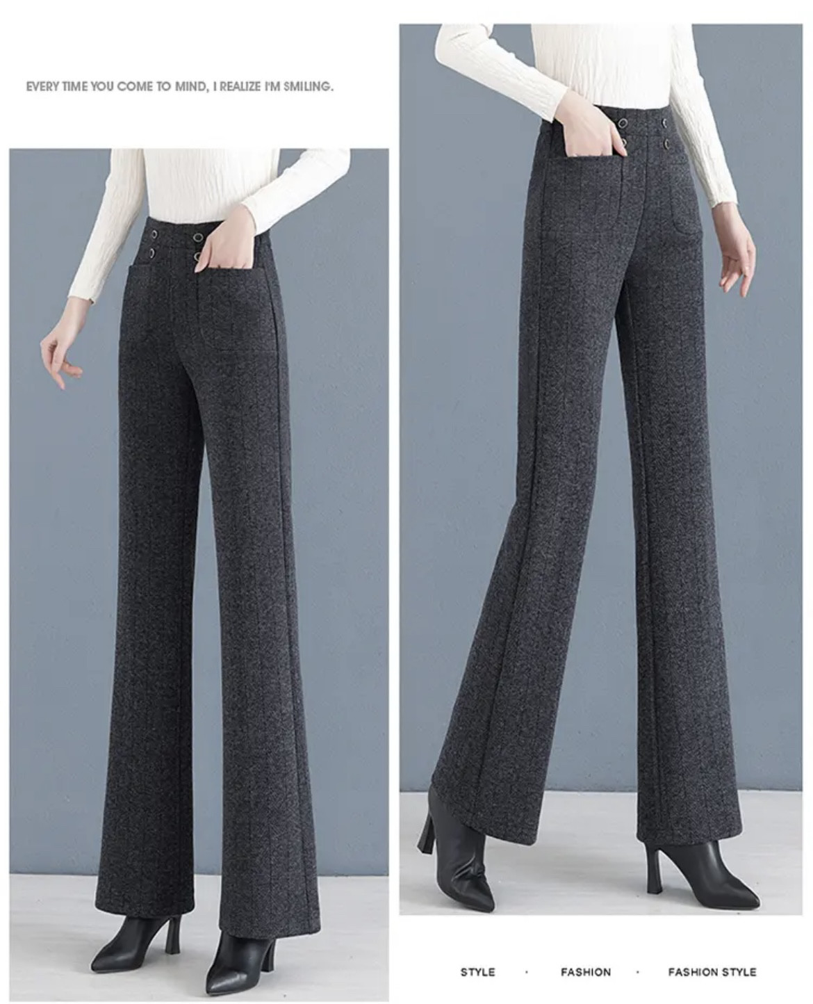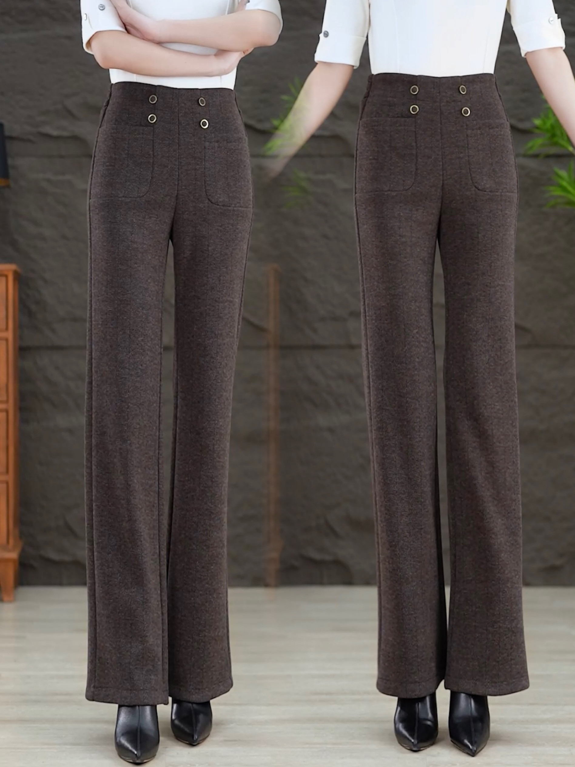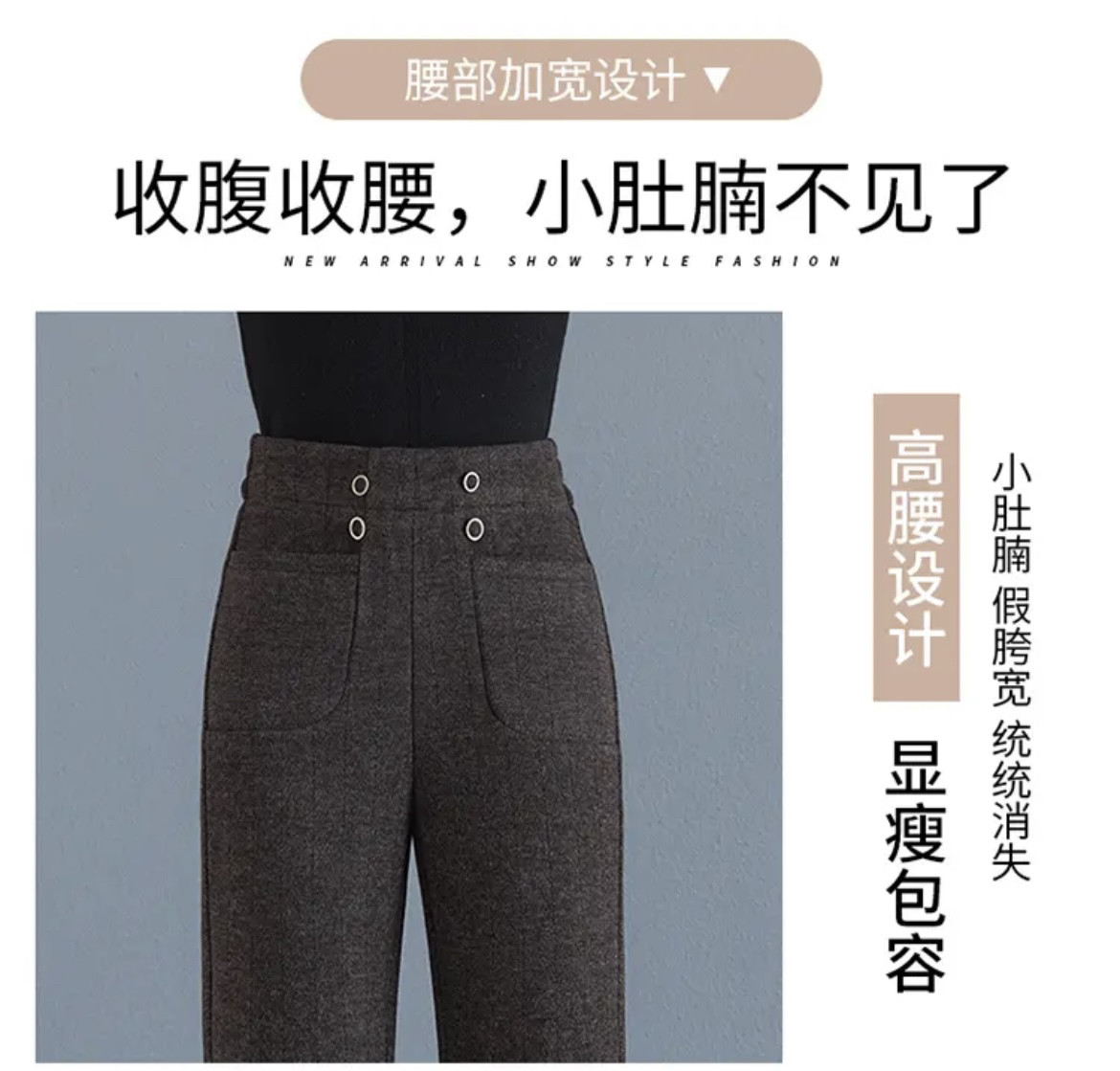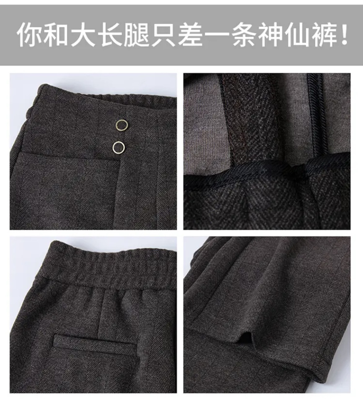 高級感毛呢褲女微喇叭褲高腰垂感寬鬆媽媽時尚微喇加絨加厚西裝褲