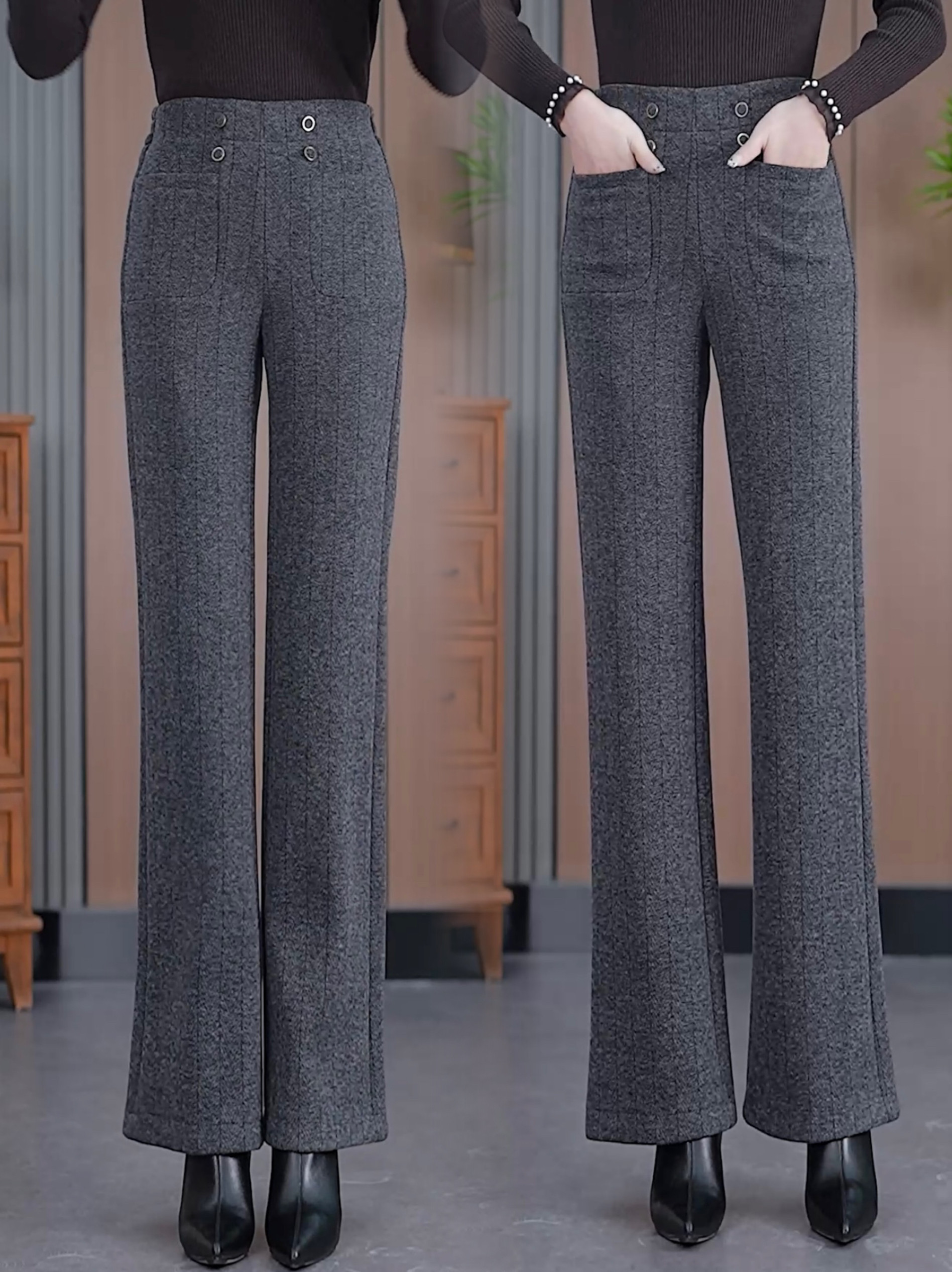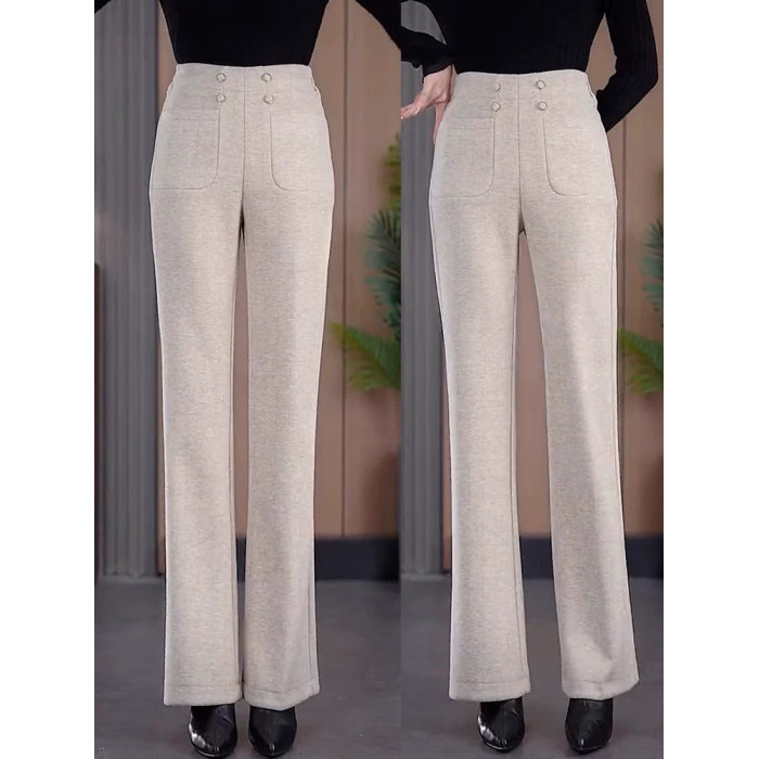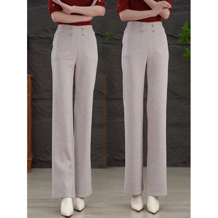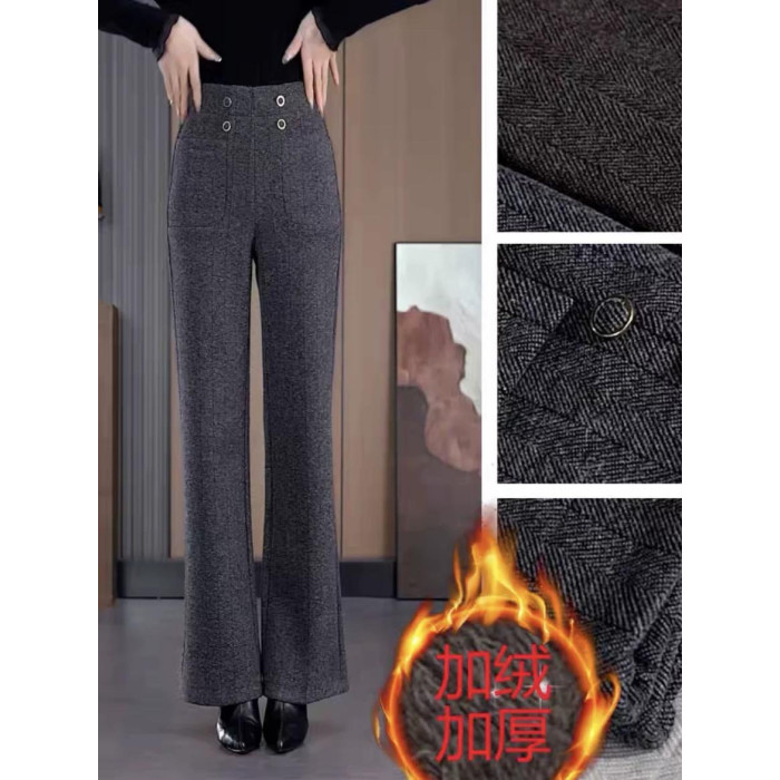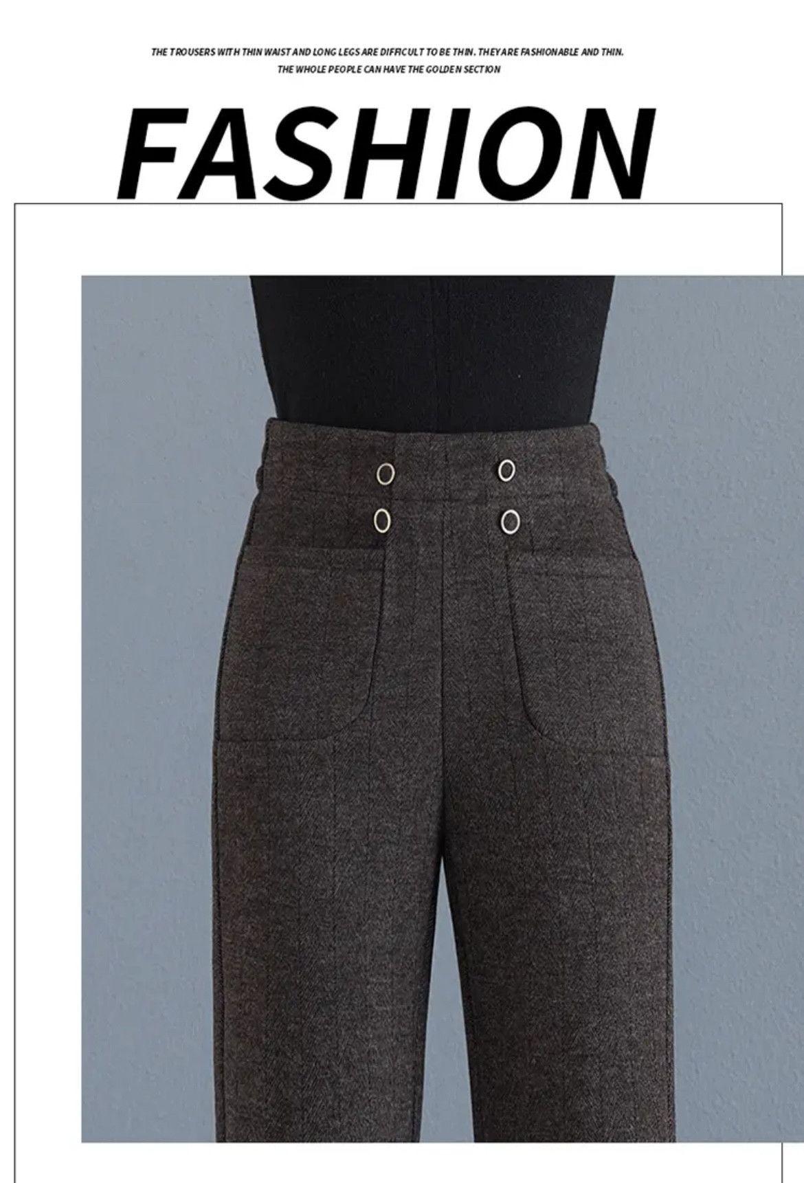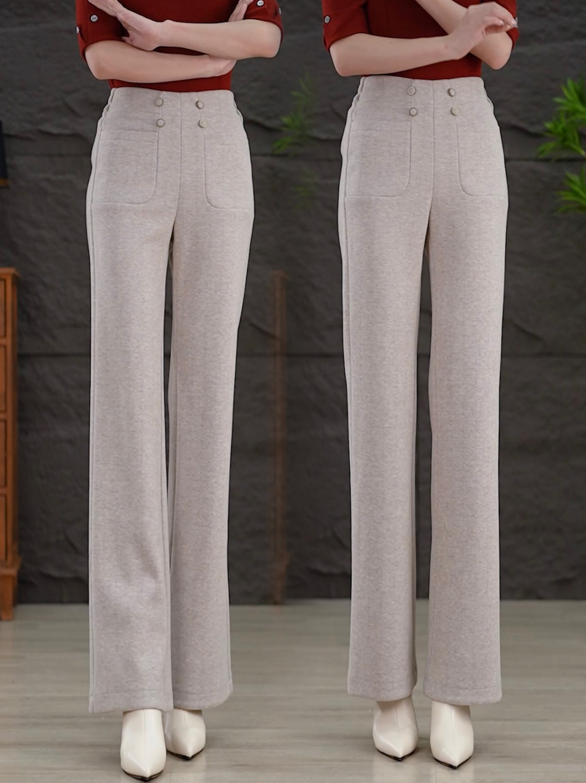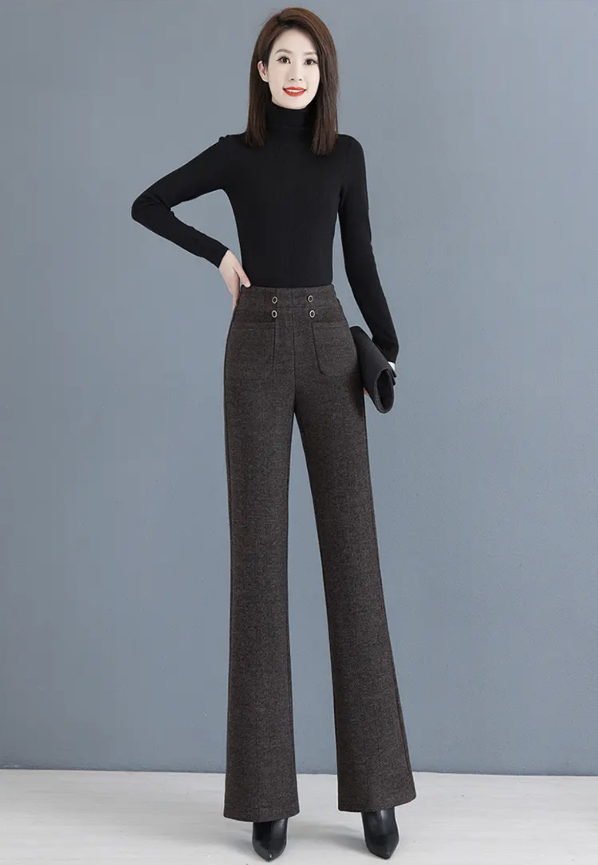 高級感毛呢褲女微喇叭褲高腰垂感寬鬆媽媽時尚微喇加絨加厚西裝褲