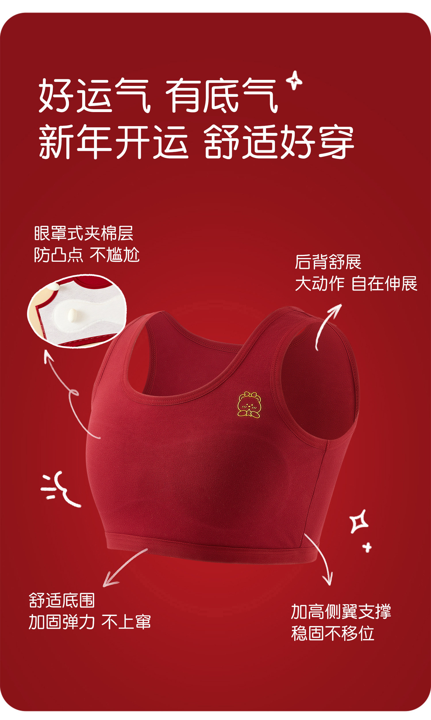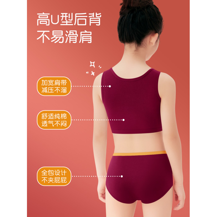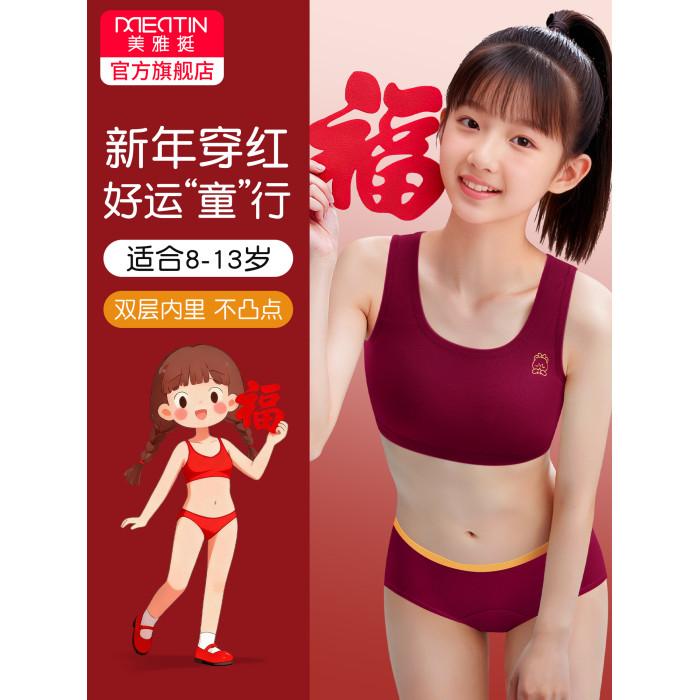 紅色內衣內褲女童馬年本命年套裝純棉兒童發育期學生背心12嵗女孩