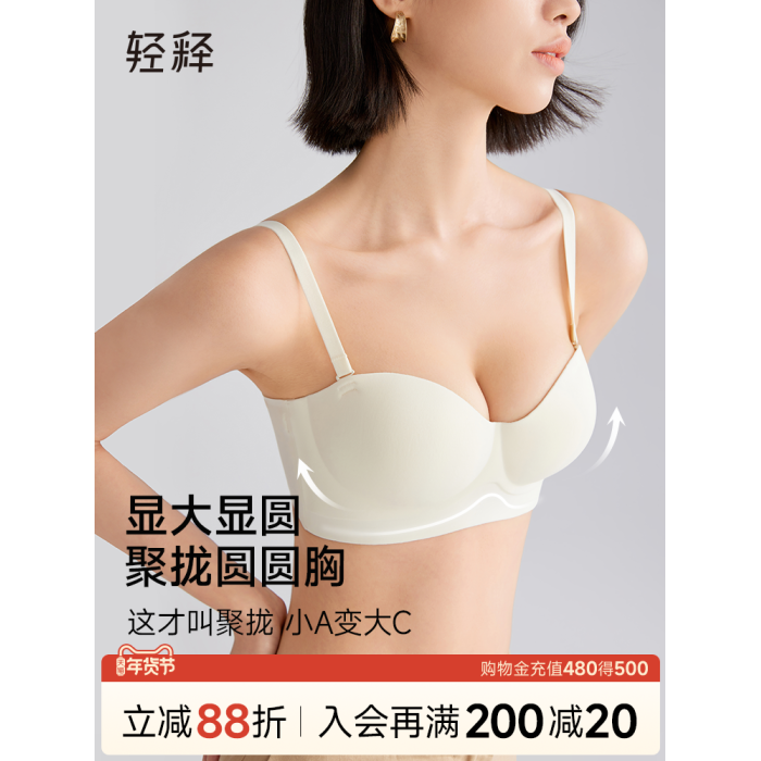 輕釋圓圓胸小胸聚攏顯大半杯內衣收副乳無痕無鋼圈防滑文胸美背