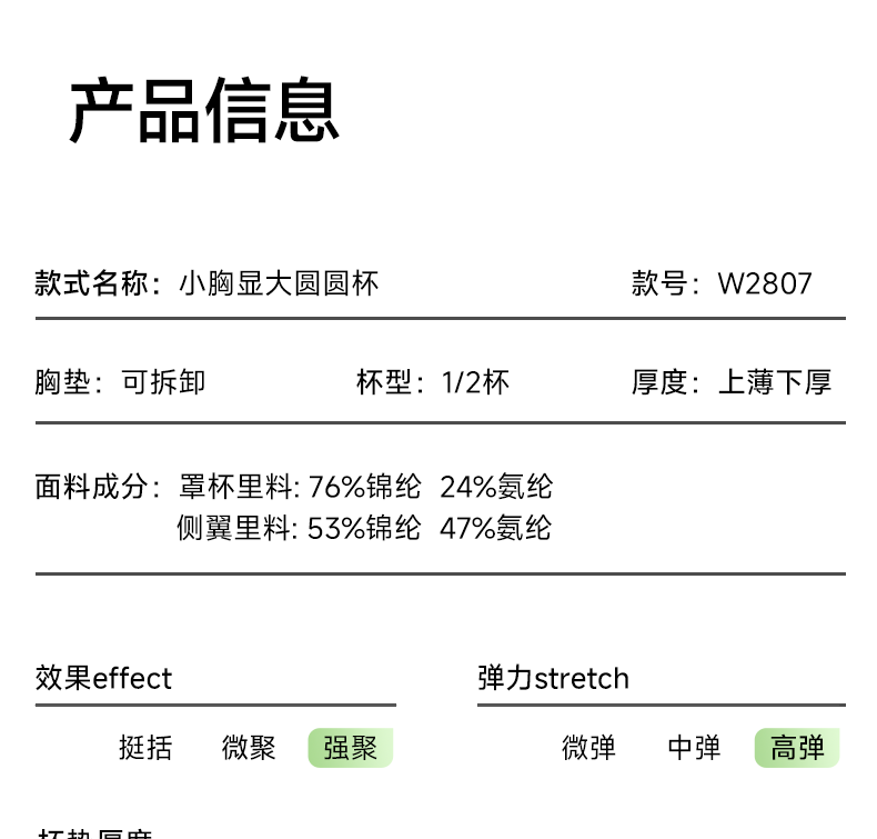 | 罩杯裡料成分含量 | 61%(含)-80%(含) |
