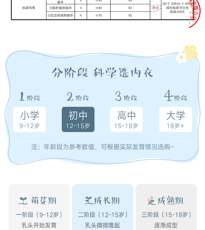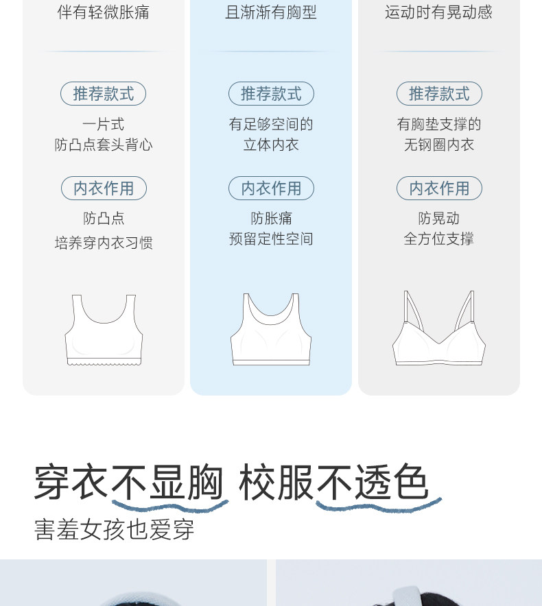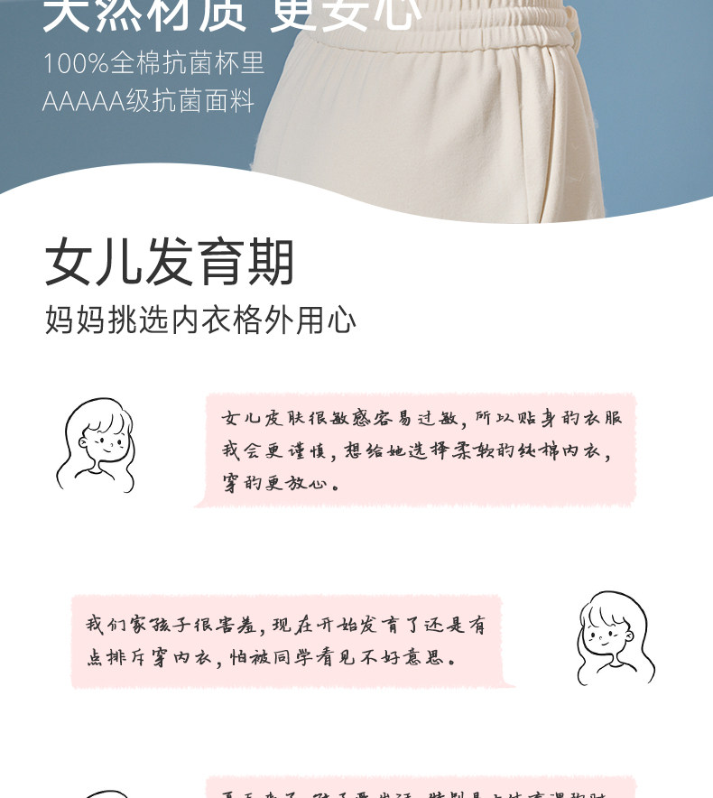 適合12至15嵗發育期女生曼妮芬棉質生活初中生純棉抗菌杯少女文胸