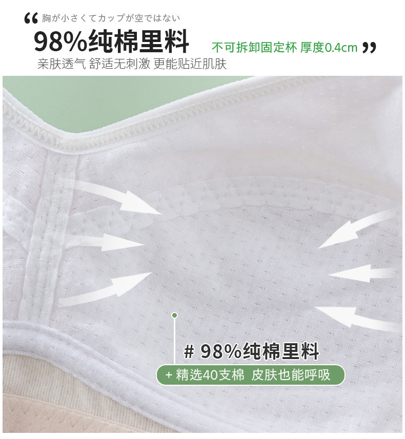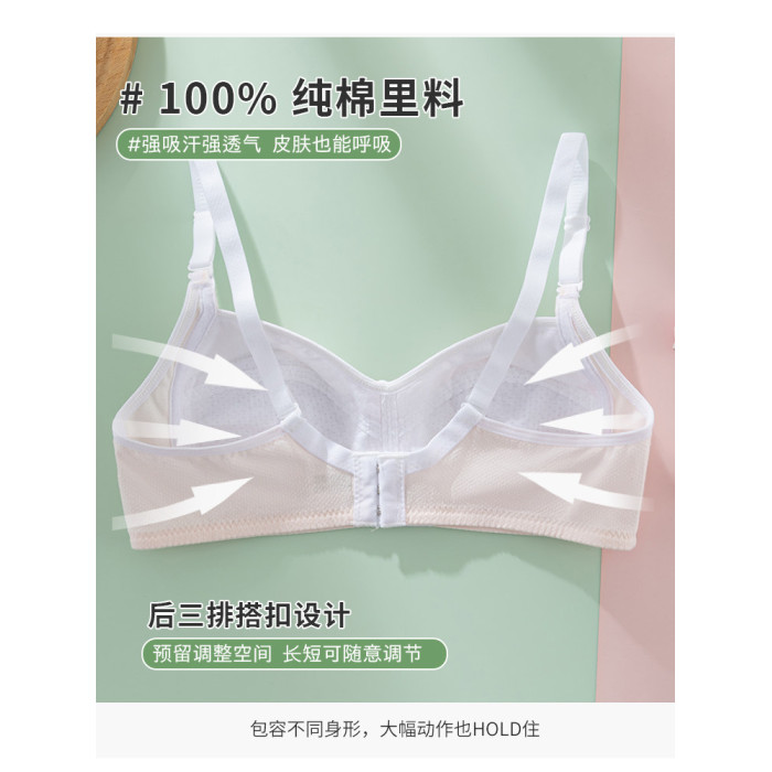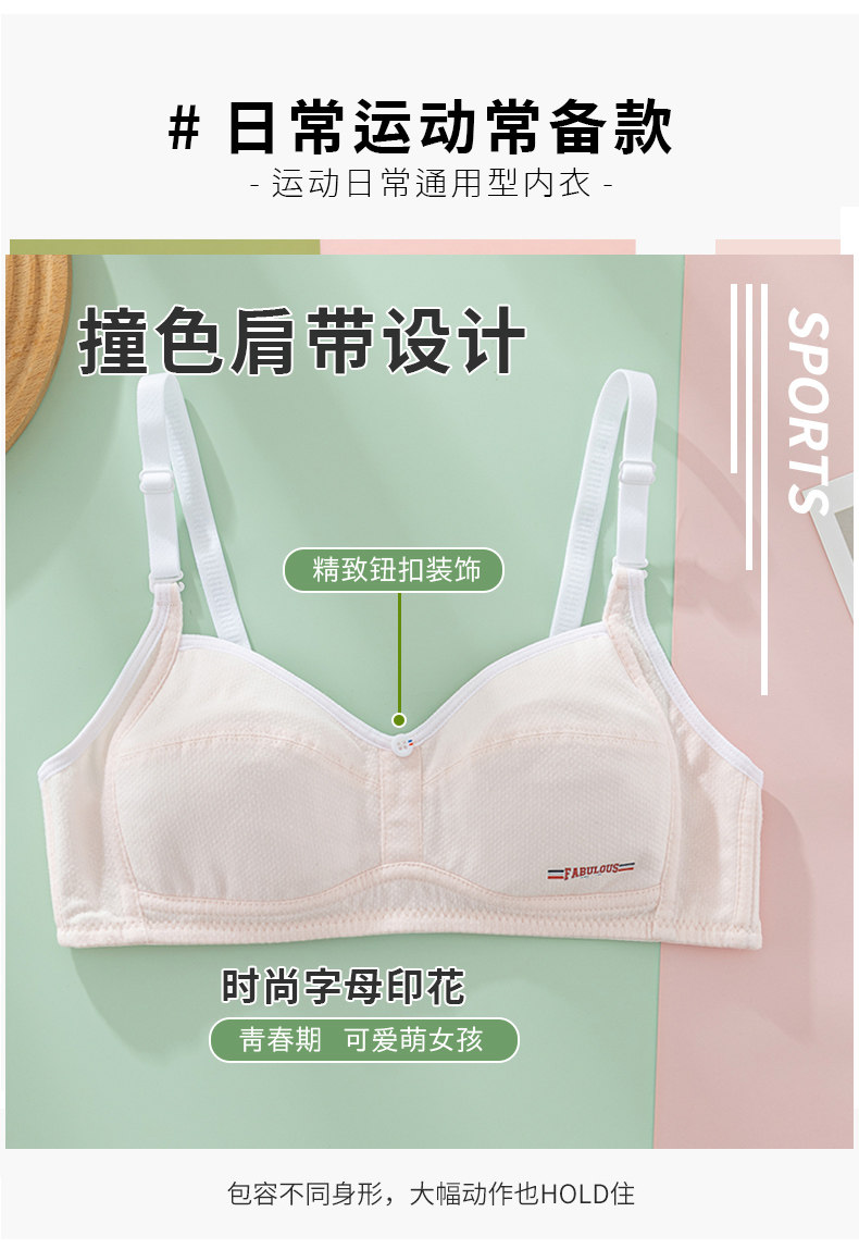 純棉內衣薄款無海綿學生初中生高中生少女發育期16嵗女孩文胸罩夏