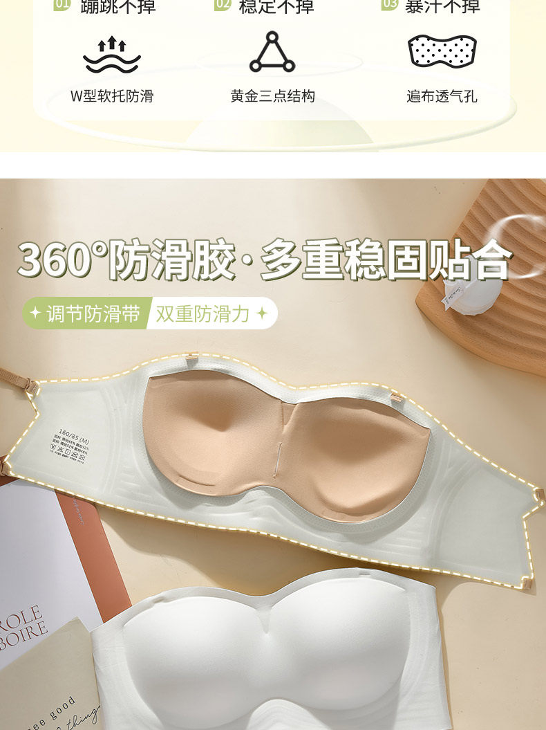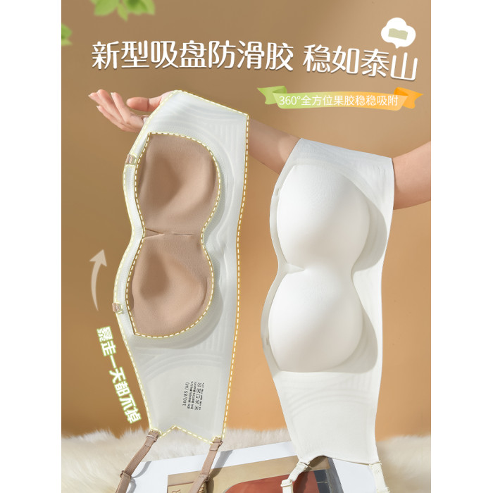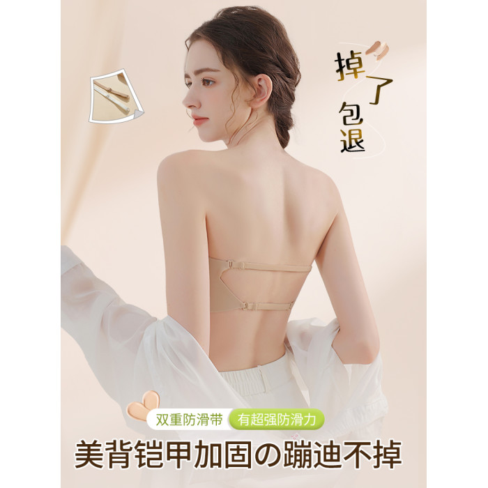 粉底液無肩帶內衣女防滑聚攏小胸隱形無痕抹胸防走光裹胸美背文胸
