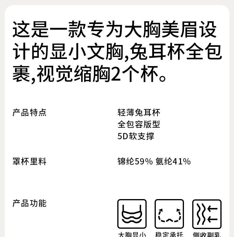 埃茉內衣女薄款大胸顯小胸全罩杯無痕文胸收副乳防下垂兔耳朵胸罩