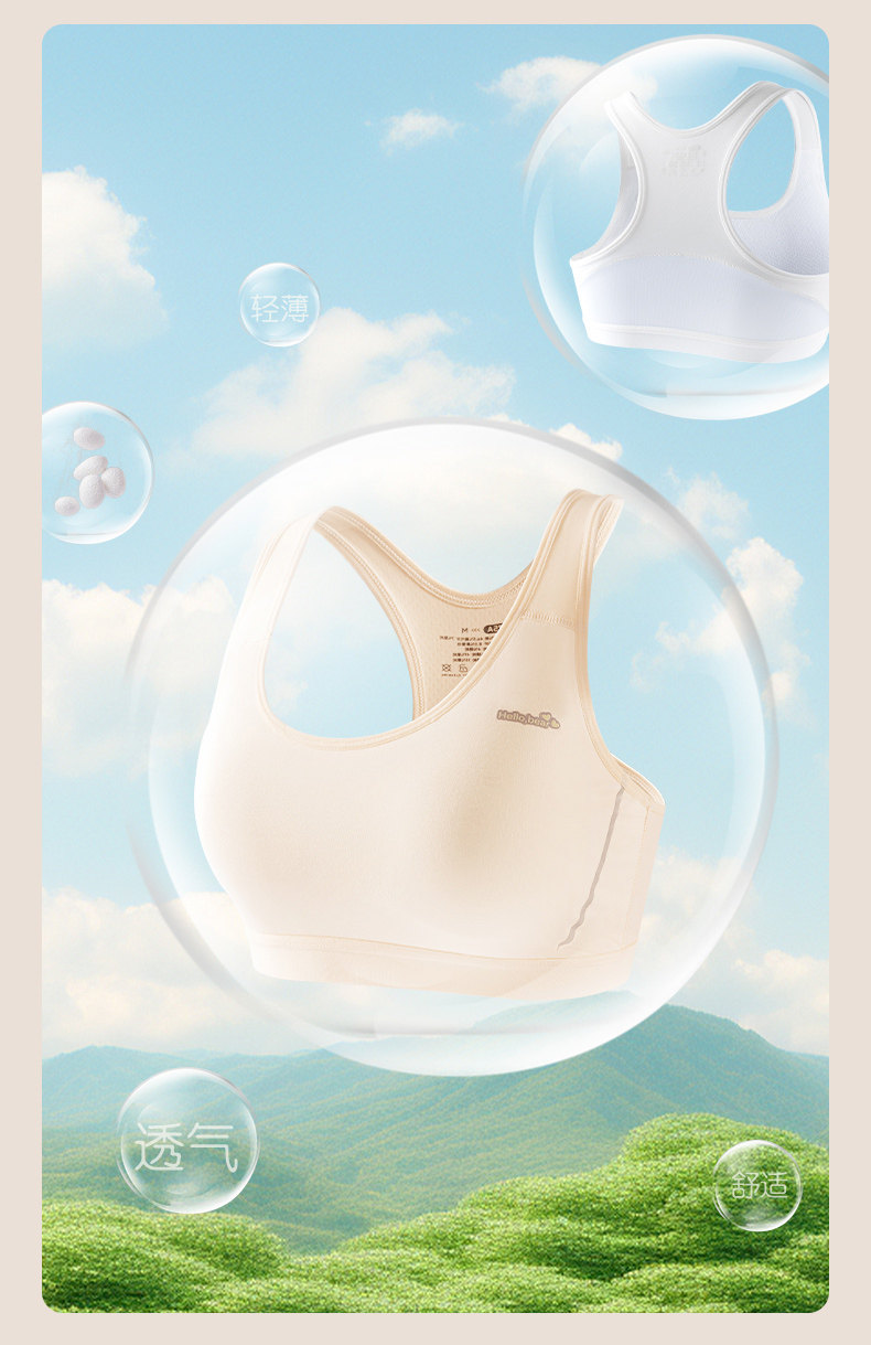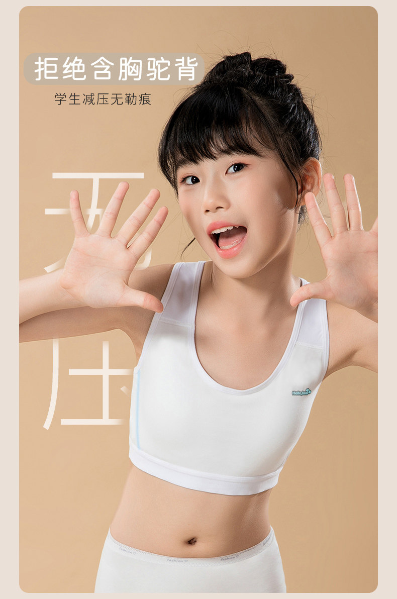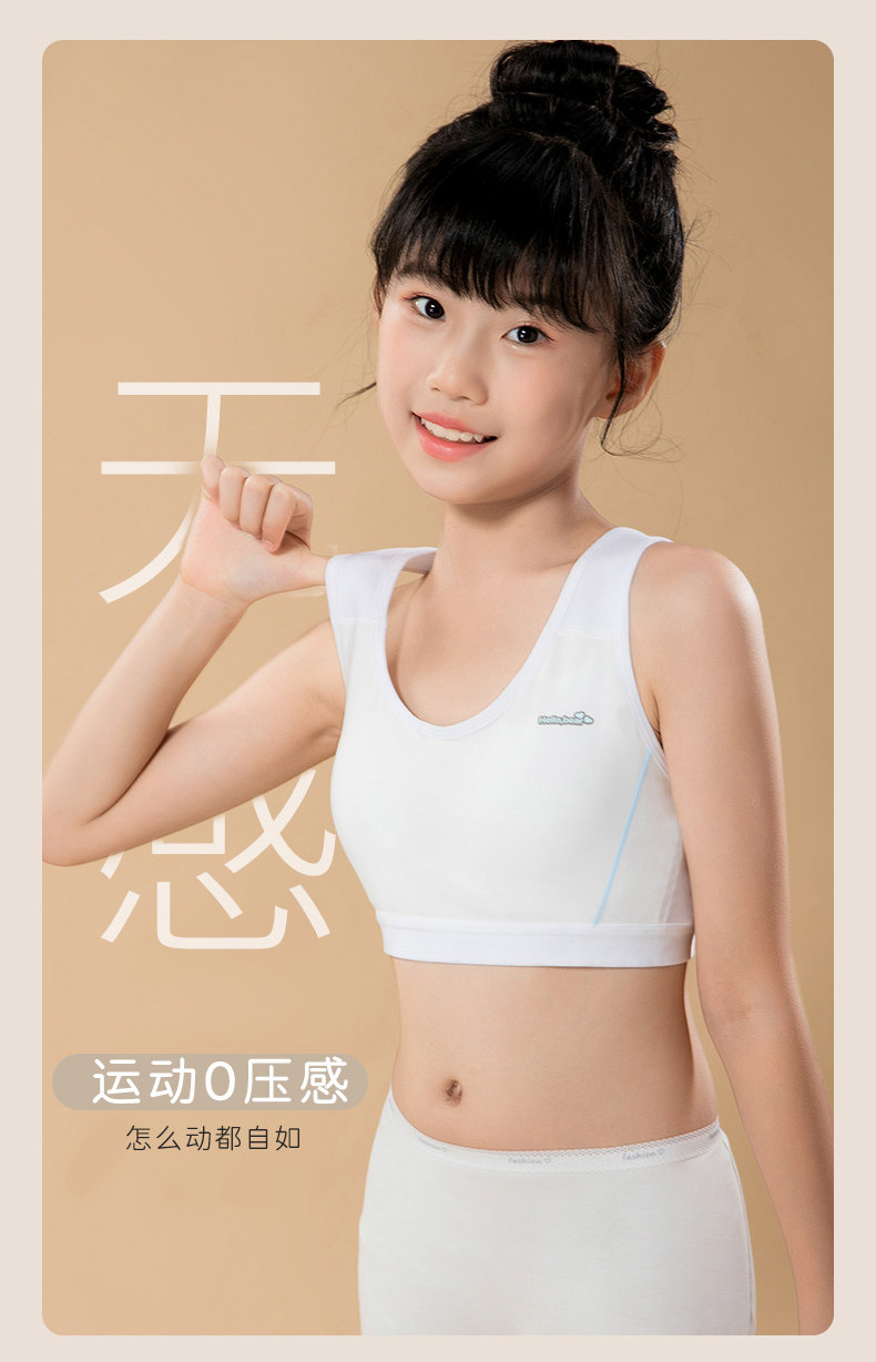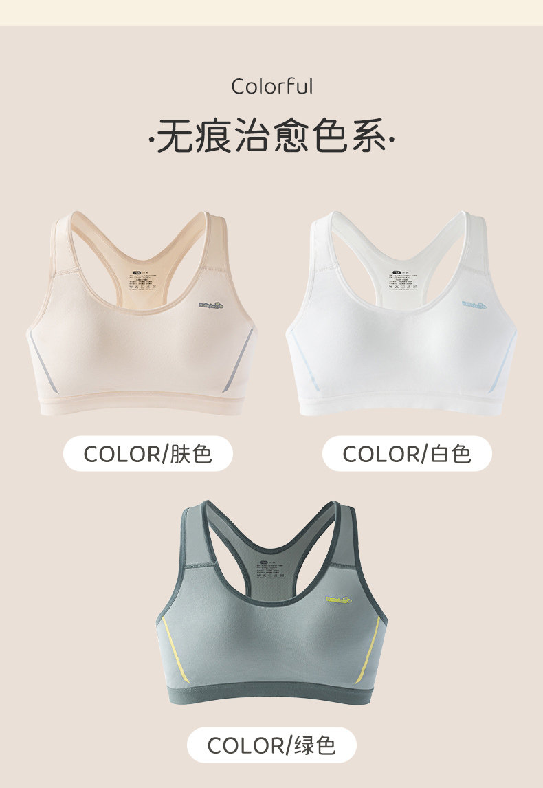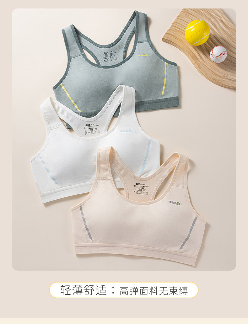 莫代爾棉初中生內衣女大碼高中生學生運動防震背心發育期少女文胸