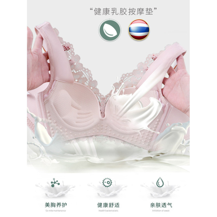 無磁乳膠內衣女無鋼圈小胸聚攏收副乳防下垂調整型薄款文胸套裝