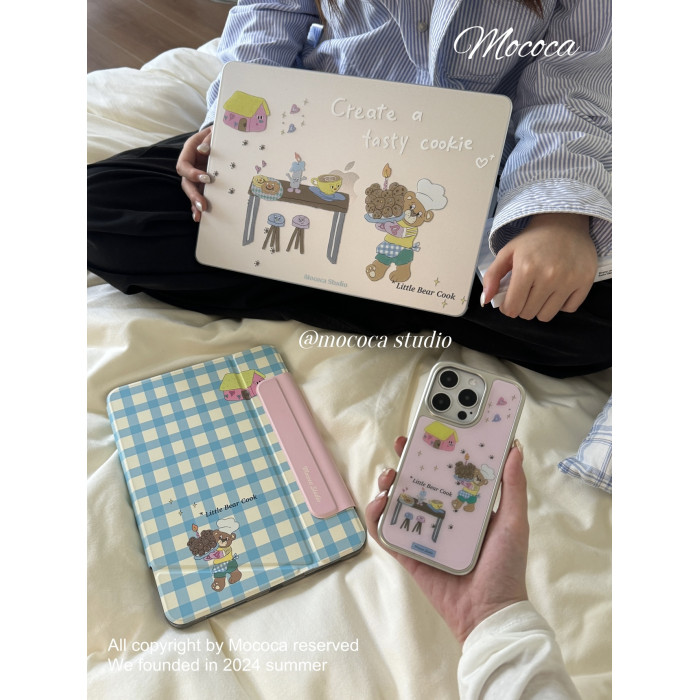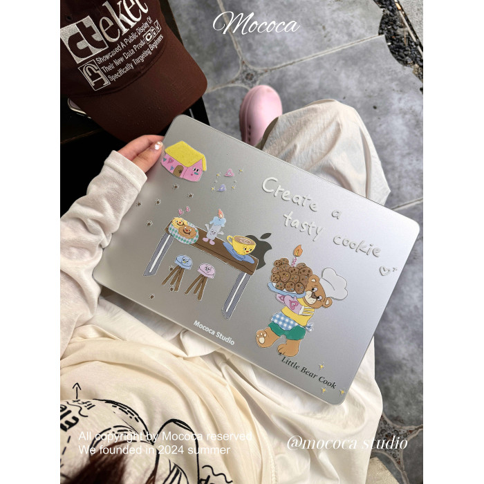 MOCOCA《小熊甜品師》韓國可愛原創插畫進口pc透明硬殼防磕碰適用於Macbook蘋果pro電腦air保護套13寸14寸