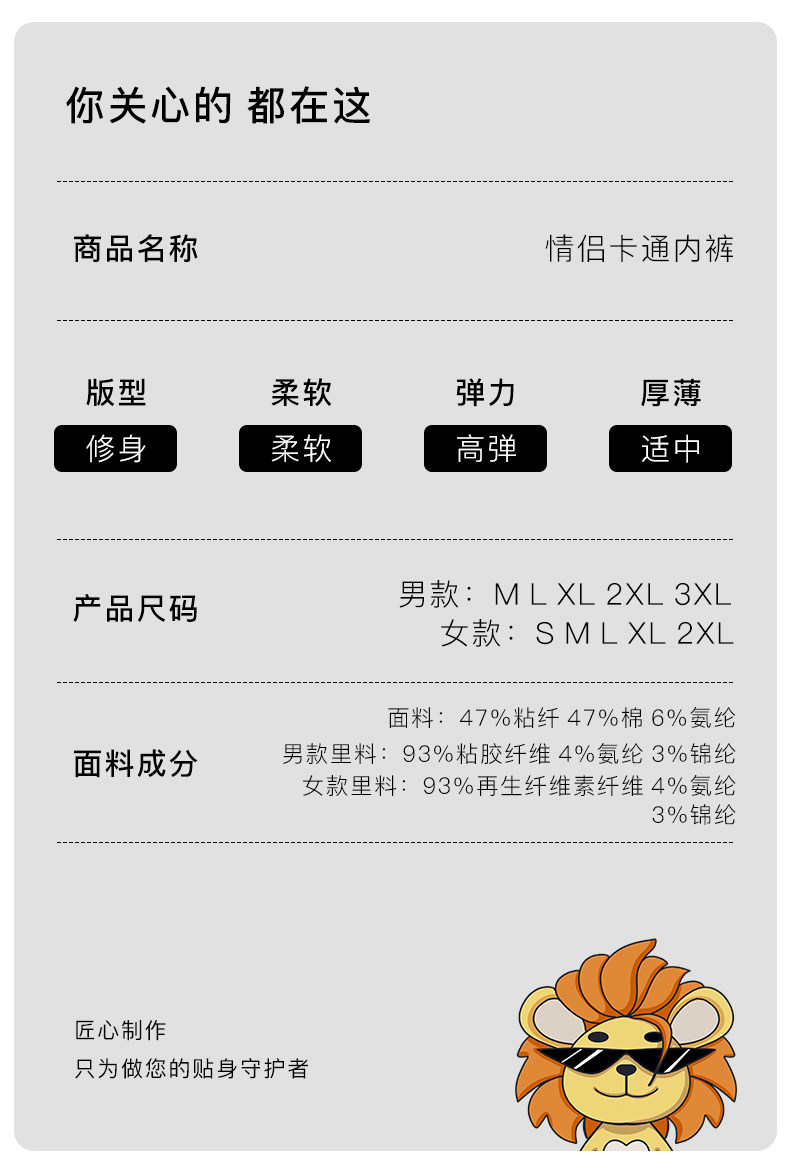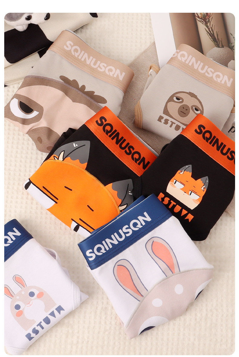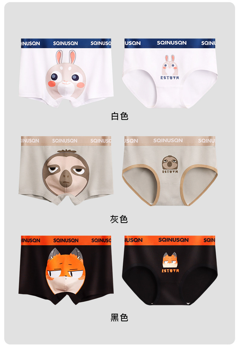 SQINUSQN/獅奇諾新款情侶內褲男士平角褲女三角內褲卡通動物底褲