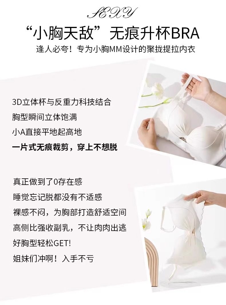小胸聚攏上托顯大內衣女收副乳防下垂無鋼圈透氣無痕美背文胸罩