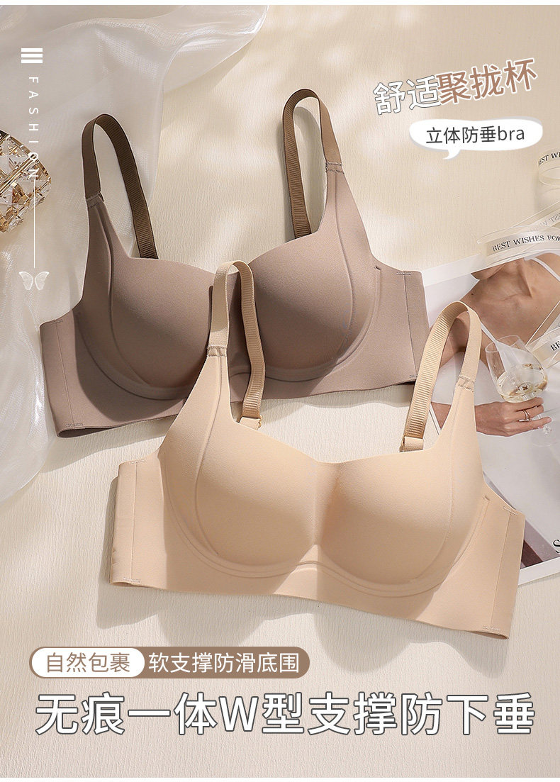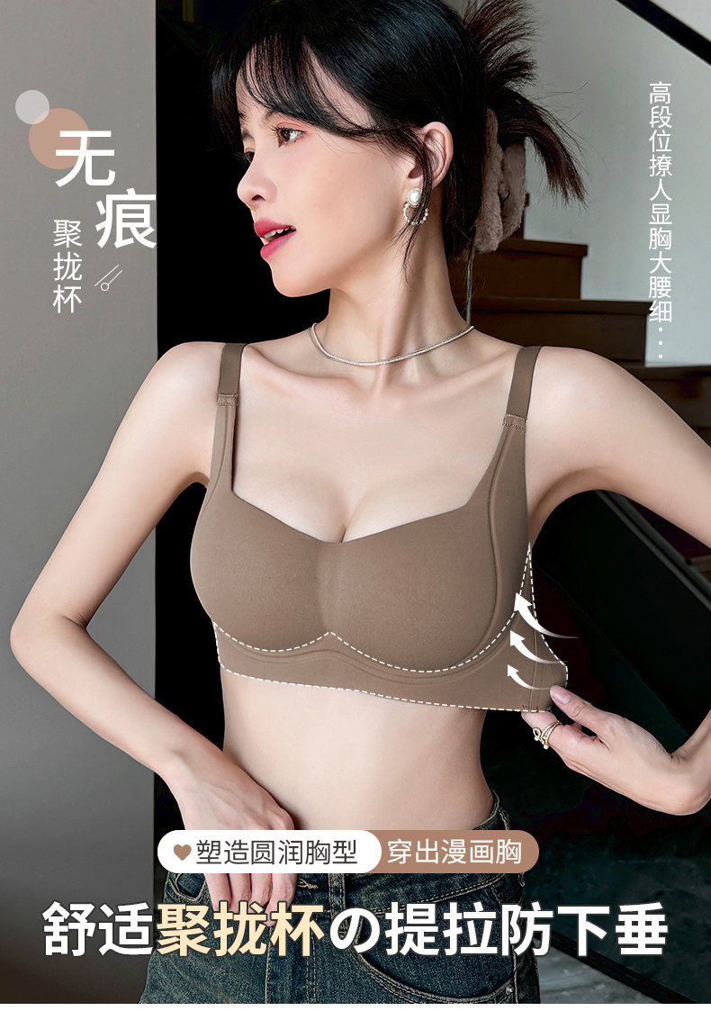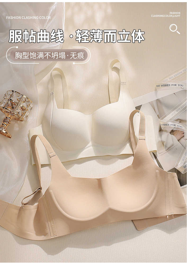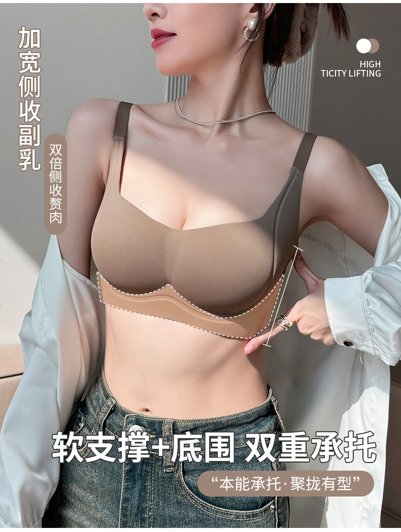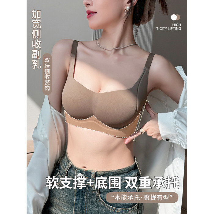 無痕雲感裸感內衣女聚攏小胸上托防下垂軟支撐無鋼圈收副乳文胸罩