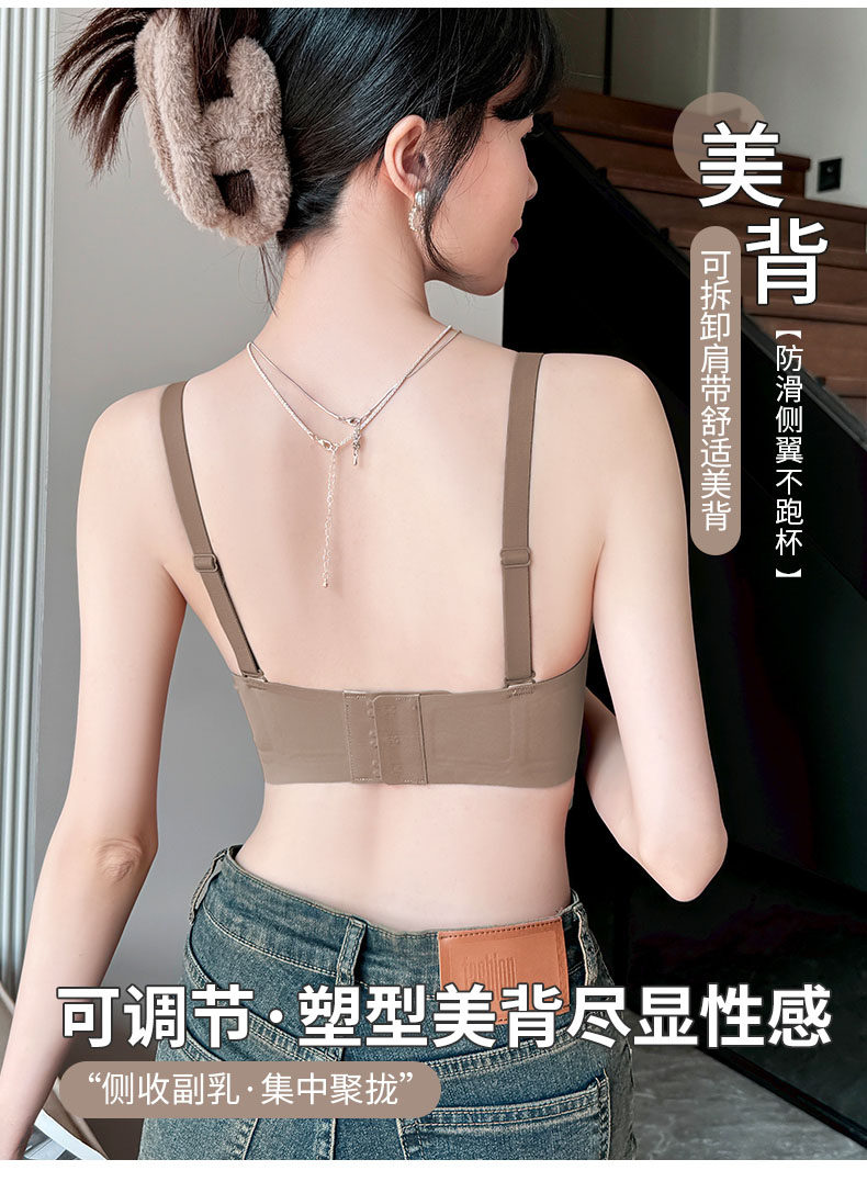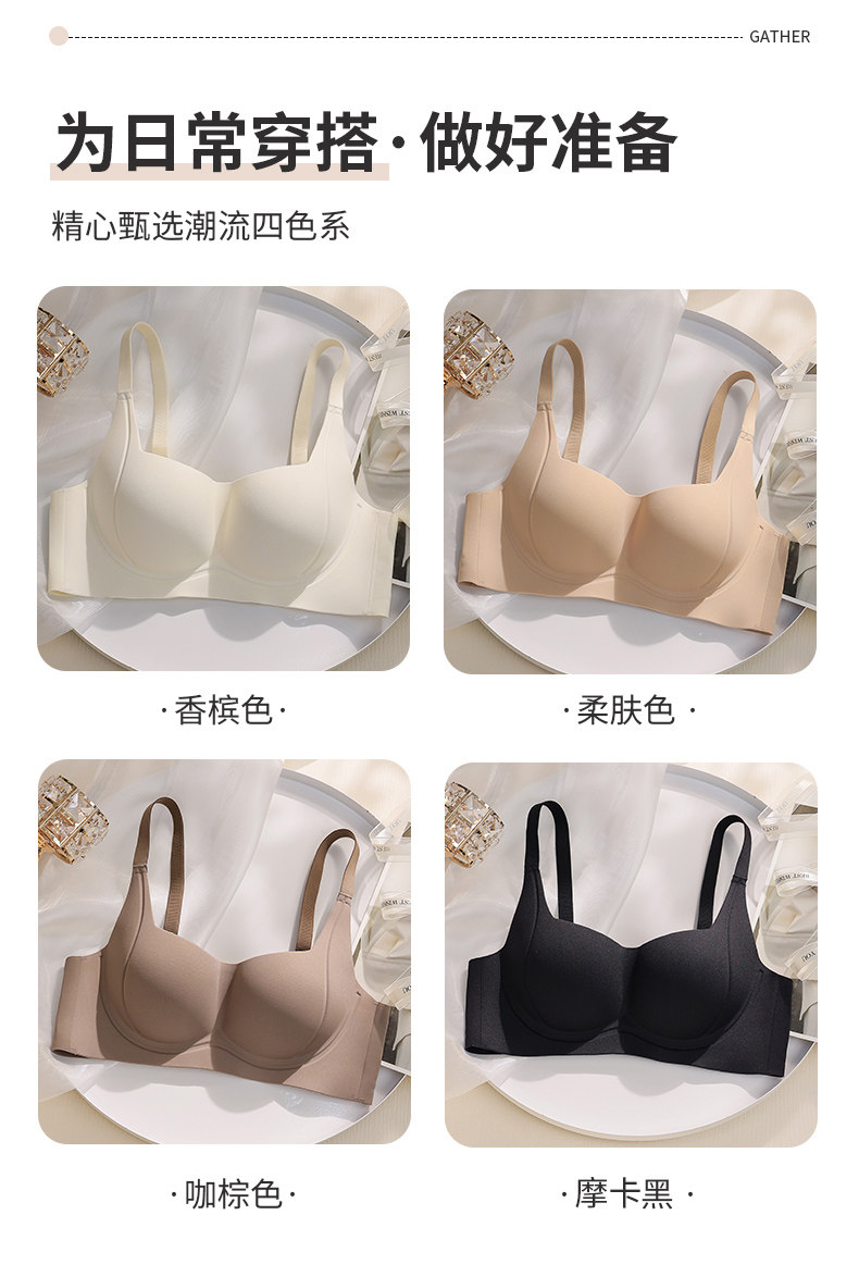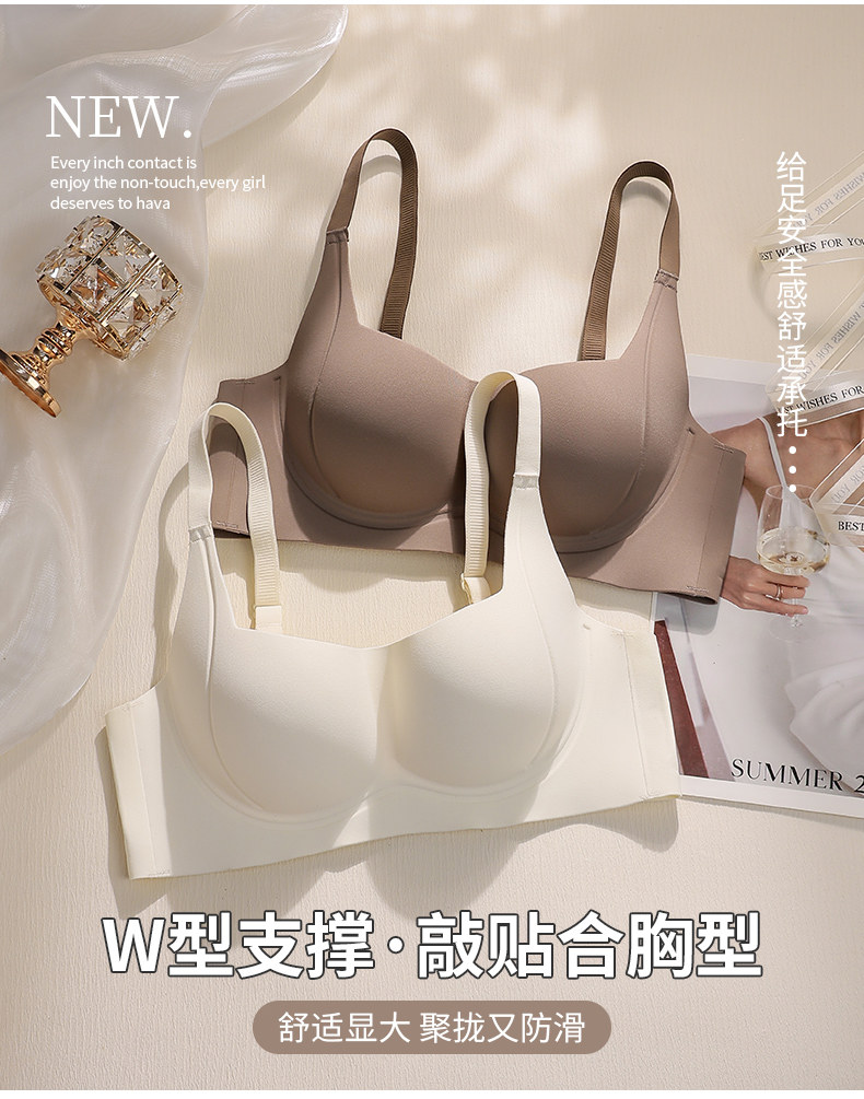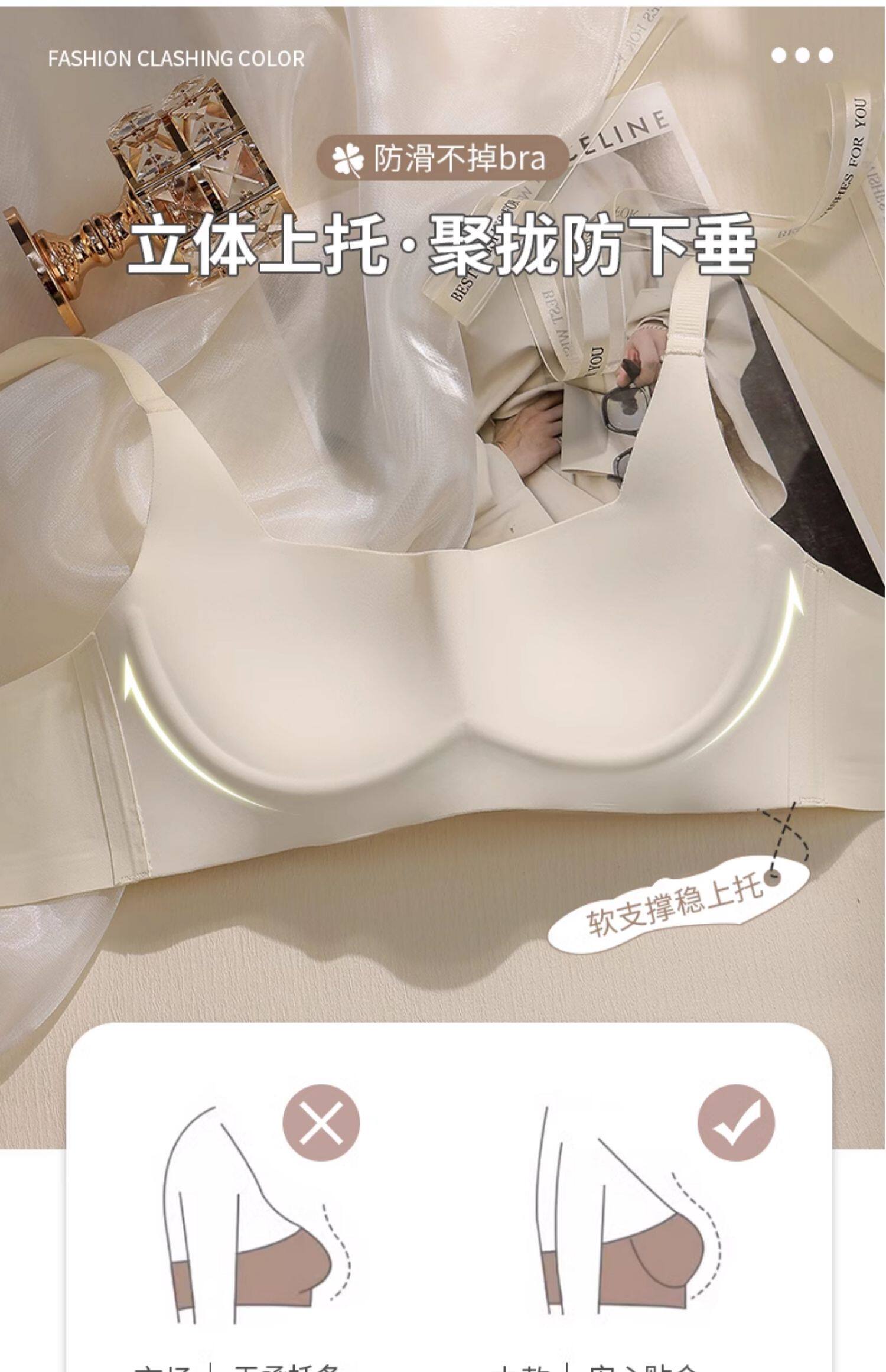 無痕雲感裸感內衣女聚攏小胸上托防下垂軟支撐無鋼圈收副乳文胸罩