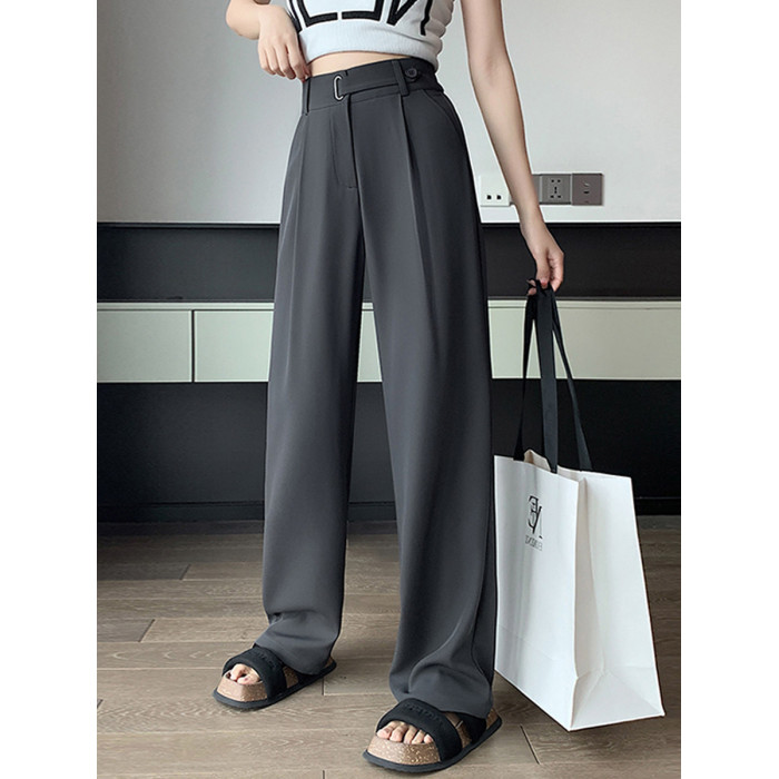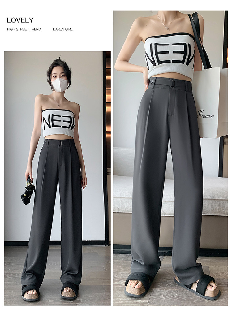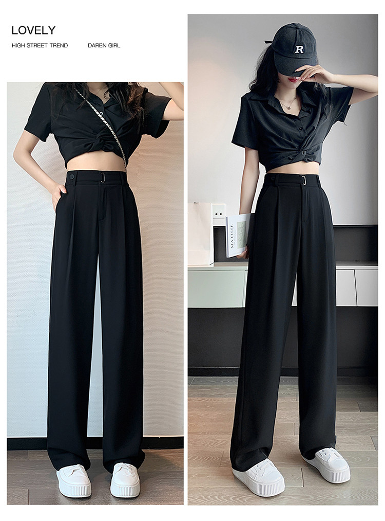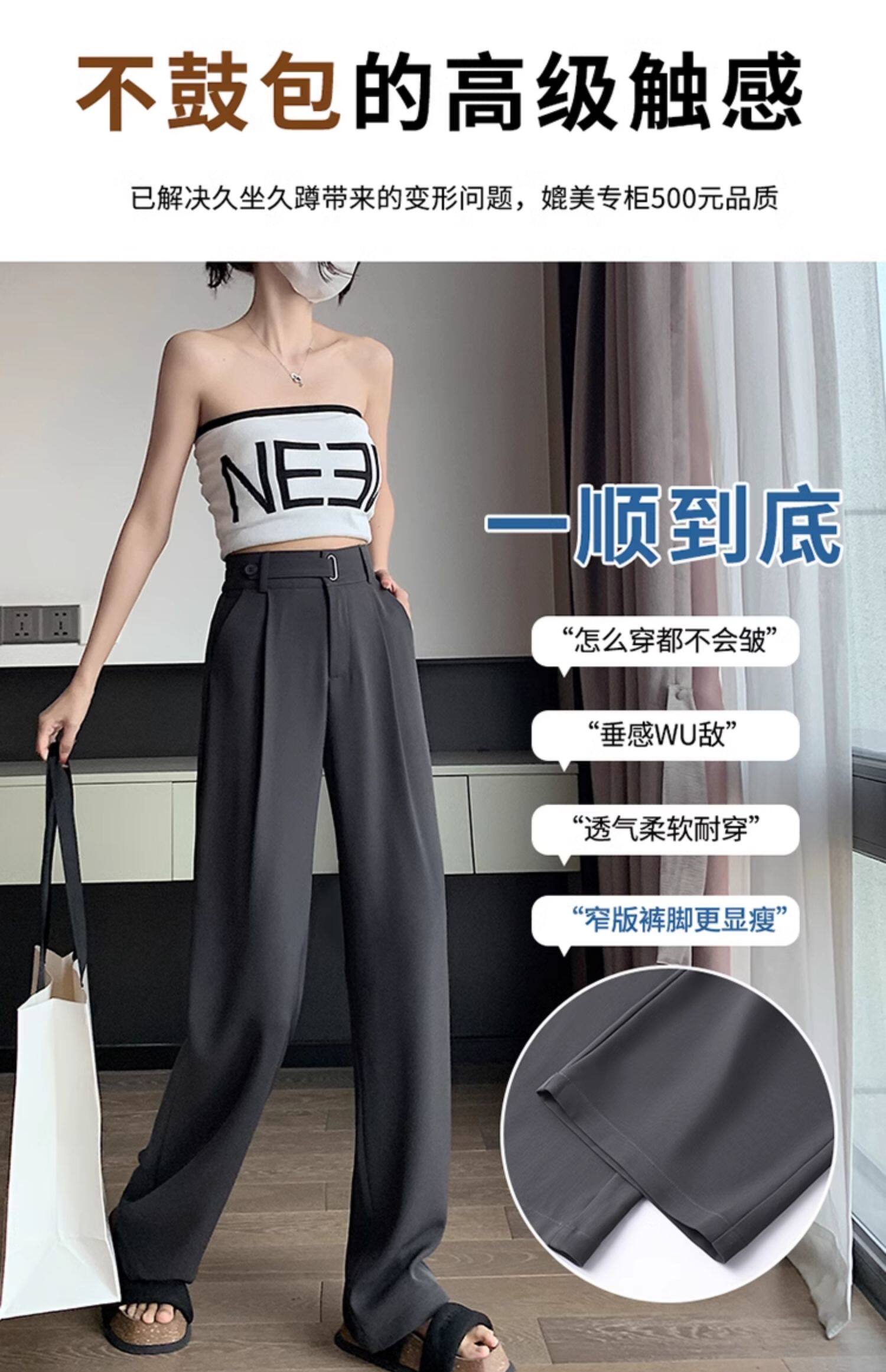 高腰垂感西裝褲黑色長褲女2026春季新款通勤西褲休閒拖地褲濶腿褲