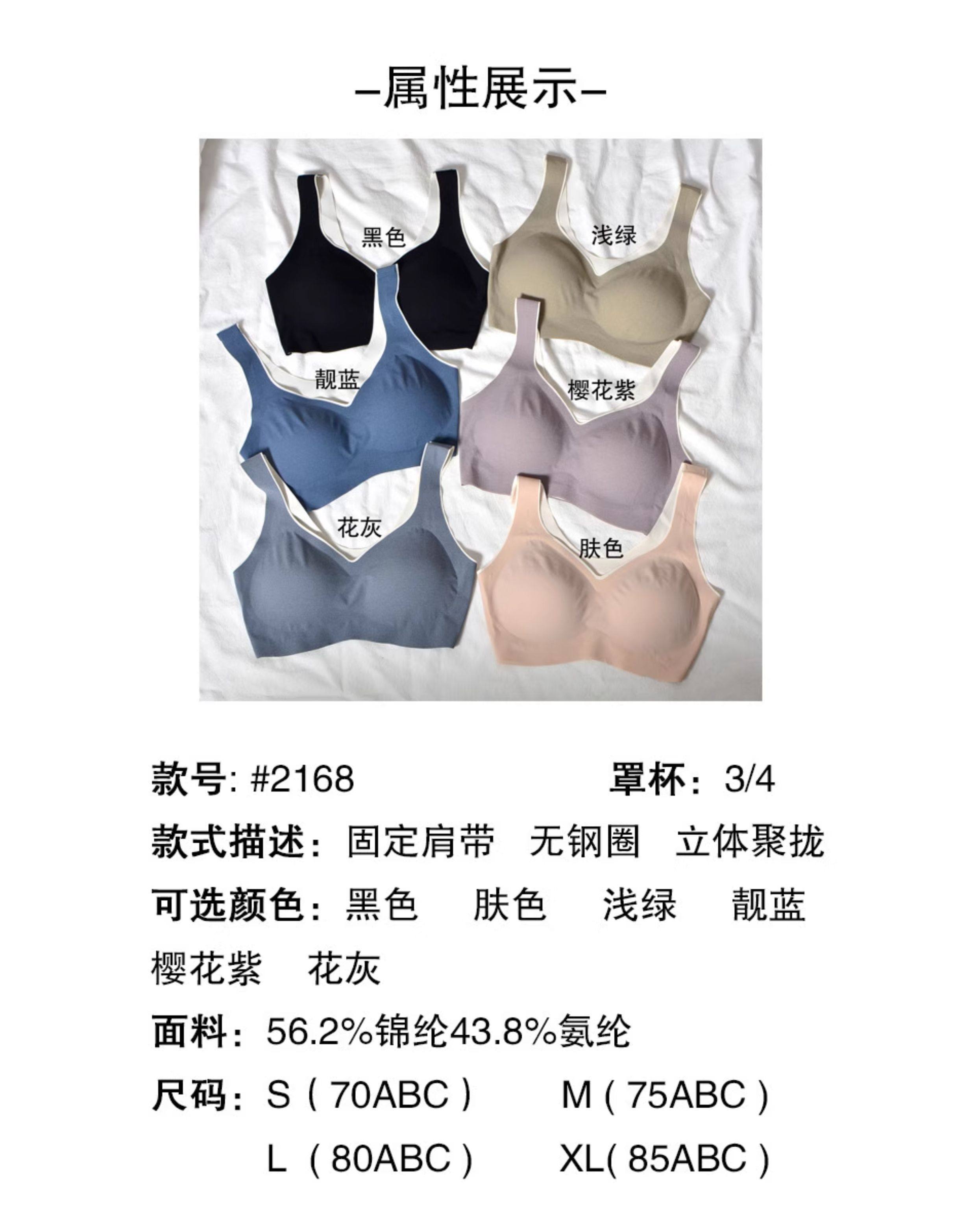 新款尚品無痕SP2168一片式無鋼圈文胸抽竪條拼色安心運動睡眠內衣