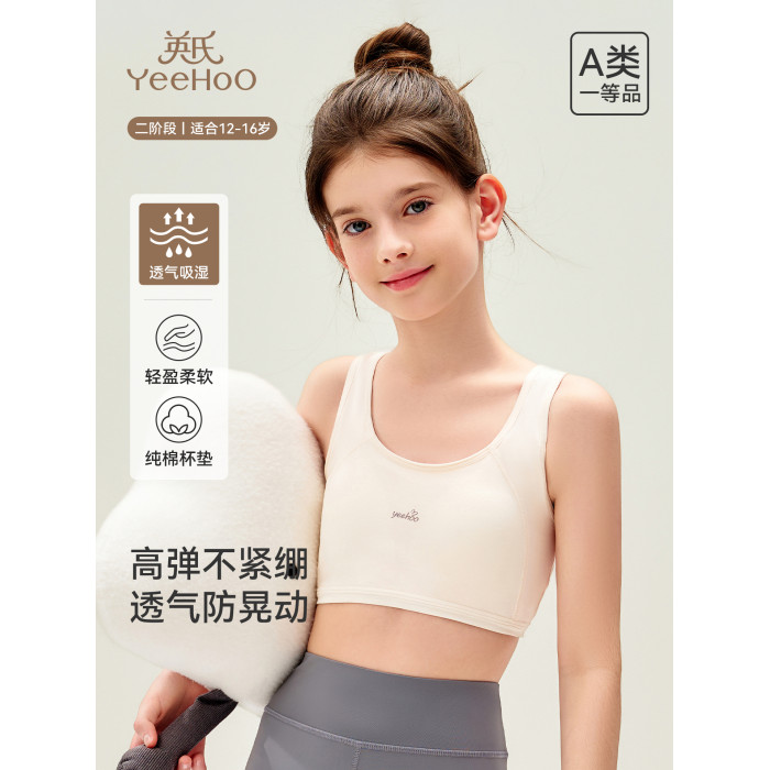英氏純棉少女內衣小女孩發育期文胸女童青春期高彈運動背心二階段