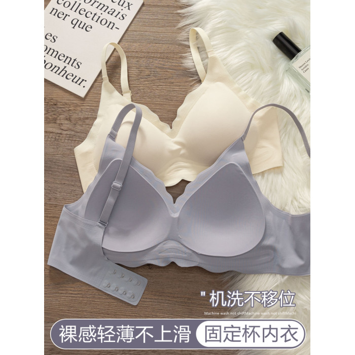 無痕內衣女夏季薄款小胸透氣無鋼圈大胸顯小聚攏防下垂固定杯文胸