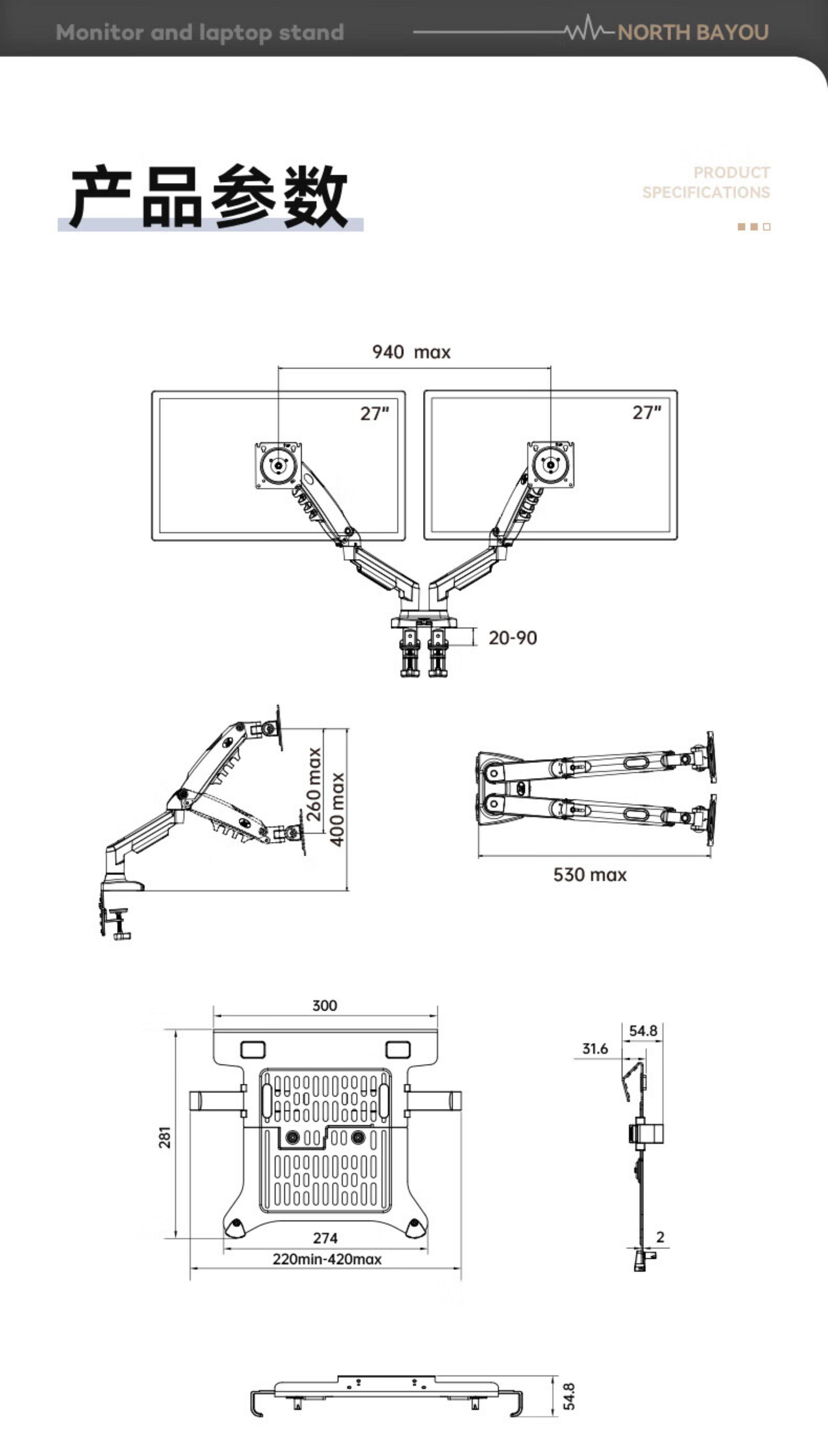 NB 雙筆電支架10-17英寸雙屏顯示器支架臂兩個筆電升降增高架