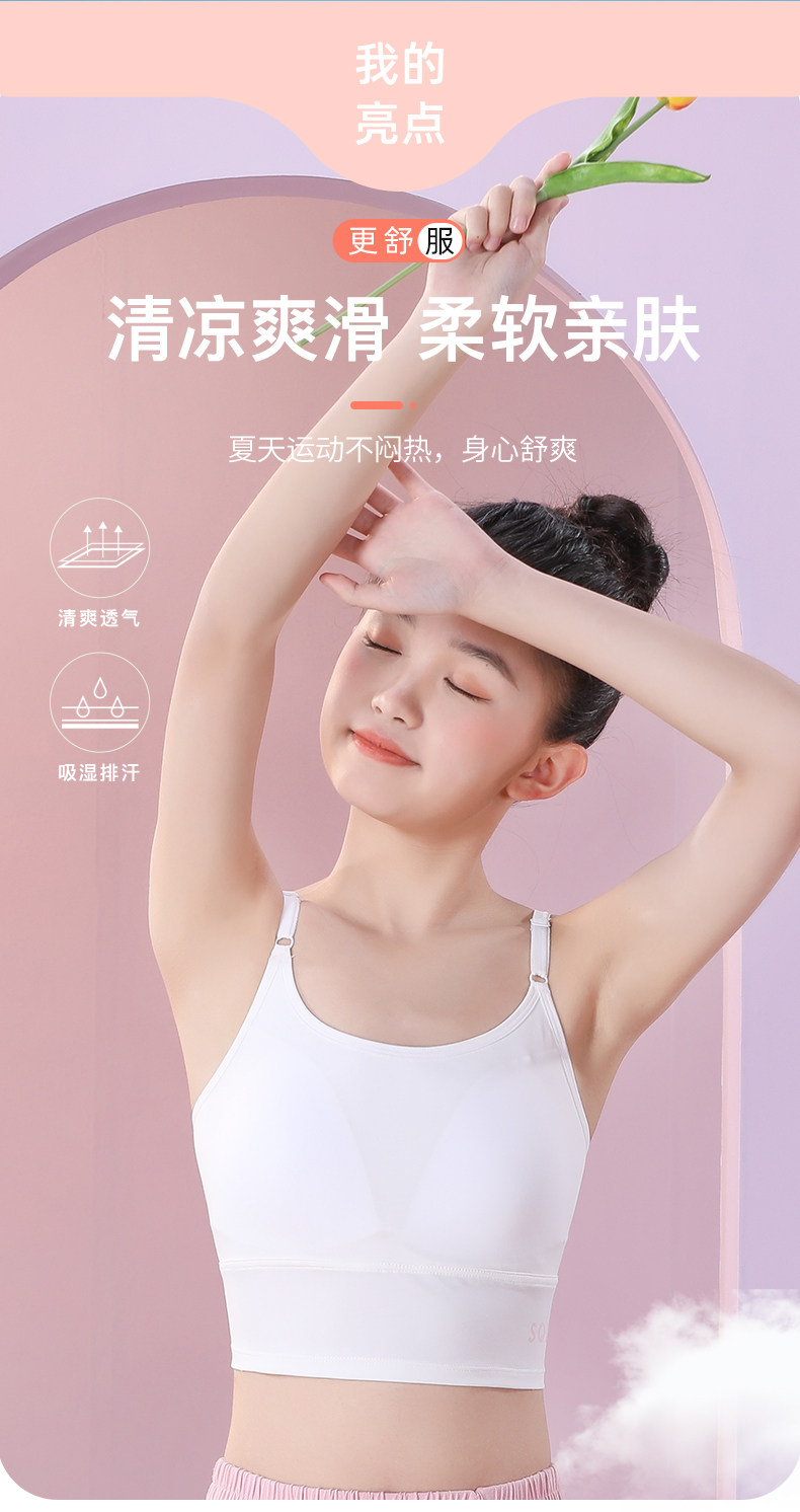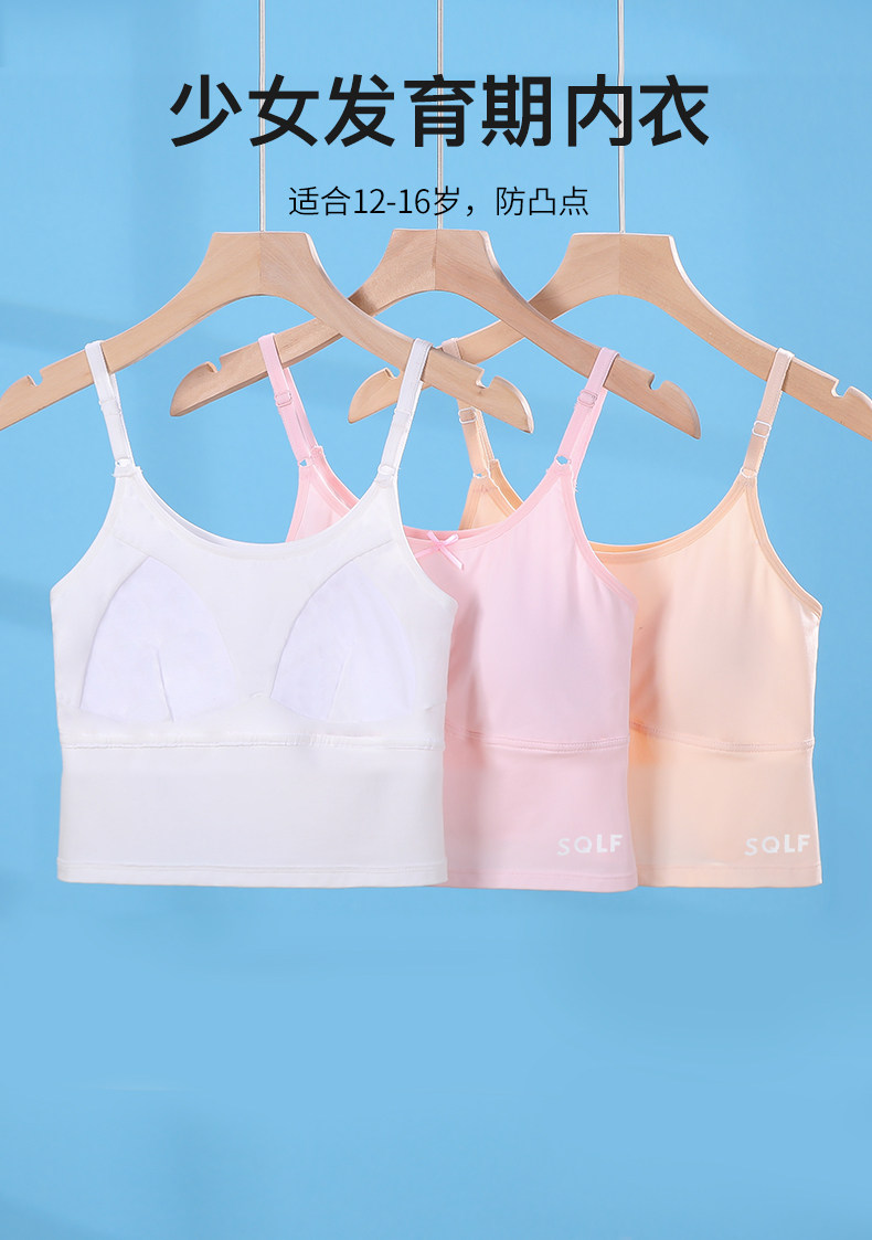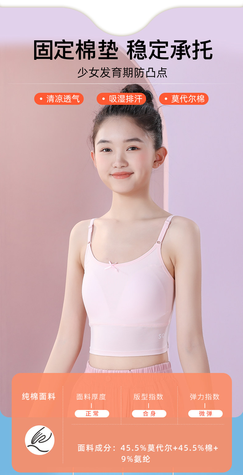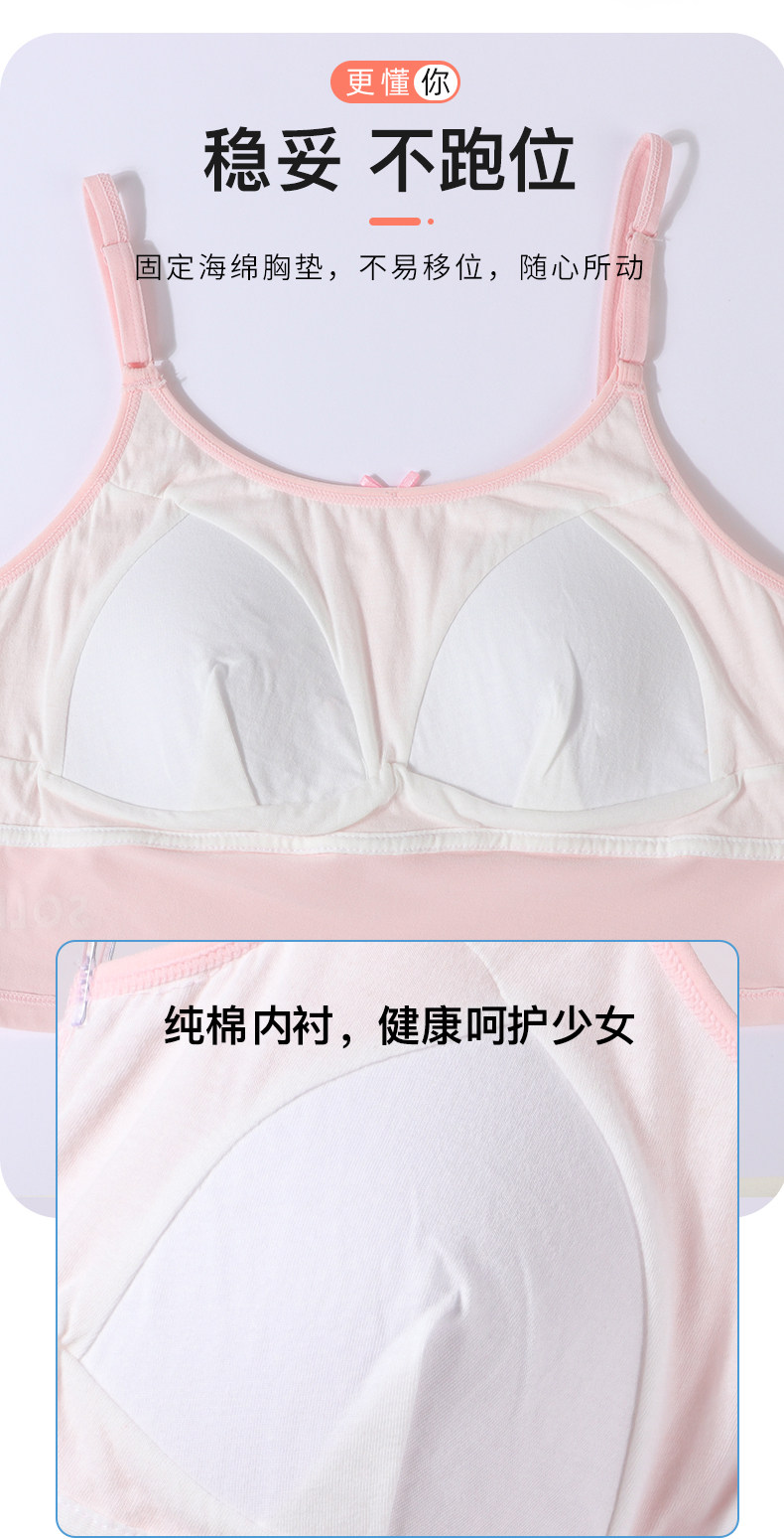 女大童吊帶內衣發育期少女二階段文胸固定杯女孩背心帶胸墊夏季薄