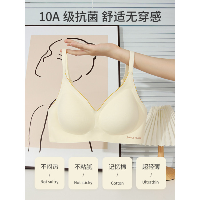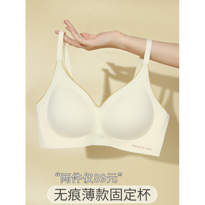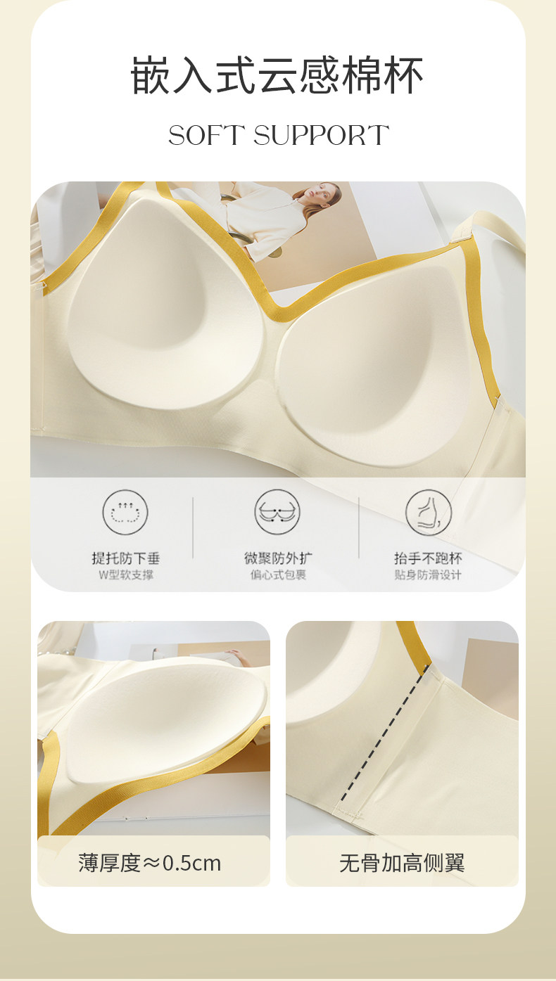 雲朵無痕內衣女士薄款小胸聚攏一片式隱形固定杯防下垂文胸罩秋季