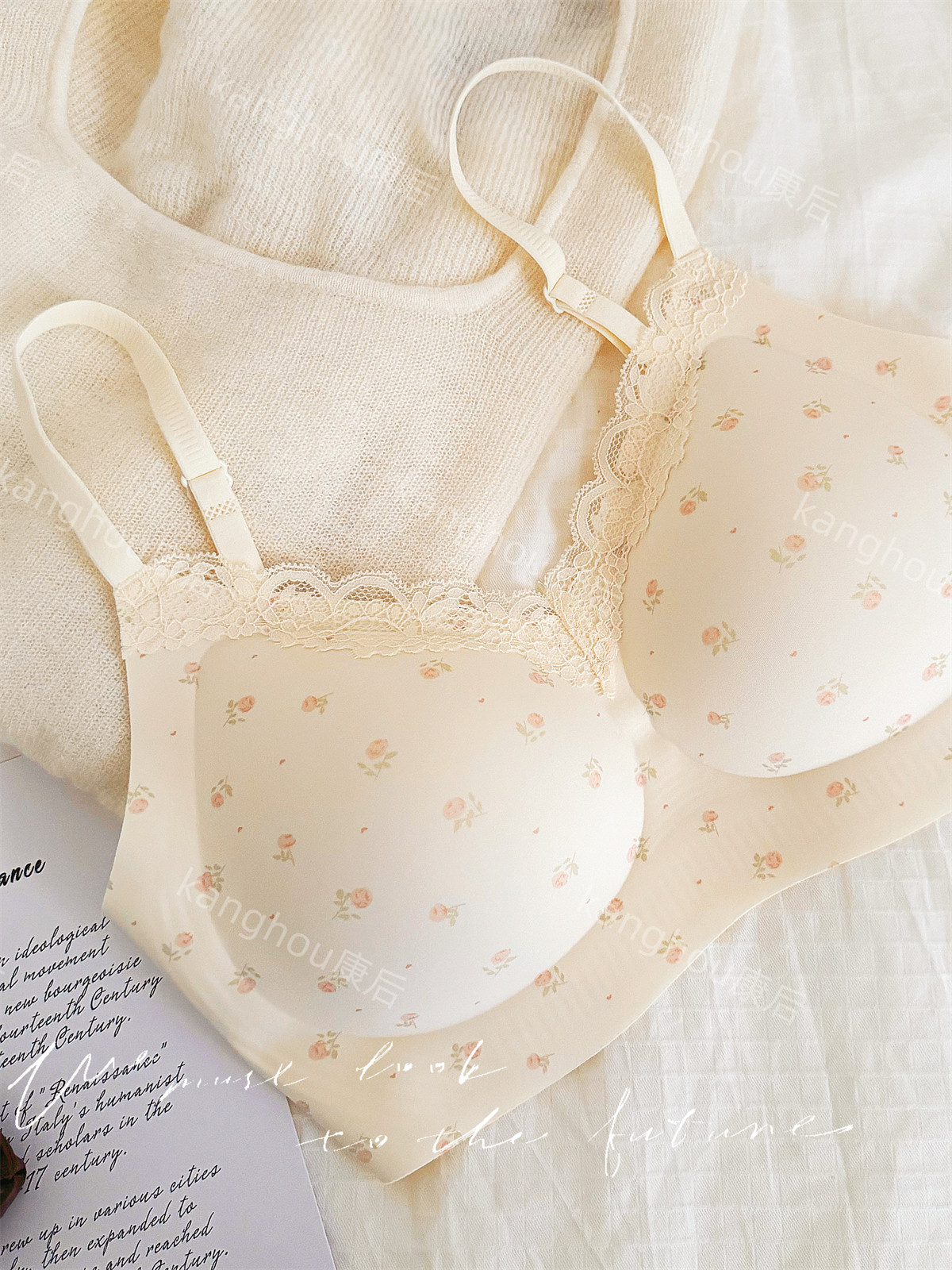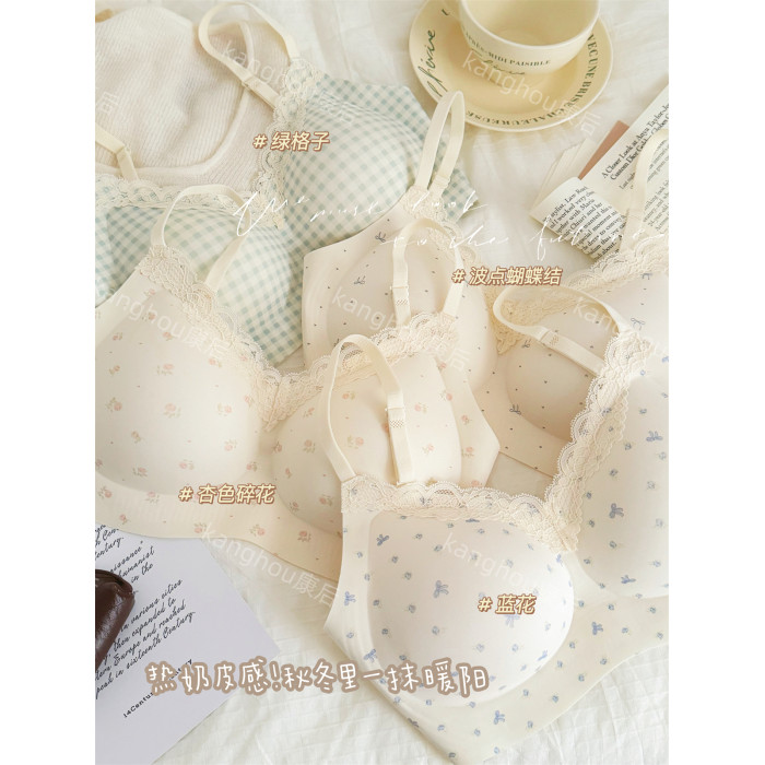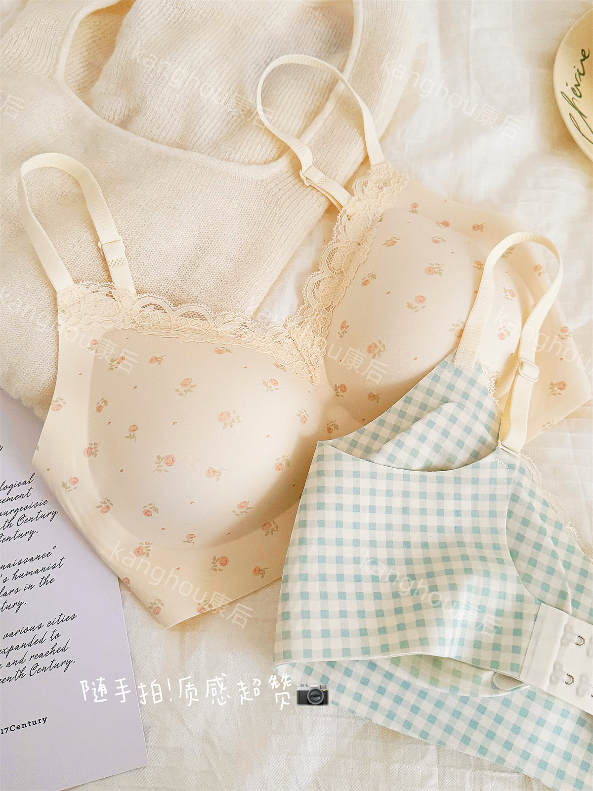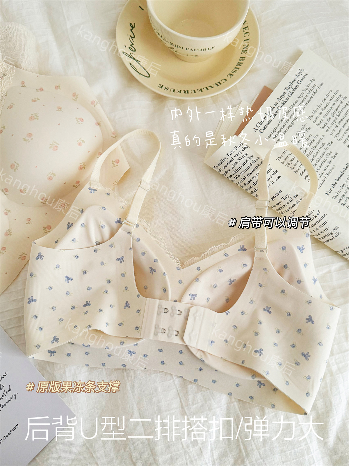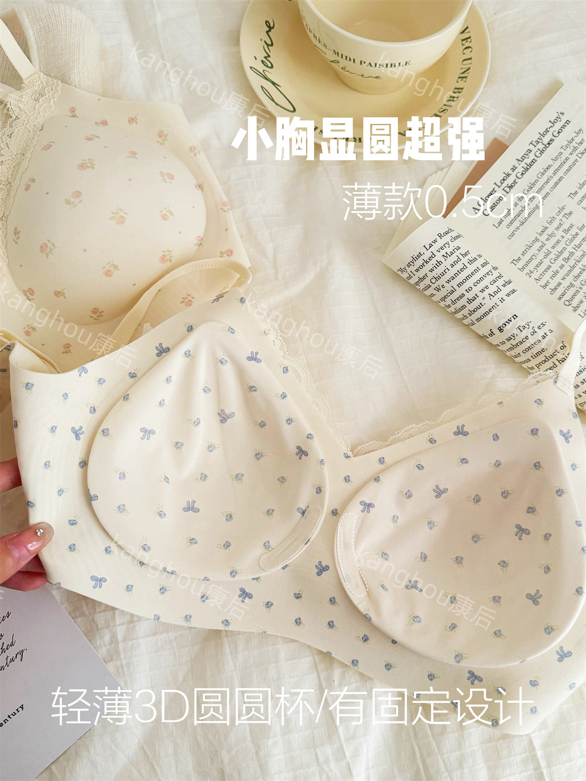 熱奶皮碎花 無痕內衣女小胸聚攏顯圓無鋼圈上托果凍條舒適文胸罩