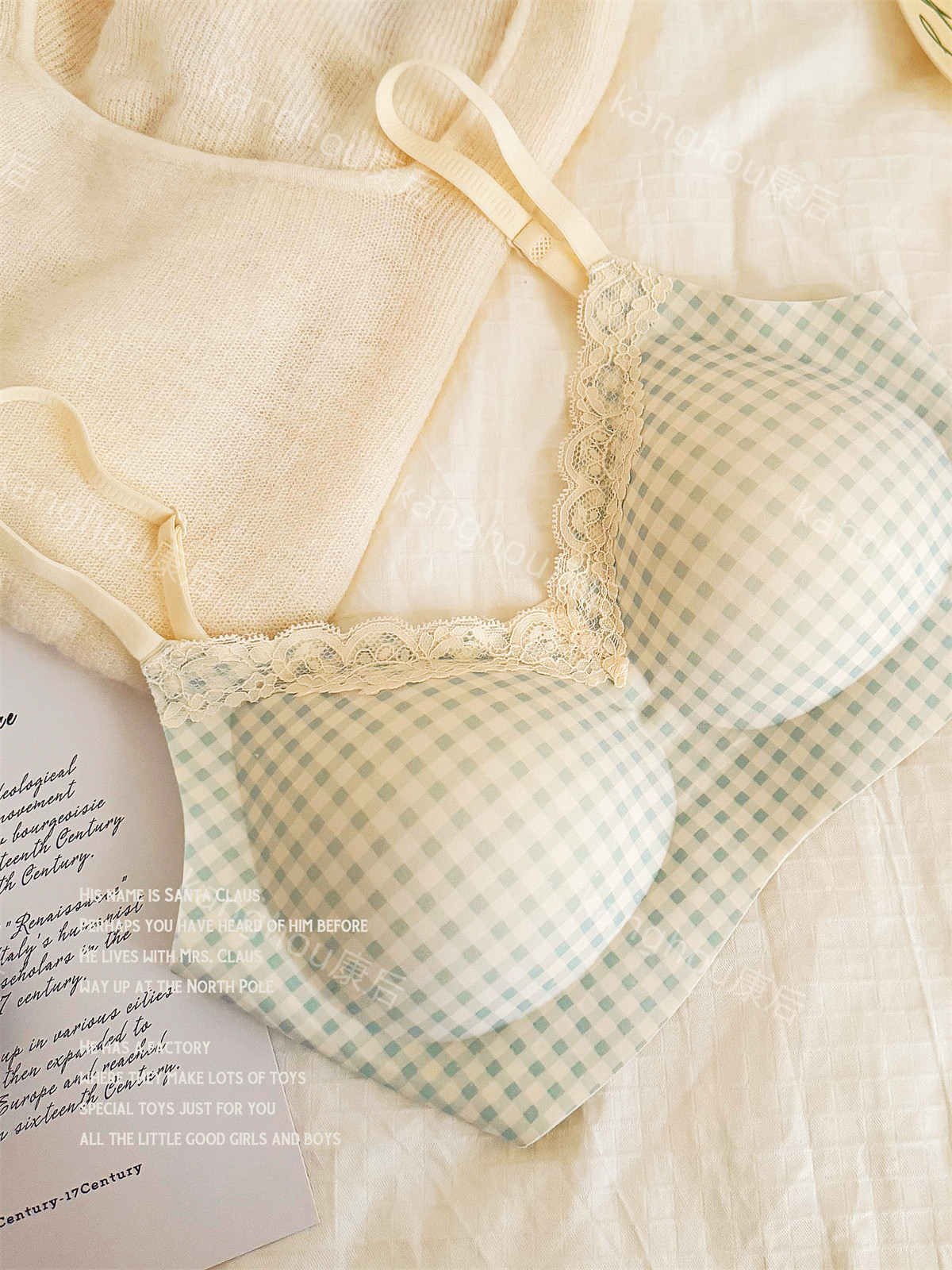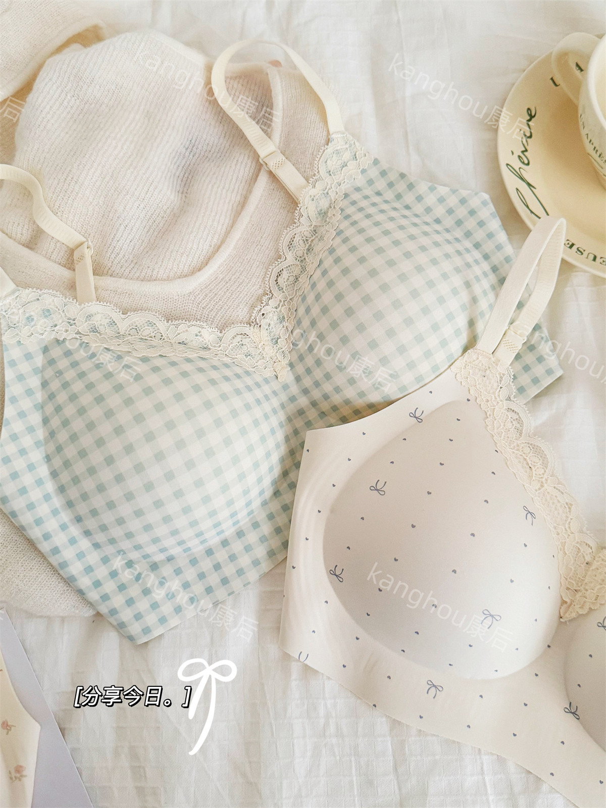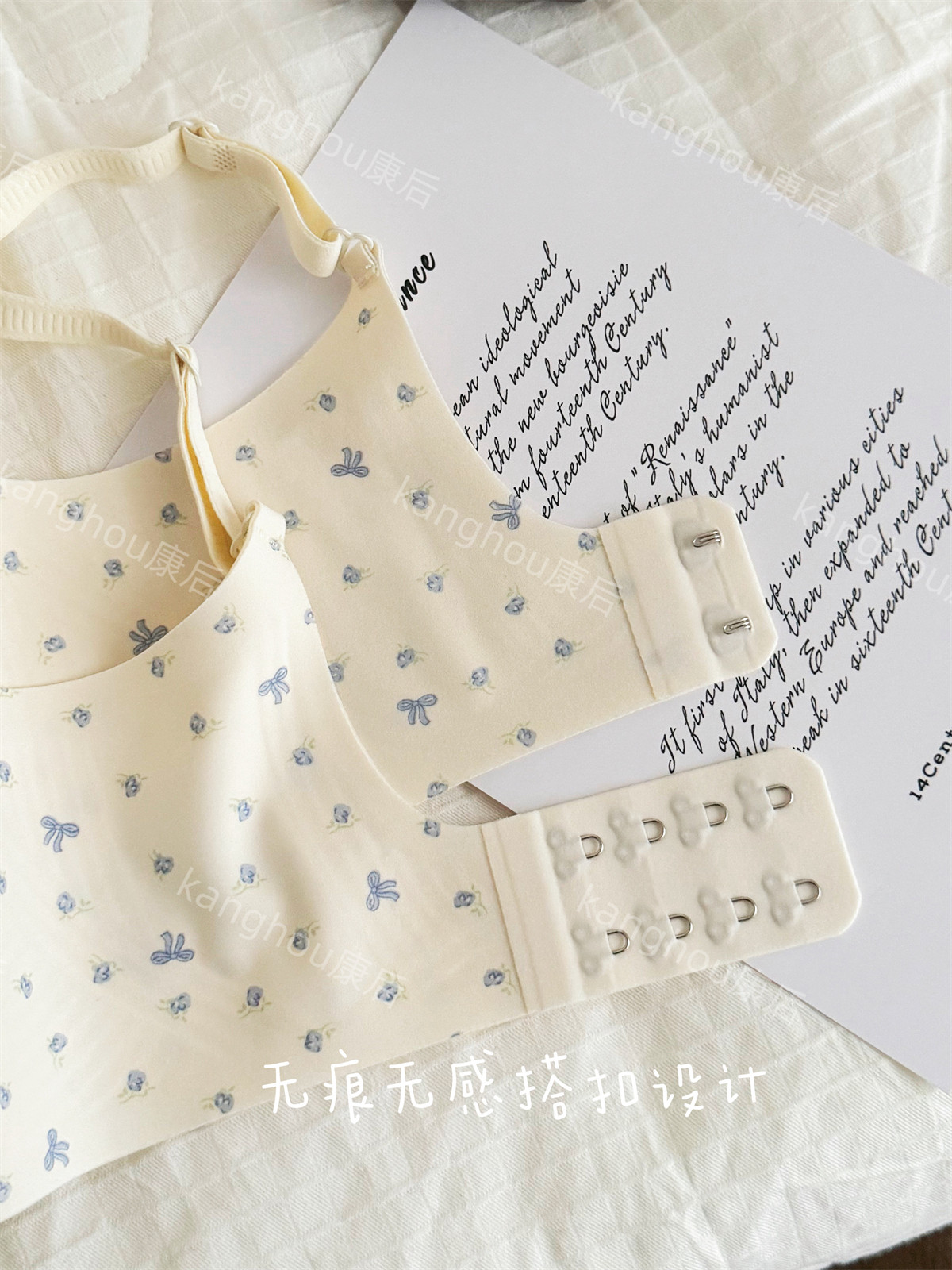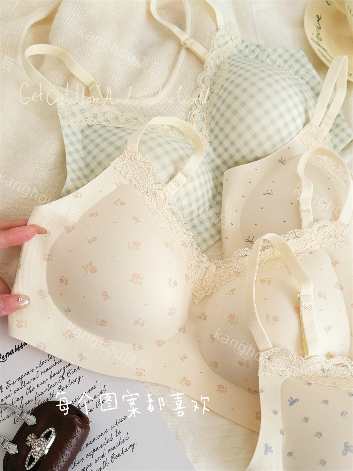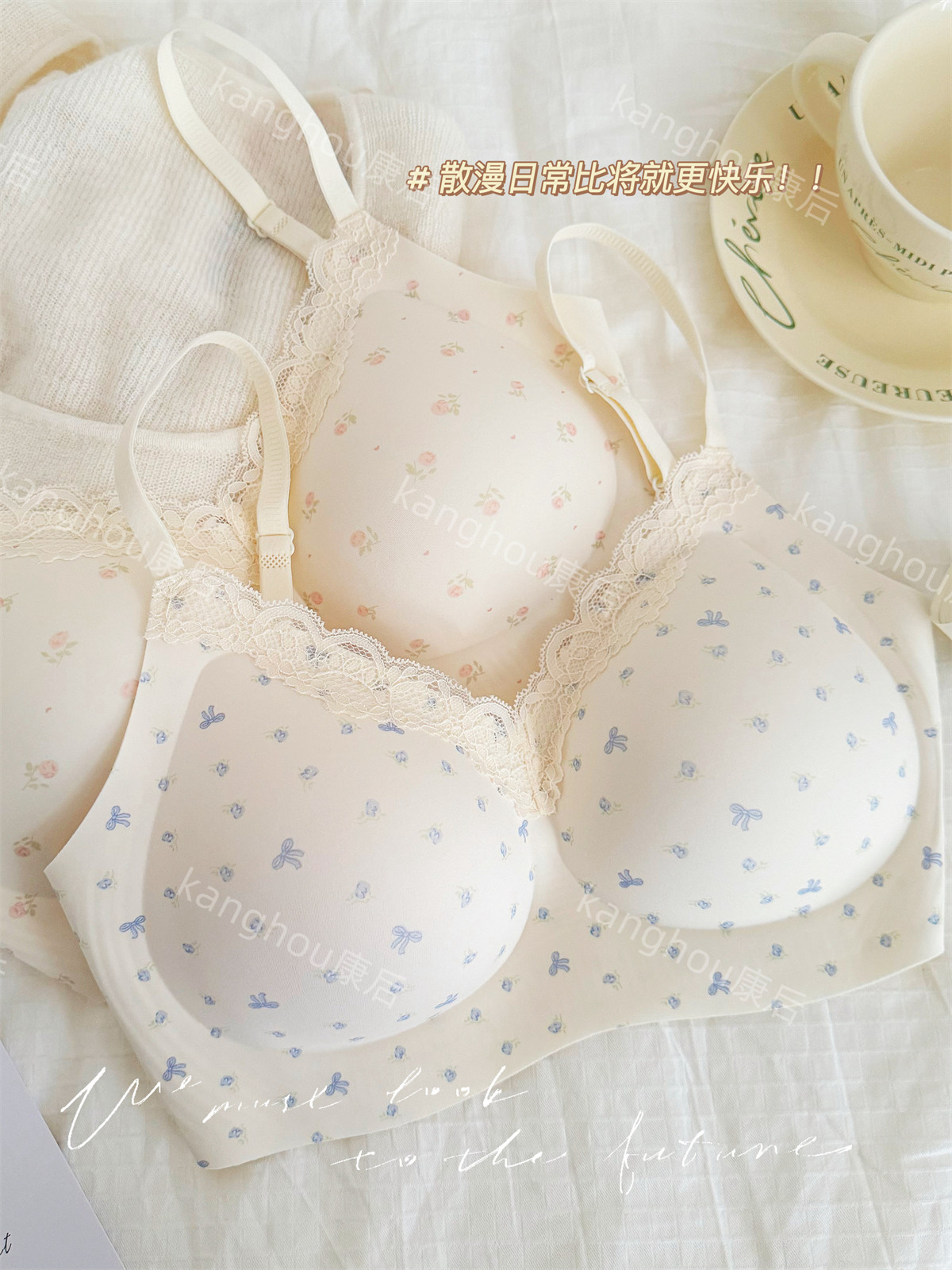 熱奶皮碎花 無痕內衣女小胸聚攏顯圓無鋼圈上托果凍條舒適文胸罩