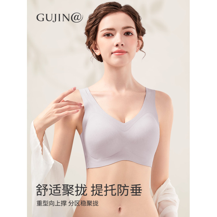 古今@大碼無痕內衣女大胸顯小背心式運動防下垂薄款無鋼圈文胸罩