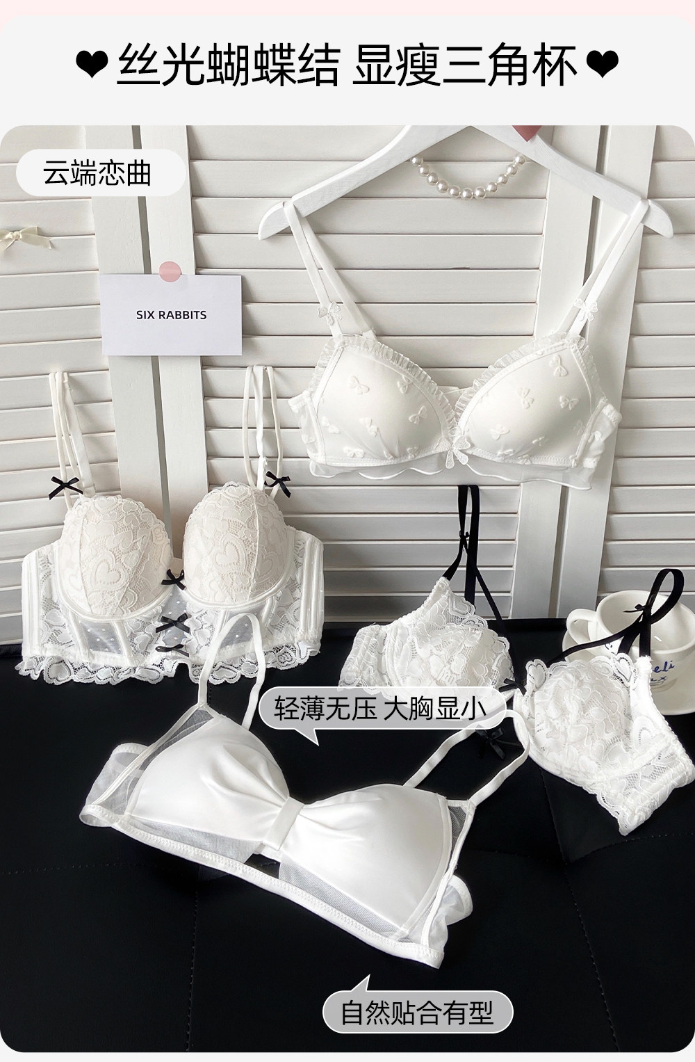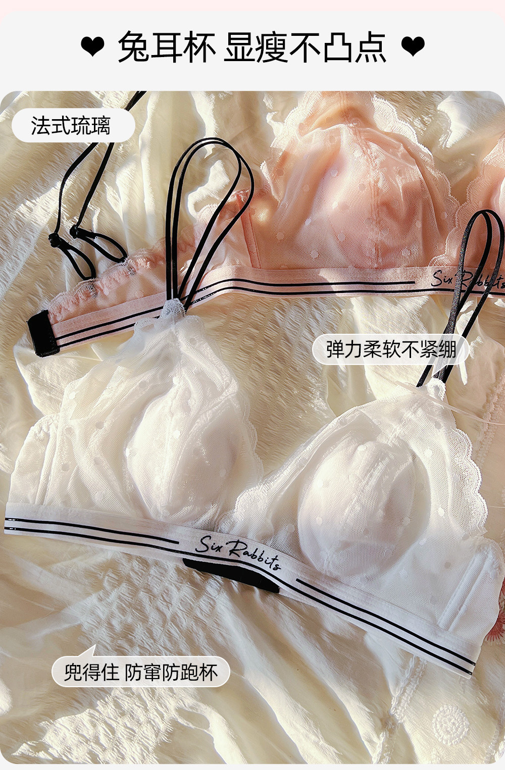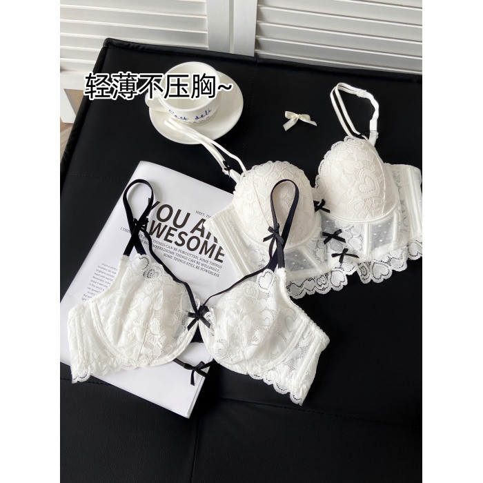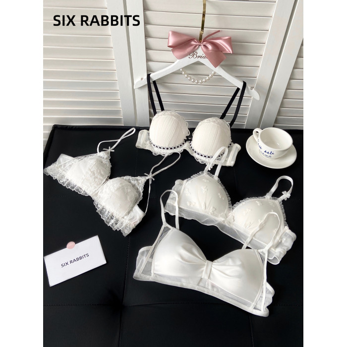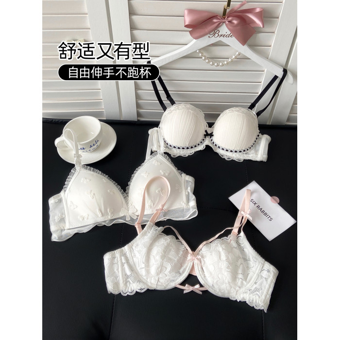 六隻兔子蕾絲內衣女薄款顯瘦胸罩收副乳防外擴白月光合集文胸套裝