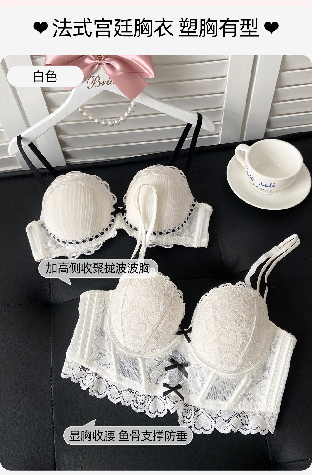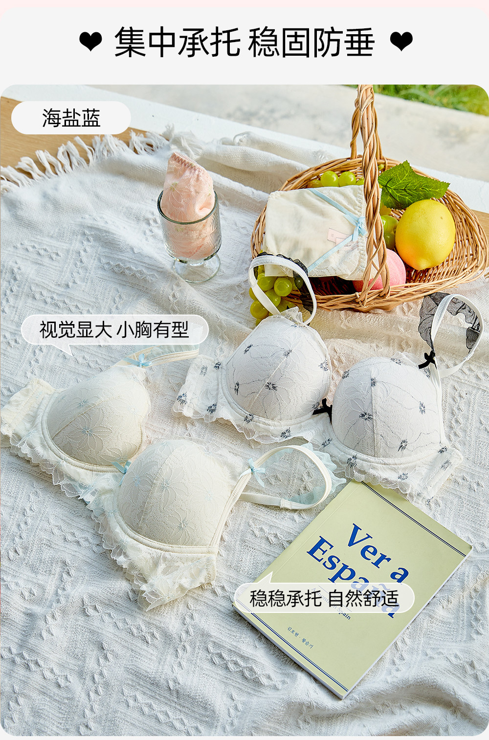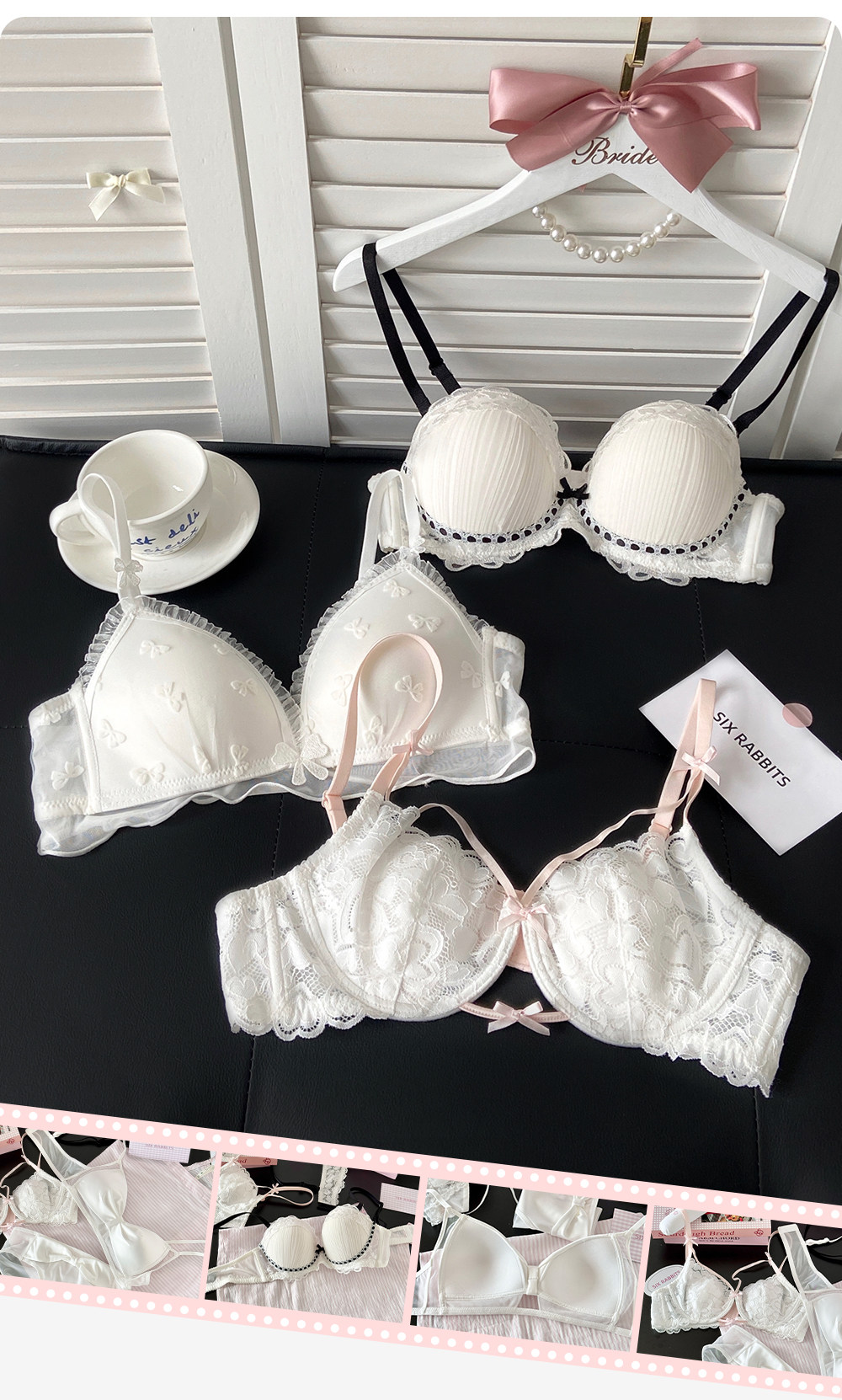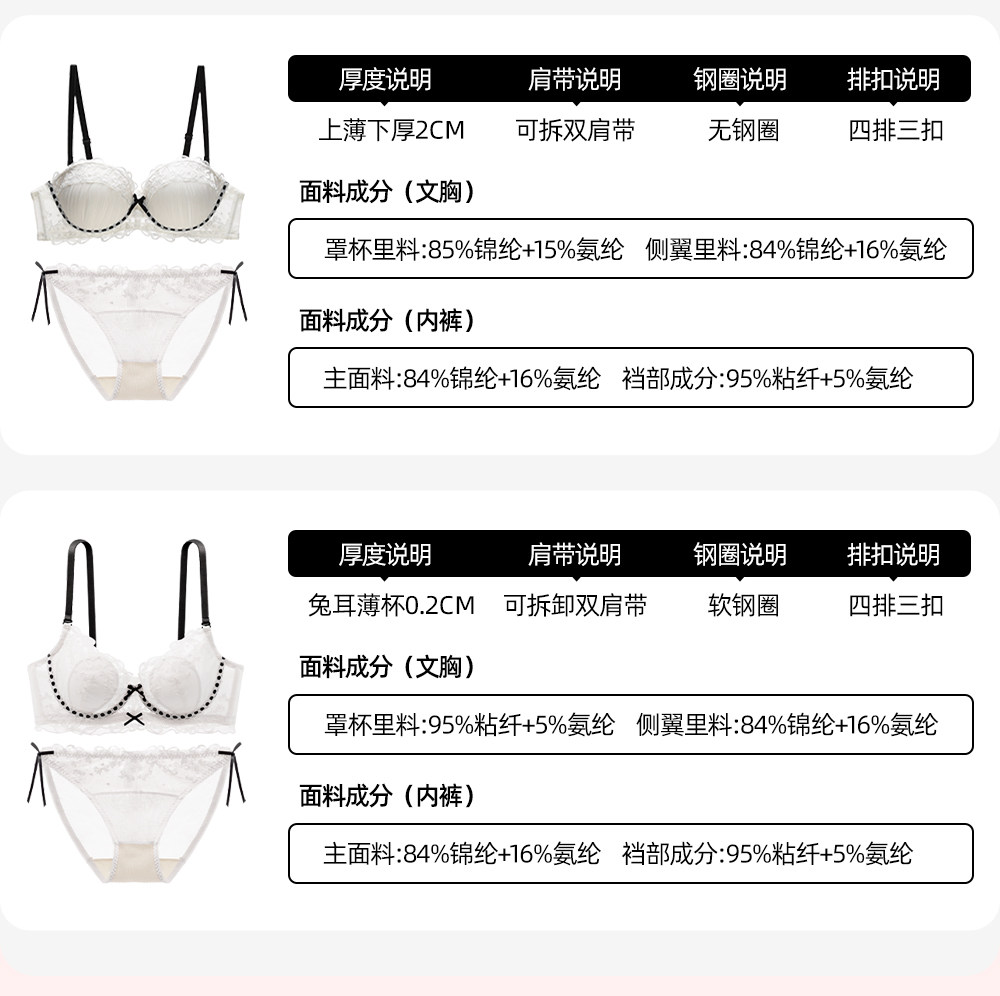 六隻兔子蕾絲內衣女薄款顯瘦胸罩收副乳防外擴白月光合集文胸套裝