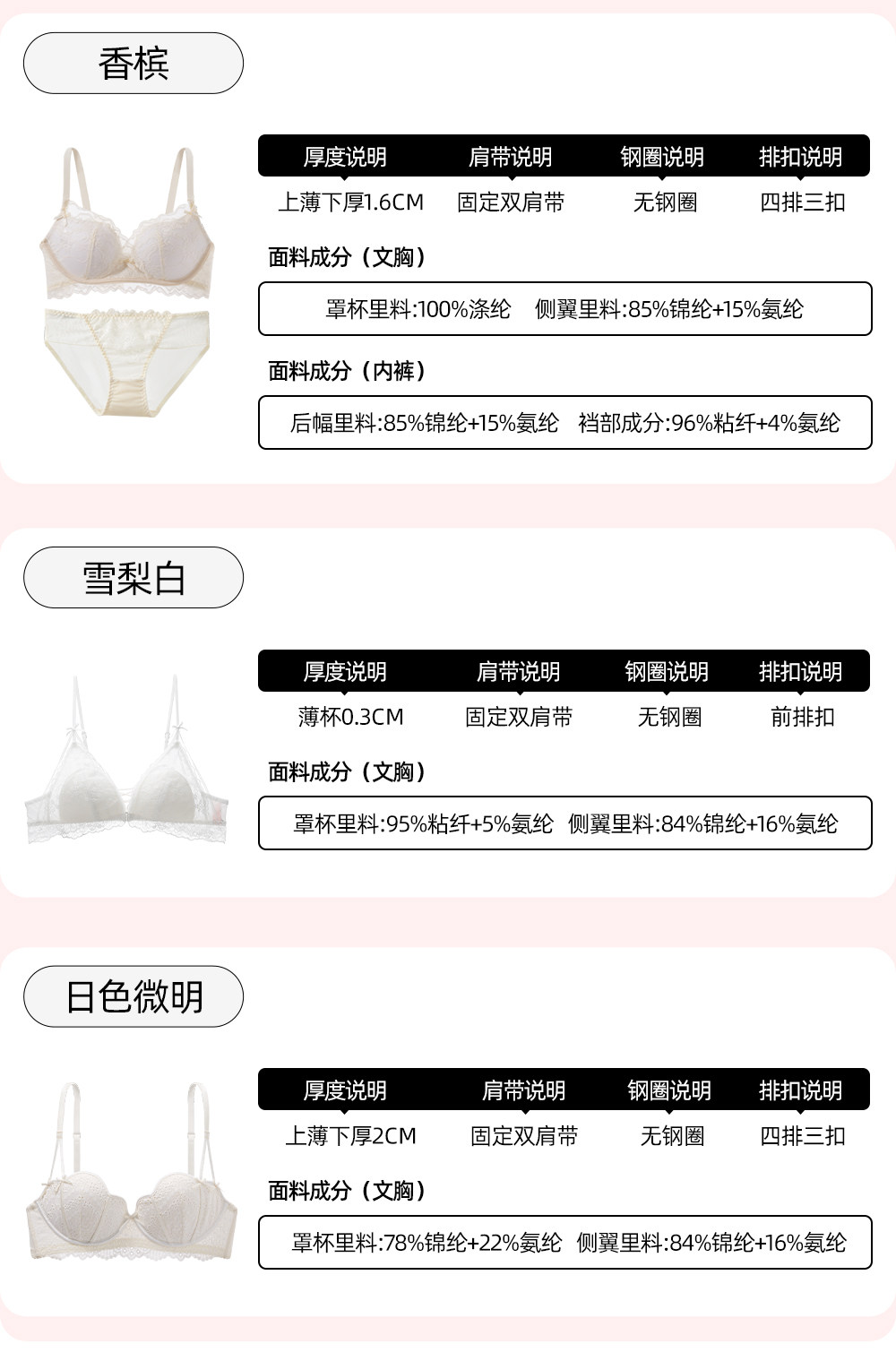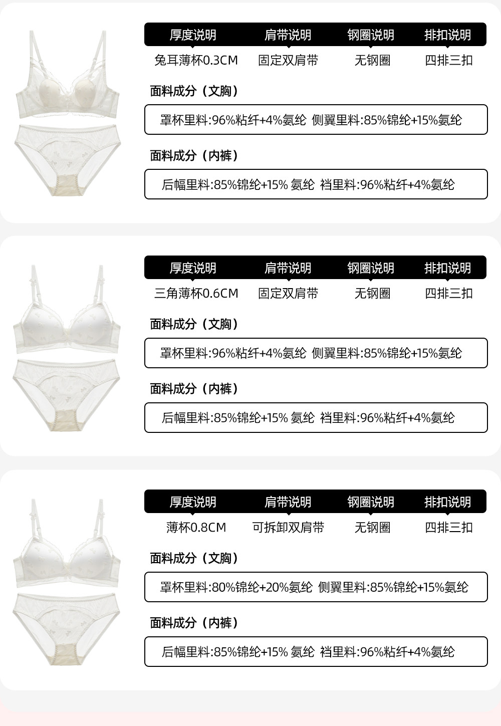 | 罩杯裡料成分含量 | 81%(含)-95%(含) |