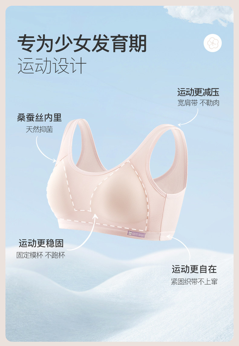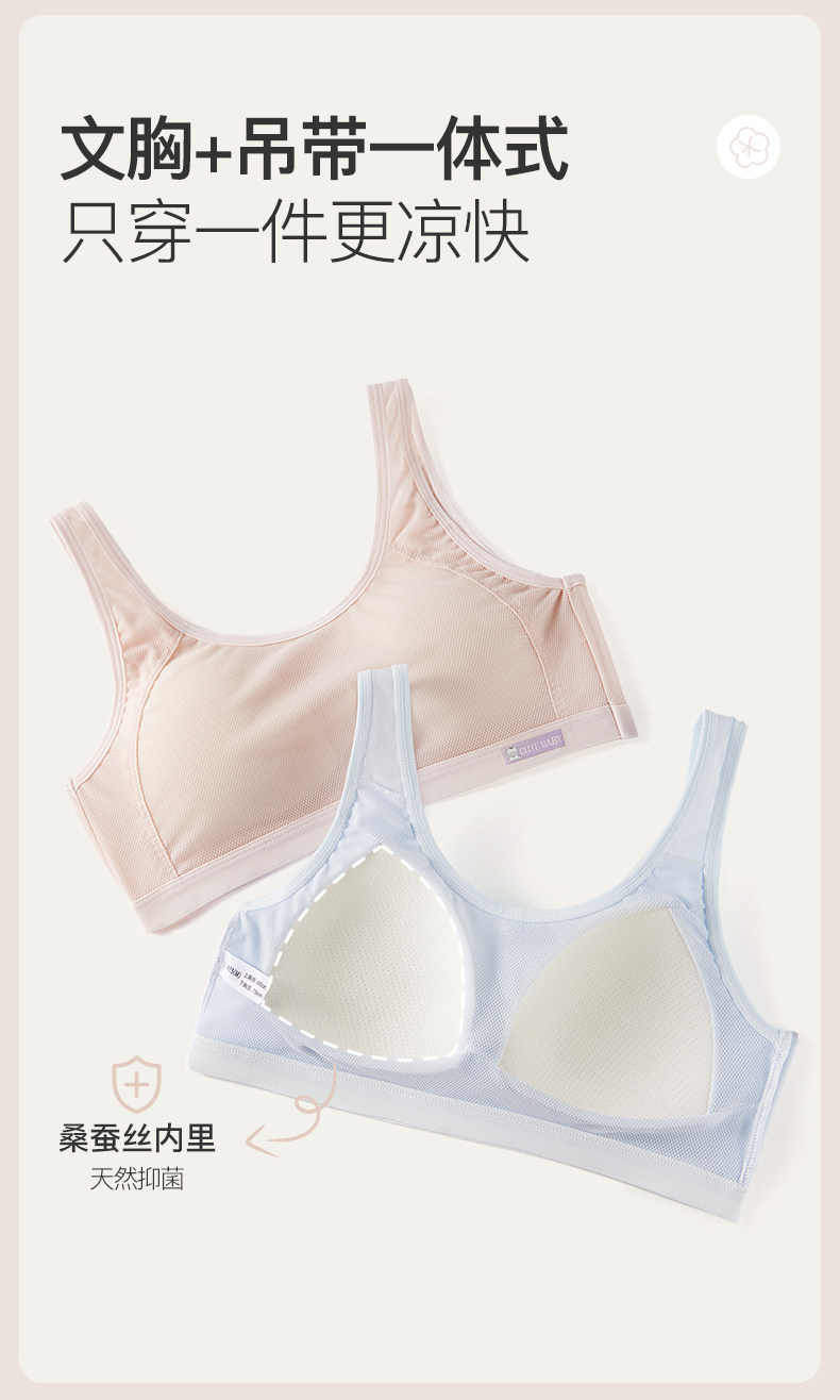 都市麗人少女運動內衣兒童發育期初高中學生透氣薄款蠶絲背心文胸