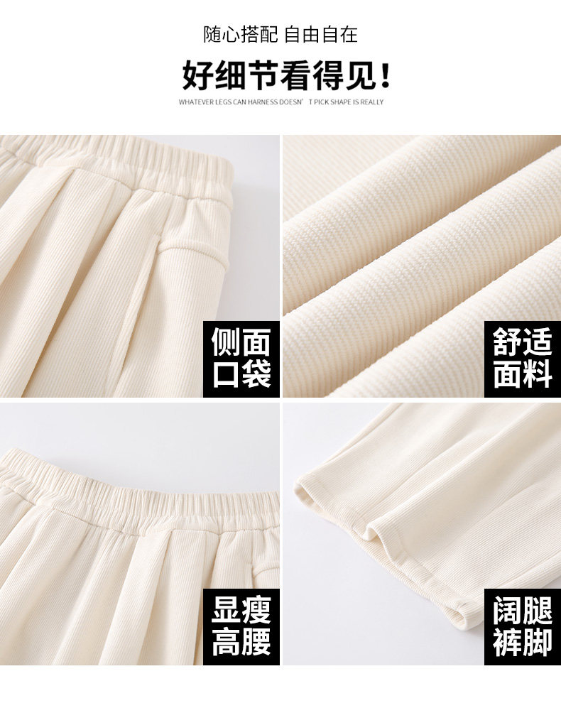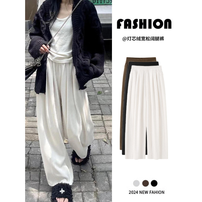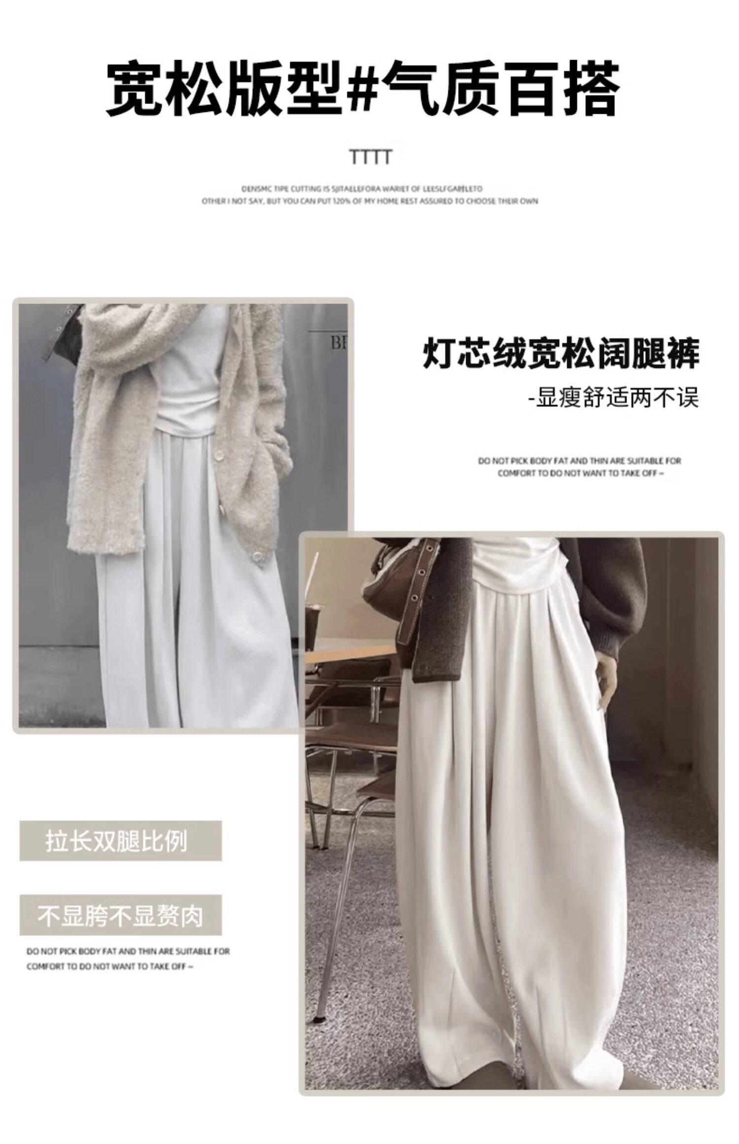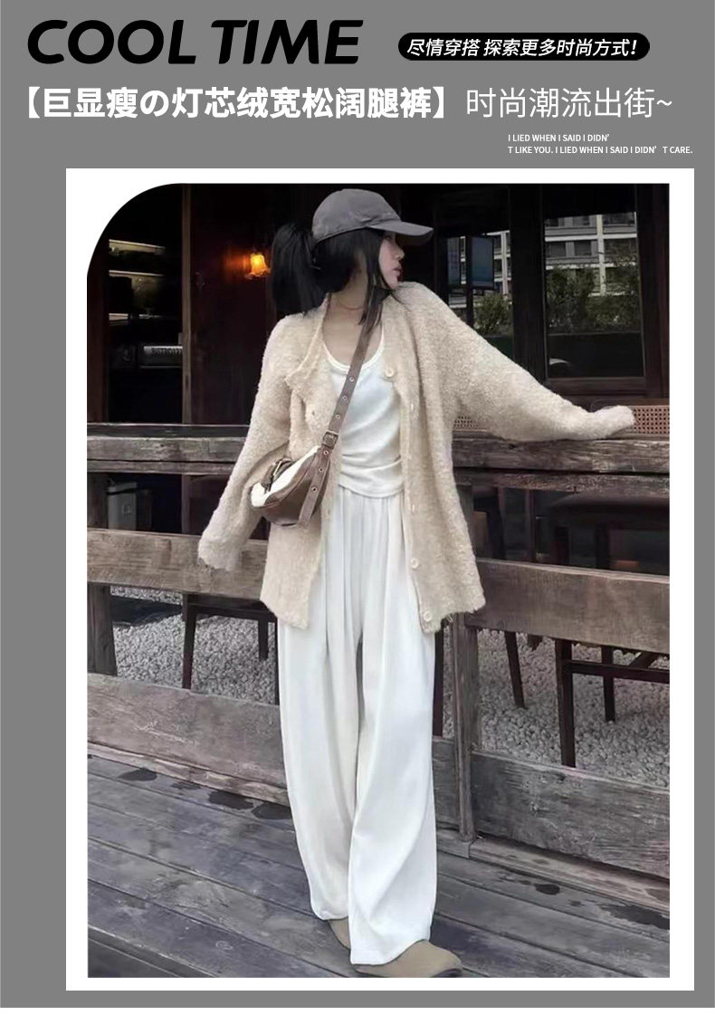 白色燈芯絨濶腿褲女春秋冬2024新款加絨軟糯垂墜慵懶松弛感山本褲
