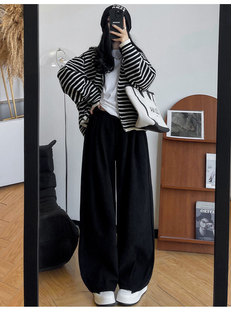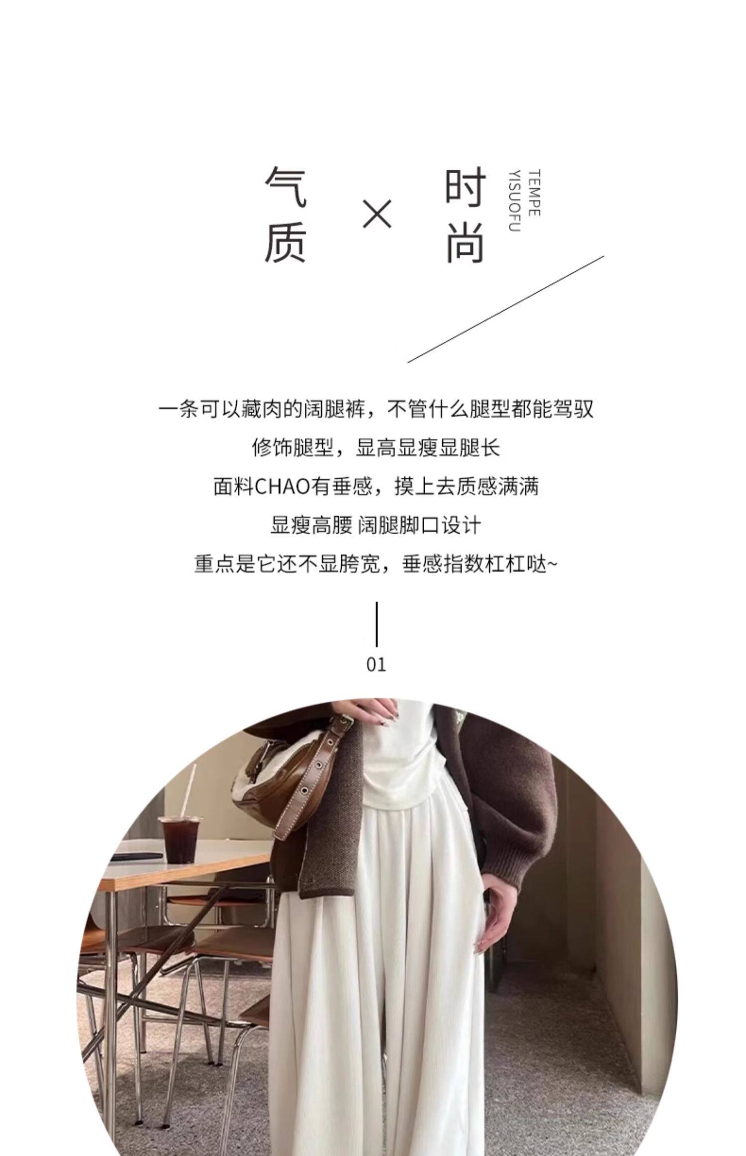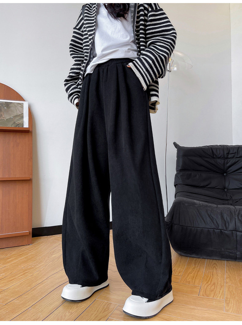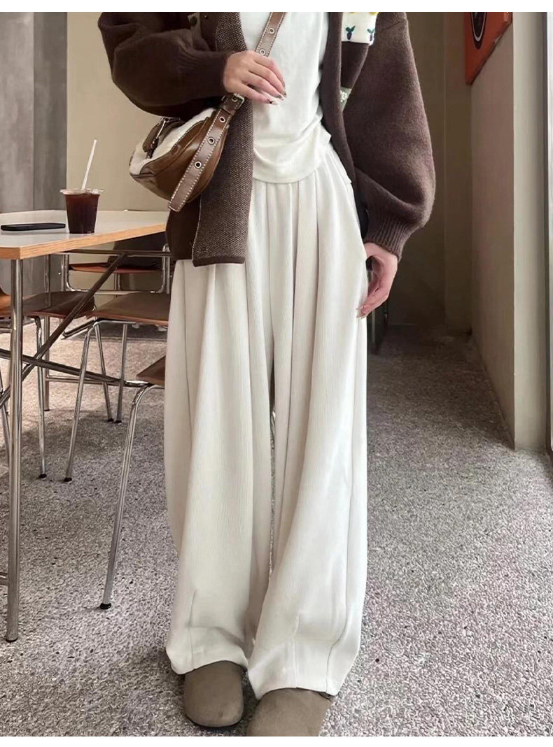 白色燈芯絨濶腿褲女春秋冬2024新款加絨軟糯垂墜慵懶松弛感山本褲