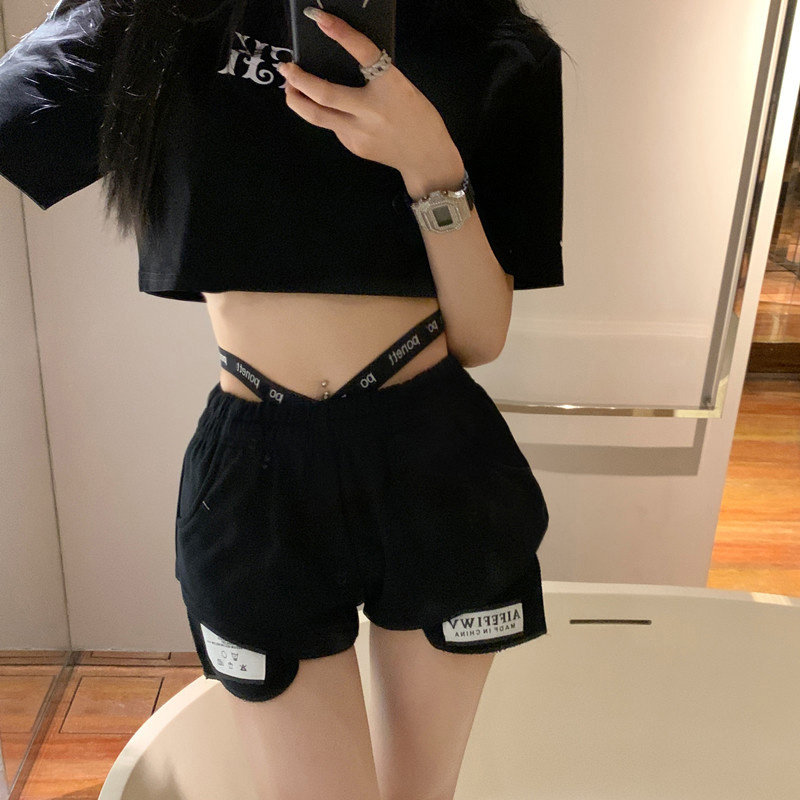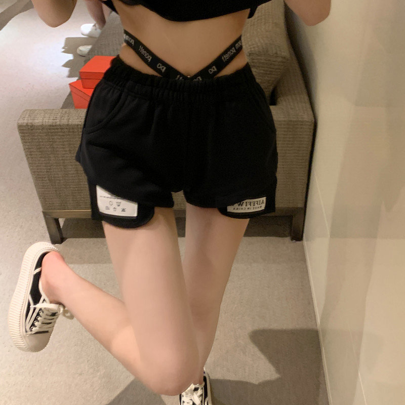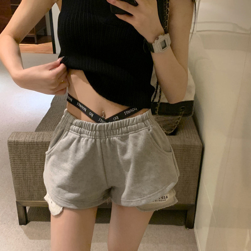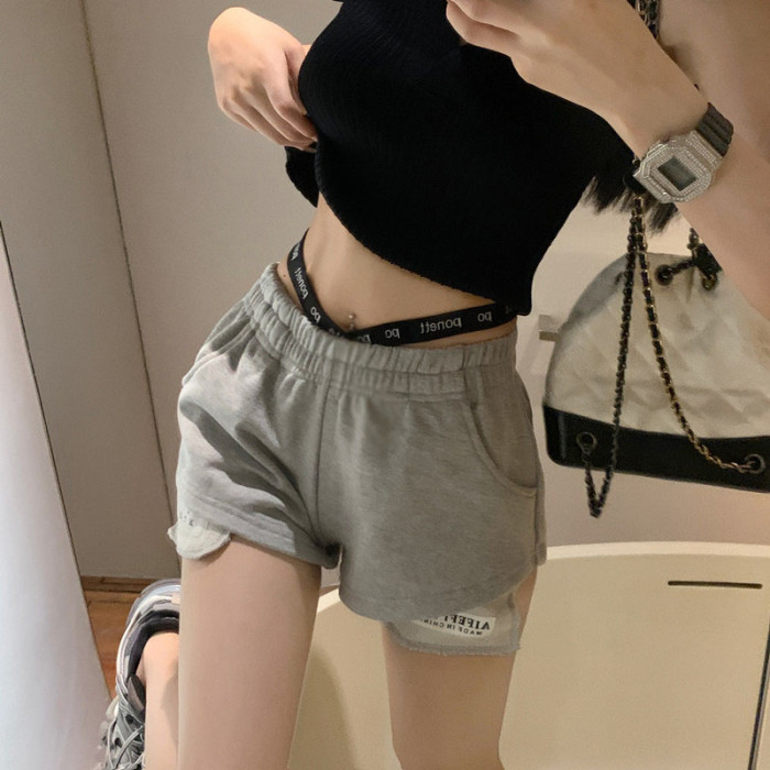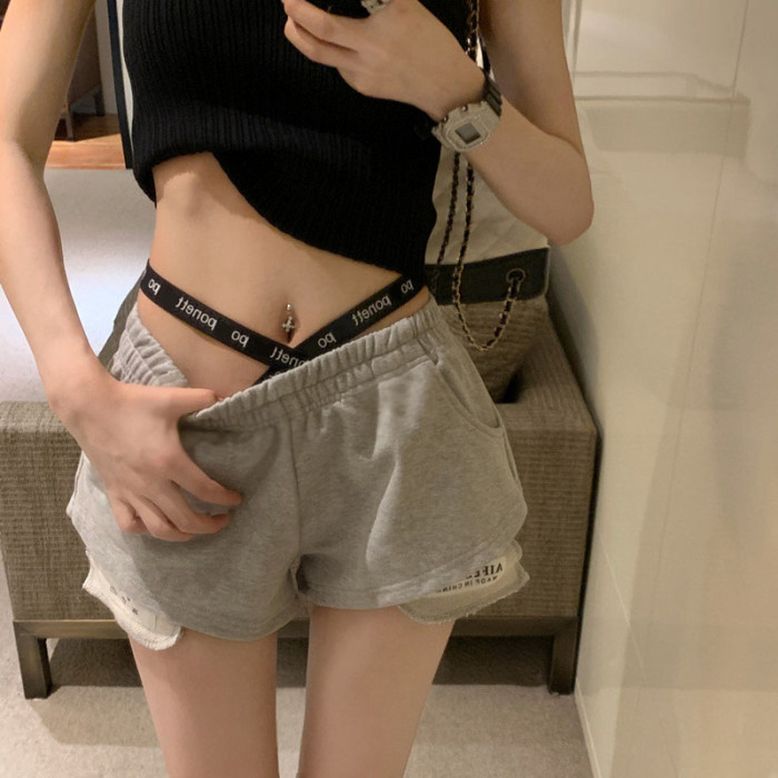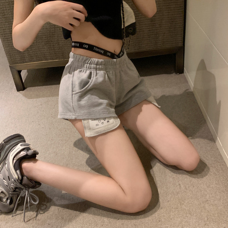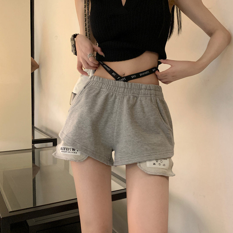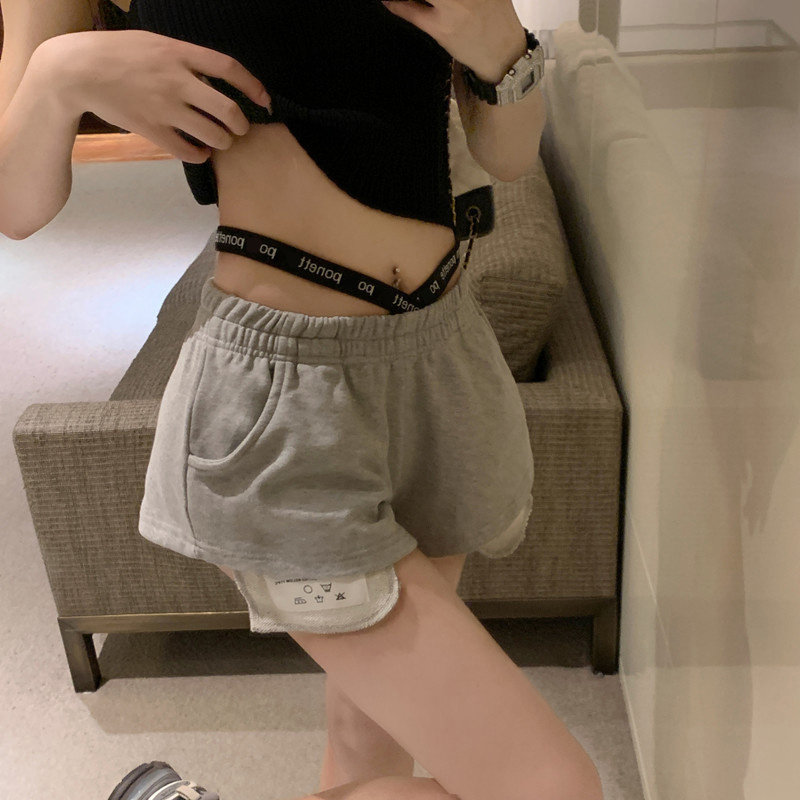 2023新款灰色美式運動夏季短褲女高腰外穿設計感小衆休閒沙灘熱褲
