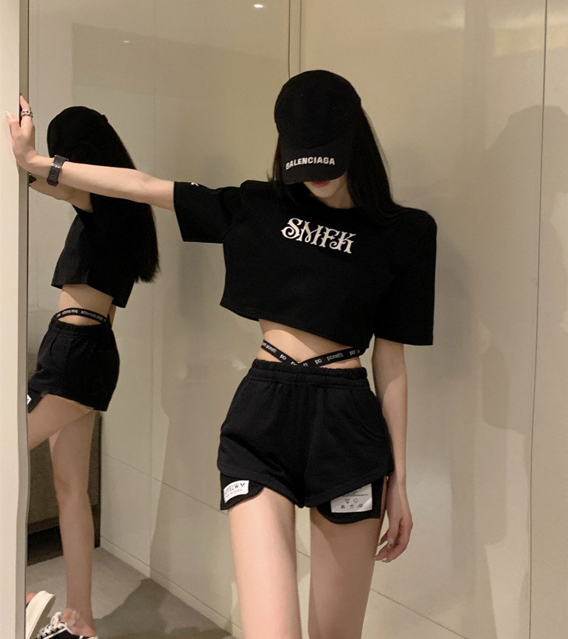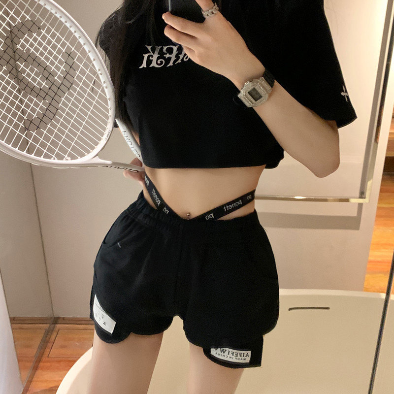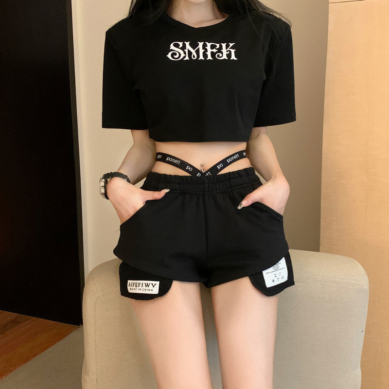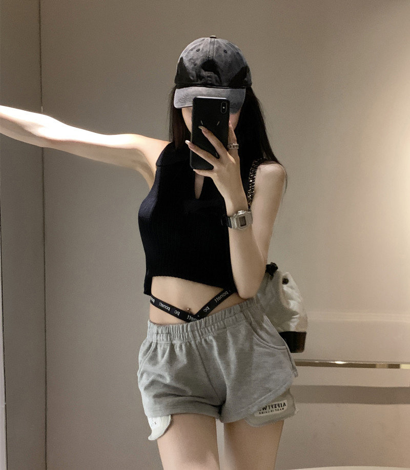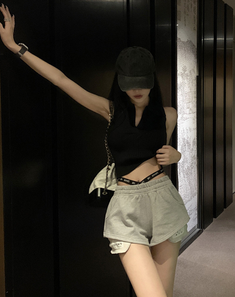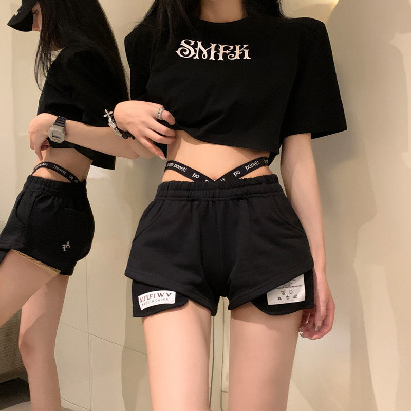 2023新款灰色美式運動夏季短褲女高腰外穿設計感小衆休閒沙灘熱褲